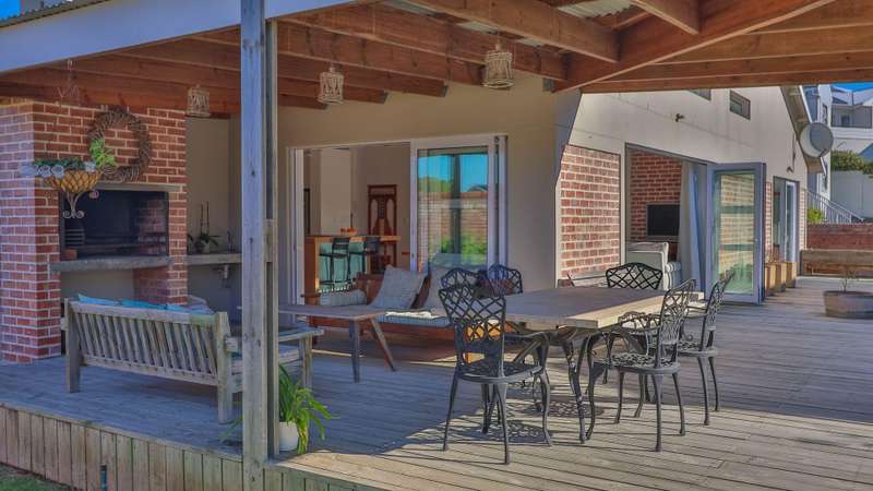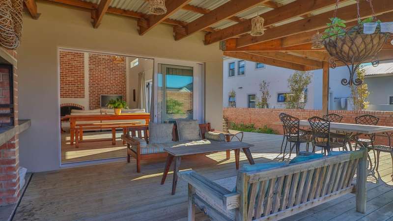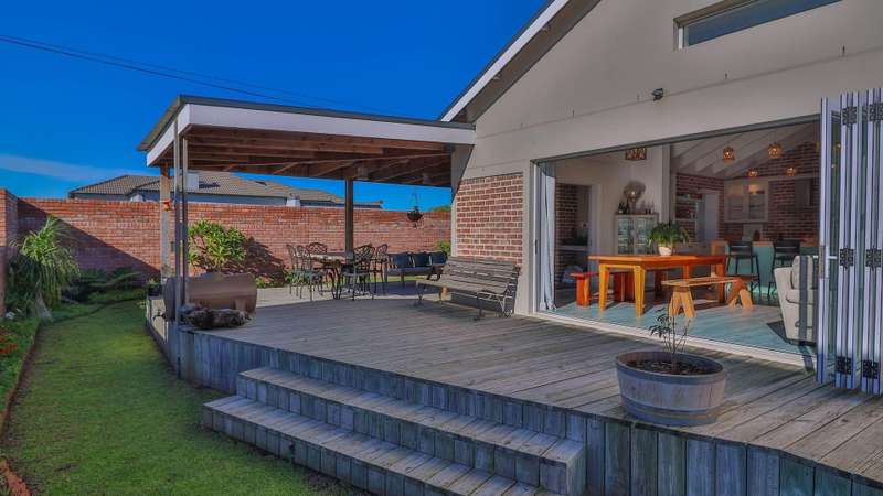 EXCLUSIVE SOLE MANDATE: Experience the perfect fusion of style and elegance in this architectural design home. Each element has been meticulously designed to provide a lifestyle of elegance. As you walk into this pristine home you will be welcomed with spacious light filled living areas thoughtfully designed to accommodate both relaxation and entertainment and flow by way of stack doors to a wrap around Balau decking patio with a built-in braai with north facing mountain views and an established landscaped garden. The open plan layout flows seamlessly to create style and an inviting atmosphere with double volume ceilings in the living and dining areas with cozy fireplace. Ultra-modern kitchen with caesar tops and fitted gas stove and large scullery to accommodate all appliances. The island in the middle creates enough workspace to prepare meals. Interleading double garage. The home features three generously sized bedrooms with a large main bedroom on suite and lots of built in cupboards with doors out to the garden. All bathrooms are beautifully appointed to add a touch of sophistication to daily living. Upstairs bedroom has sliding windows to enjoy views and a study nook. The outdoor surroundings enhance the allure of this house situated on a corner stand. Children will delight in the dedicated garden while adults enjoy the stunning vistas and relaxing ambiance. This ready to move in home is a rare gem perfectly suited for those seeking a harmonious balance between modern living and tranquil setting. Special features to this property is the immaculate condition. This home was built by owner with special supervision with a lot of detail that stands out. Combinations of brick and plaster inside just makes this home a total different style The interesting feature I want to mention is that the owner built this house entirely for their needs and lampshades and designs were created by him. Proud sole mandate offering extra features and proud presented by sole mandate agent.