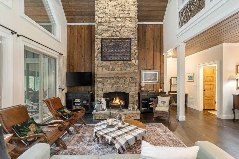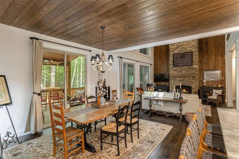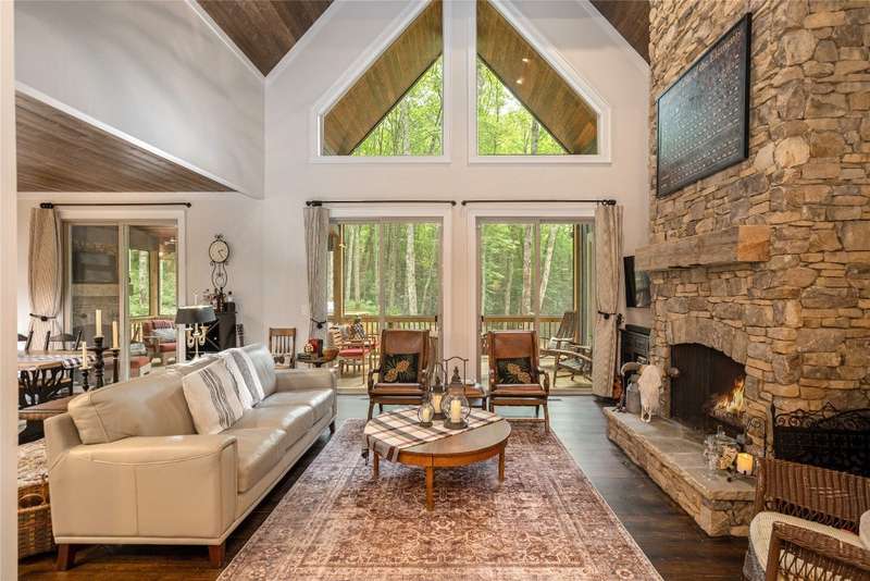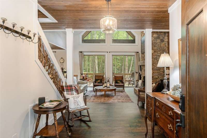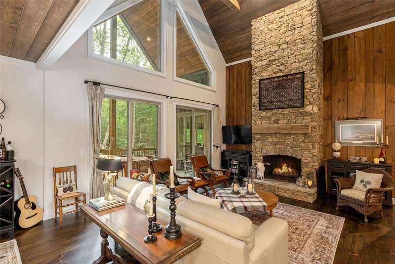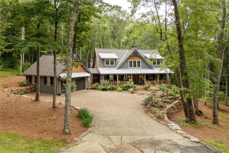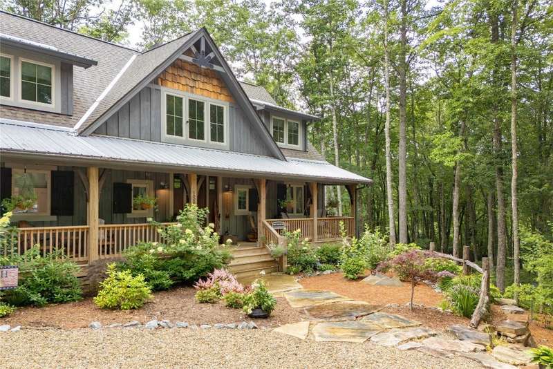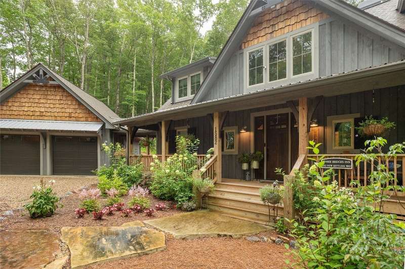 Experience the perfect harmony of easy outdoor living and tranquility at 1582 New Settler's Way, a mountain retreat crafted by Fern Creek Builders. Located in the desirable Chinquapin community, this three-bedroom, three-and-a-half-bathroom home offers a rare opportunity to own a piece of paradise, where classic mountain finishes blend seamlessly with serene natural surroundings. Inside, a thoughtfully designed floor plan features a welcoming rocking-chair front porch, two cozy fireplaces, abundant natural light, and low-maintenance finishes throughout. The spacious gourmet kitchen connects to a warm living area, perfect for entertaining or relaxing. An indoor-outdoor lifestyle is highlighted by a screened-in porch, a grill deck, and a stone firepit - ideal for enjoying starry mountain nights. The property borders a winding creek and is complemented by the gentle sounds of a nearby waterfall, making it an ideal retreat to spend time in nature. Whether enjoying a morning coffee on the porch or relaxing by the fire, the setting offers quiet serenity. Additional features include an attached two-car garage, ample storage, spacious ensuite guest bedrooms, and access to community outdoor amenities within the gated Chinquapin community. Chinquapin spans an impressive 2,000 acres with more than 700 acres dedicated to permanent conservation. This community offers park-like living with a host of unparalleled amenities. Scenic trails for hiking, biking, and utility terrain vehicles provide for an outdoor lifestyle, while fishing opportunities are available in the community's lakes and streams. Pickleball courts, a disc golf course, and a driving range are also available just moments away. The Outpost Clubhouse provides a fitness facility, cozy gathering spaces, and seasonal live music during the vibrant Summer Concert Series. Whether relaxing by the firepit, canoeing along tranquil waters, or exploring the unspoiled natural surroundings, Chinquapin presents countless ways to connect with nature and neighbors alike. Offering unmatched ease of access compared with other available lots, this move-in-ready property at 1582 New Settler's Way promises exceptional peace, privacy, and refined mountain living, whether as a full-time residence or a mountain retreat.