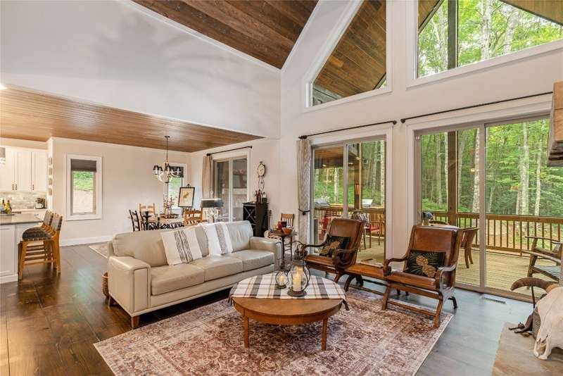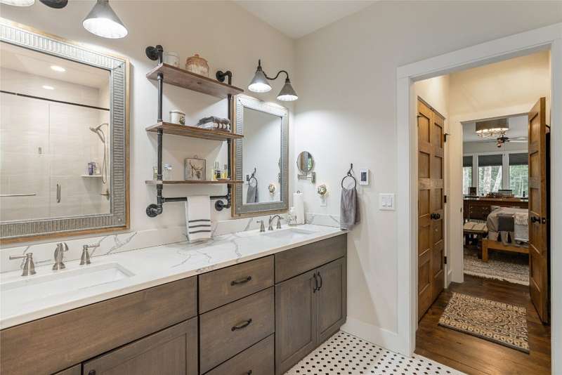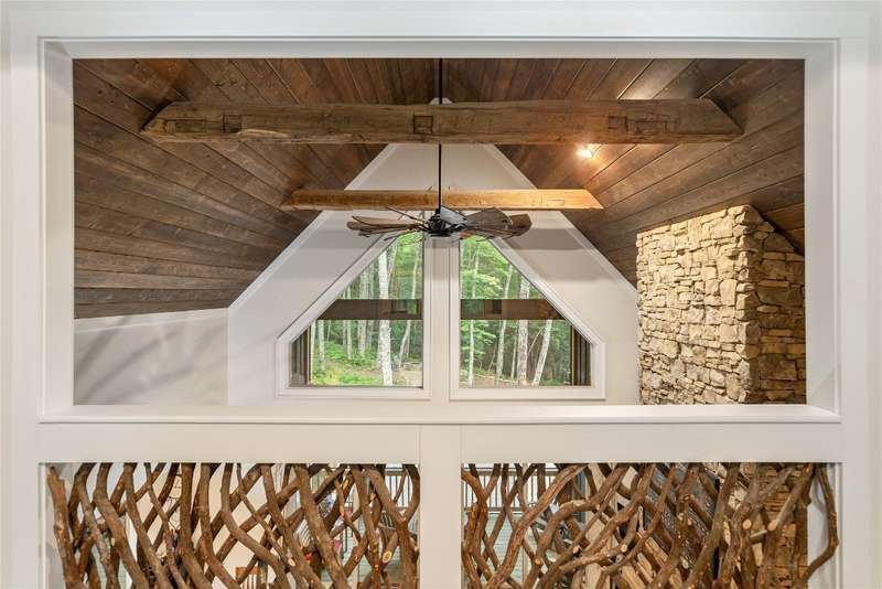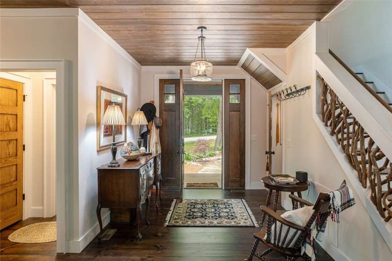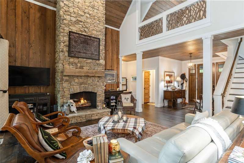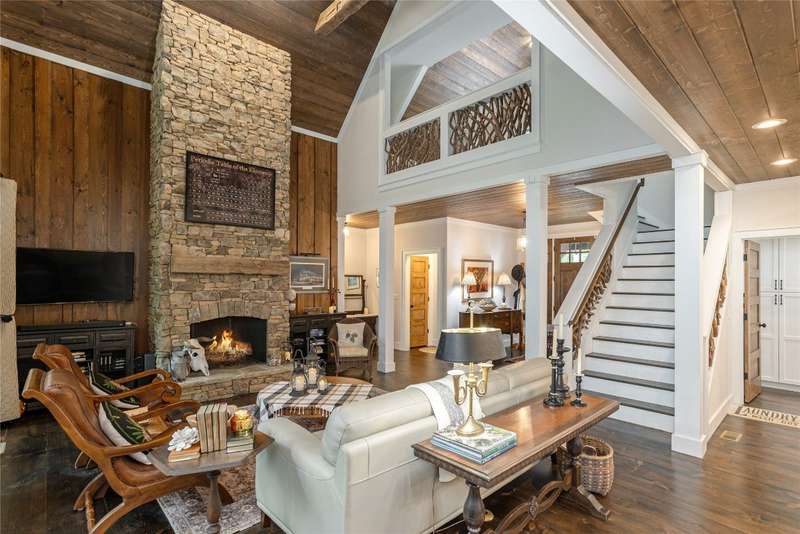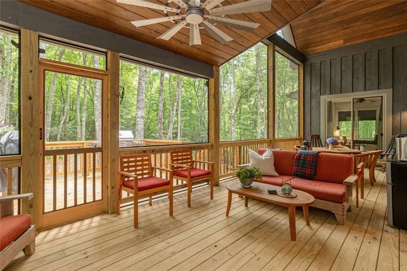 Experience the perfect harmony of easy outdoor living and tranquility at 1582 New Settler's Way, a mountain retreat crafted by Fern Creek Builders. Located in the desirable Chinquapin community, this three-bedroom, three-and-a-half-bathroom home offers a rare opportunity to own a piece of paradise, where classic mountain finishes blend seamlessly with serene natural surroundings. Inside, a thoughtfully designed floor plan features a welcoming rocking-chair front porch, two cozy fireplaces, abundant natural light, and low-maintenance finishes throughout. The spacious gourmet kitchen connects to a warm living area, perfect for entertaining or relaxing. An indoor-outdoor lifestyle is highlighted by a screened-in porch, a grill deck, and a stone firepit - ideal for enjoying starry mountain nights. The property borders a winding creek and is complemented by the gentle sounds of a nearby waterfall, making it an ideal retreat to spend time in nature. Whether enjoying a morning coffee on the porch or relaxing by the fire, the setting offers quiet serenity. Additional features include an attached two-car garage, ample storage, spacious ensuite guest bedrooms, and access to community outdoor amenities within the gated Chinquapin community. Chinquapin spans an impressive 2,000 acres with more than 700 acres dedicated to permanent conservation. This community offers park-like living with a host of unparalleled amenities. Scenic trails for hiking, biking, and utility terrain vehicles provide for an outdoor lifestyle, while fishing opportunities are available in the community's lakes and streams. Pickleball courts, a disc golf course, and a driving range are also available just moments away. The Outpost Clubhouse provides a fitness facility, cozy gathering spaces, and seasonal live music during the vibrant Summer Concert Series. Whether relaxing by the firepit, canoeing along tranquil waters, or exploring the unspoiled natural surroundings, Chinquapin presents countless ways to connect with nature and neighbors alike. Offering unmatched ease of access compared with other available lots, this move-in-ready property at 1582 New Settler's Way promises exceptional peace, privacy, and refined mountain living, whether as a full-time residence or a mountain retreat.
