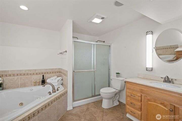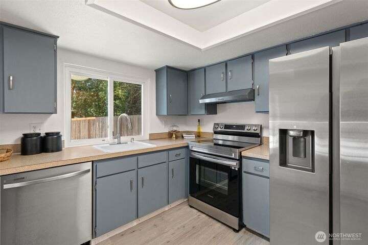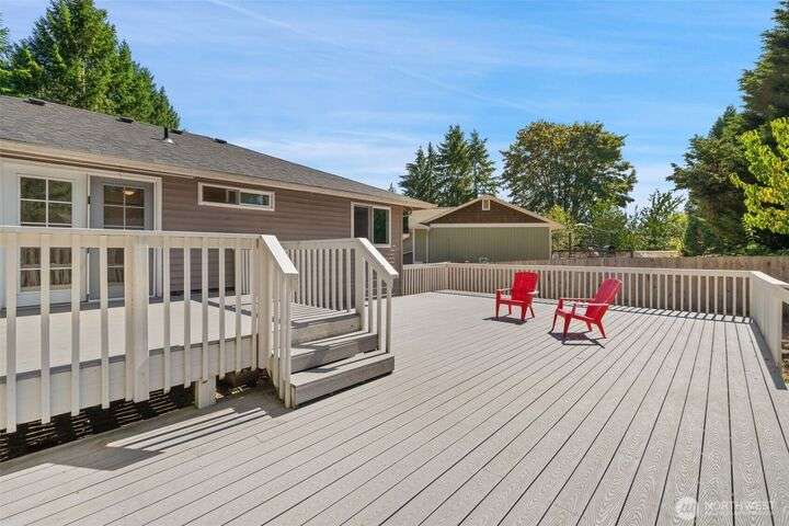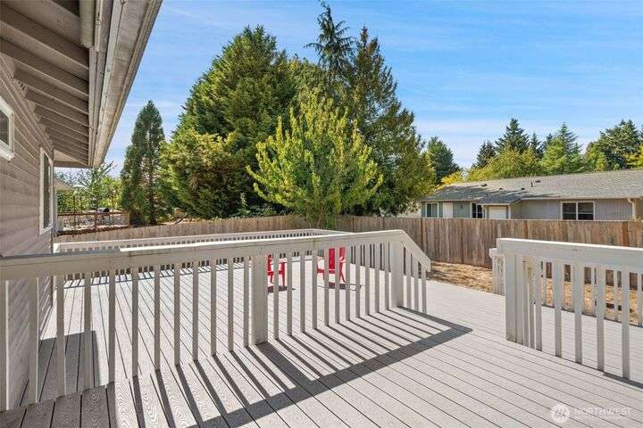 Located in a peaceful neighborhood with great curb appeal. The beautifully updated kitchen features SS appliances, plenty of cabinets, & counter space—perfect for entertaining or everyday living. Step outside to an oversized Trex deck, ideal for summer BBQs, relaxing evenings, or enjoying the afternoon sun & evening sunsets. The spacious, spa-like bathroom offers a true retreat with a jetted tub, ceramic tile, a double vanity, & a walk-in shower. Two BONUS flex spaces offering more diversity & functionality. Newer roof, fully fenced, two-car garage, & extra parking. Close to freeways, shopping, Naval bases, trendy restaurants, walking trails, parks, prized schools, Silverdale amenities, & 15 min to Ferries. A mix of comfort & convenience.