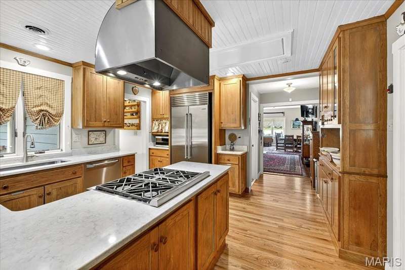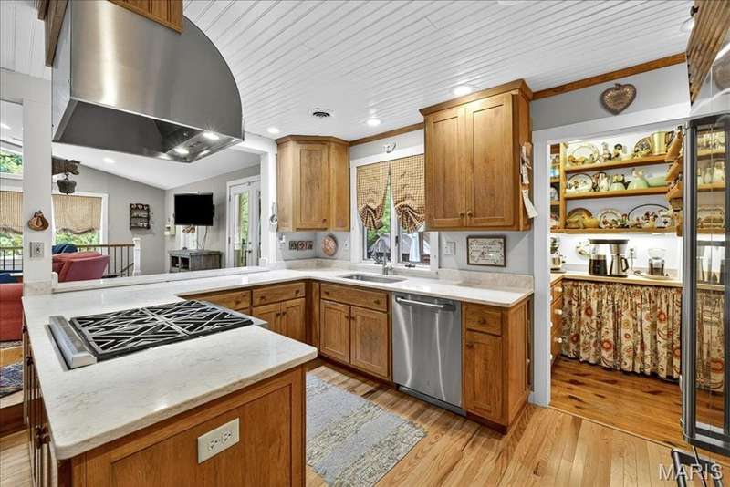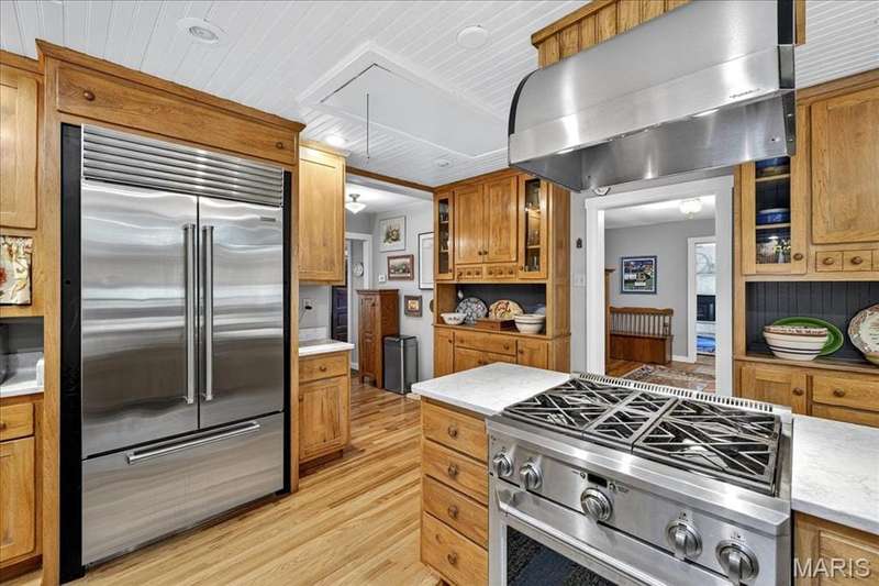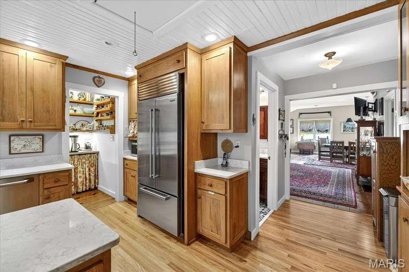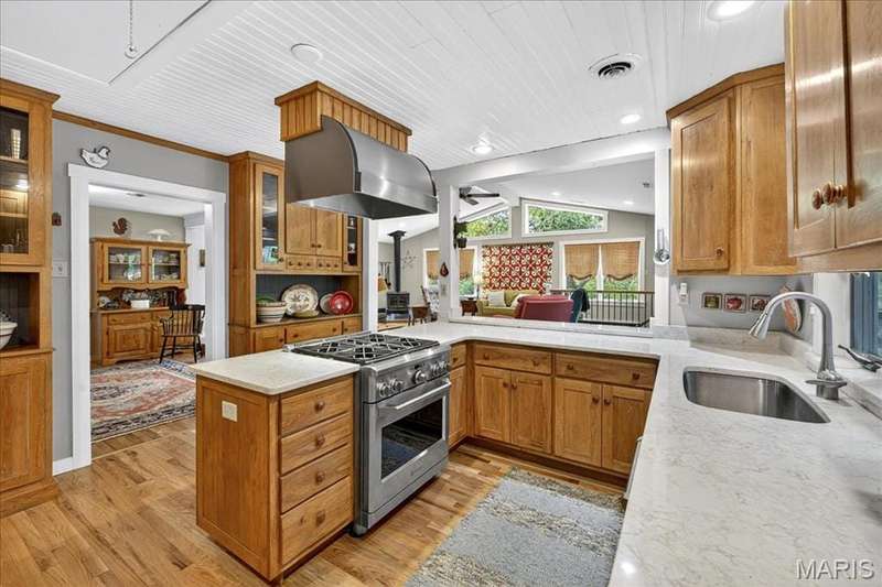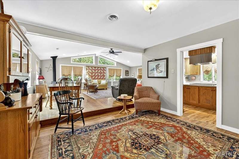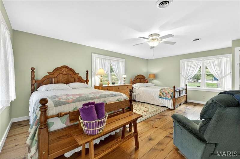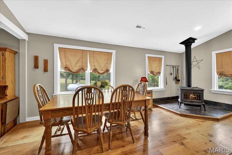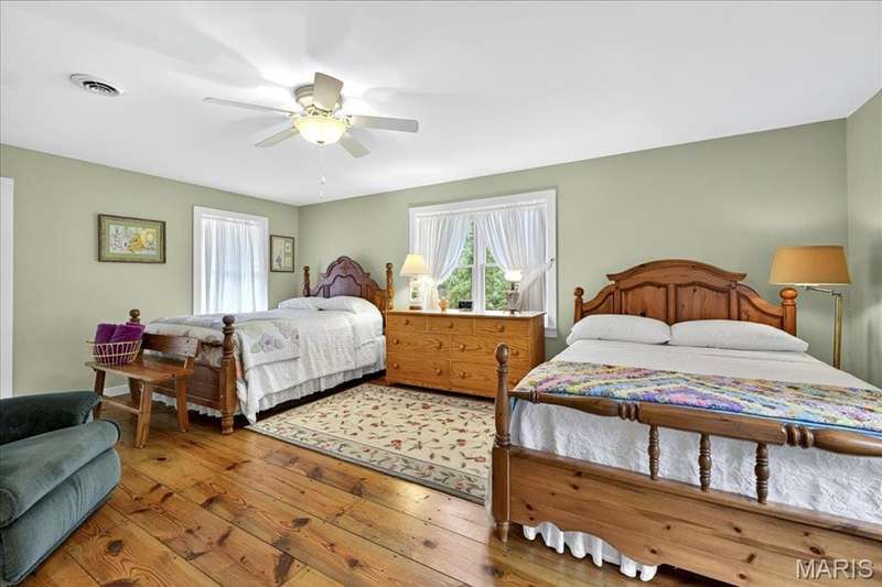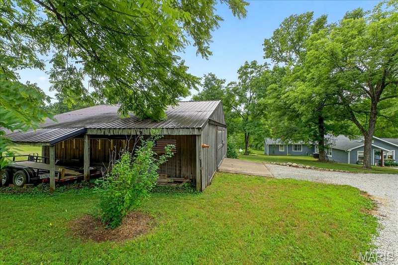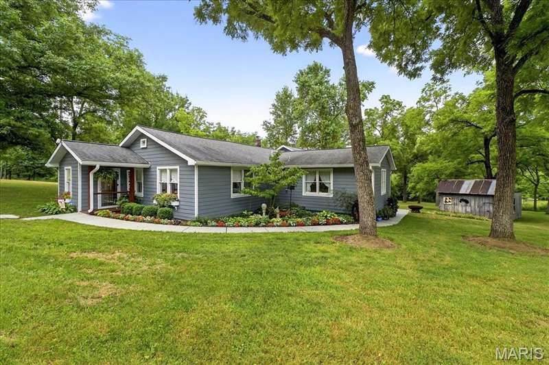 SUMMERTIME SIZZLER ALERT! Don't miss out on this ranch home in Potosi and near Caledonia with 120 acres on rectangular lot. Great hunter's dream location or your own private oasis. The land has beautiful pines, flowering trees, wildflowers, vegetable, annual flower gardens all with the beautiful Flat Creek to keep your gardens flourishing or go for a swim. There is a large workshop 30 x 30, separate carport 25 x 25, and a small shed for swimming/garden accessories. The outside space is postcard perfect. The original home was built in 1930 but has been added onto over the years. This home's floor plan offers a unique way to utilize the space with rooms that are interchangeable to make it fit your family needs. The sellers have raised the roof! In the Creek room, sellers vaulted the ceiling, added windows to see the beautiful hillside, the creek, deer, birds, turkey and watch the seasons change every year. This is a 3-bedroom, (2 are ensuites) 3 full bath home, fireplace, a woodburning stove, generator, two propane tanks, lots of storage, with original laundry hook up on main floor in a closet if needed. Built in hutches in the updated kitchen with top-of-the-line appliances including a Subzero refrigerator, new or restored wood floors throughout, all updated baths. Special feature is a greenhouse and walk out basement. This home not only offers incredible curb appeal, but the interior of the home is beautifully updated with an exquisite taste of modern with splash of country.