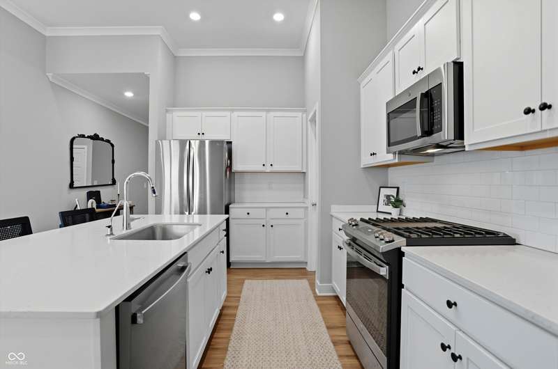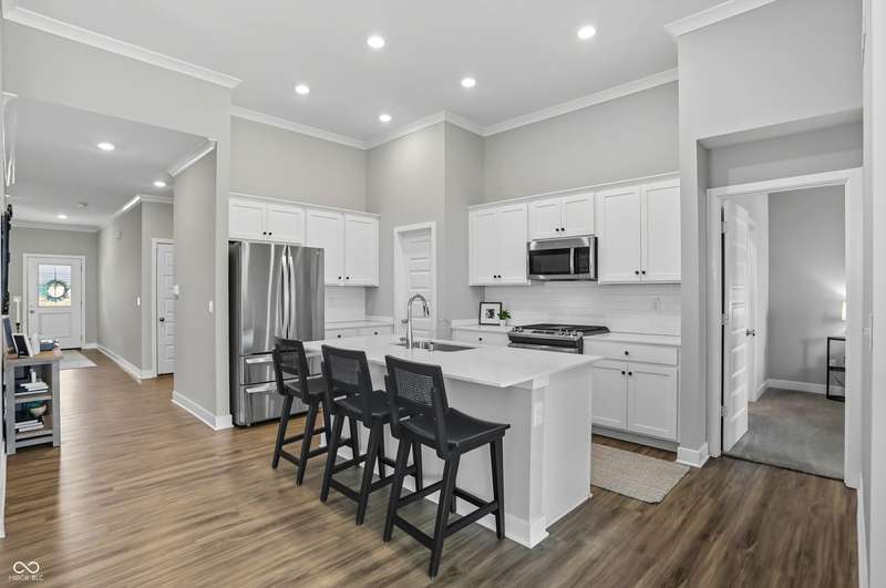 Built in 2021, this home feels brand new and with the remainder of Lennar's 10-year warranty, you get peace of mind too. Inside, the open layout is bright and inviting with LVP flooring, crown molding, and plenty of space to spread out. The kitchen steals the show with upgraded cabinets, a huge quartz island, stainless steel appliances, and a gas range. It flows right into the dining and family room so everything (and everyone) stays connected. The primary suite is a true highlight, a spacious bedroom with a sitting area, double vanity, luxury tile shower, and a walk-in closet that connects directly to the laundry room. Step outside and you'll have access to the neighborhood pool and playground, perfect for relaxing weekends or after-work downtime. And when it comes to schools, Franklin Township continues to shine - recognized by U.S. News as among the Best Elementary, Middle, and High Schools, earning the Indiana Department of Education's Purple Star Designation, and named a finalist in the Best Things 2024 Community Choice Awards.
