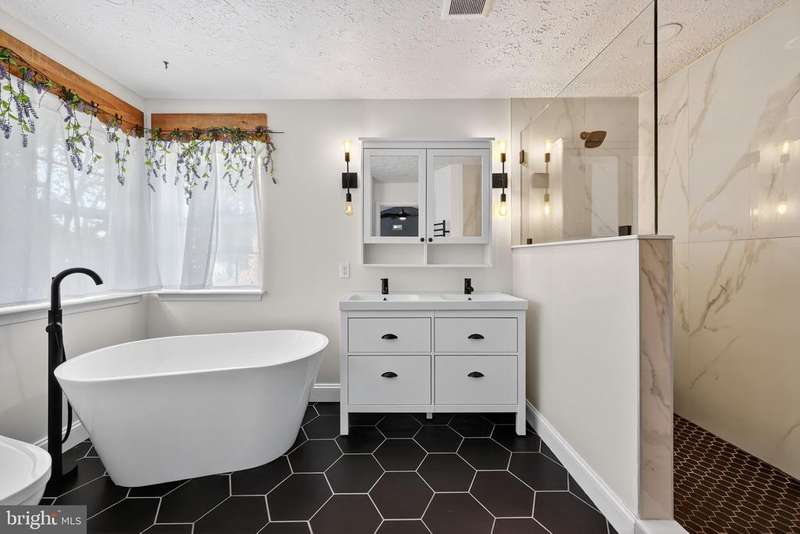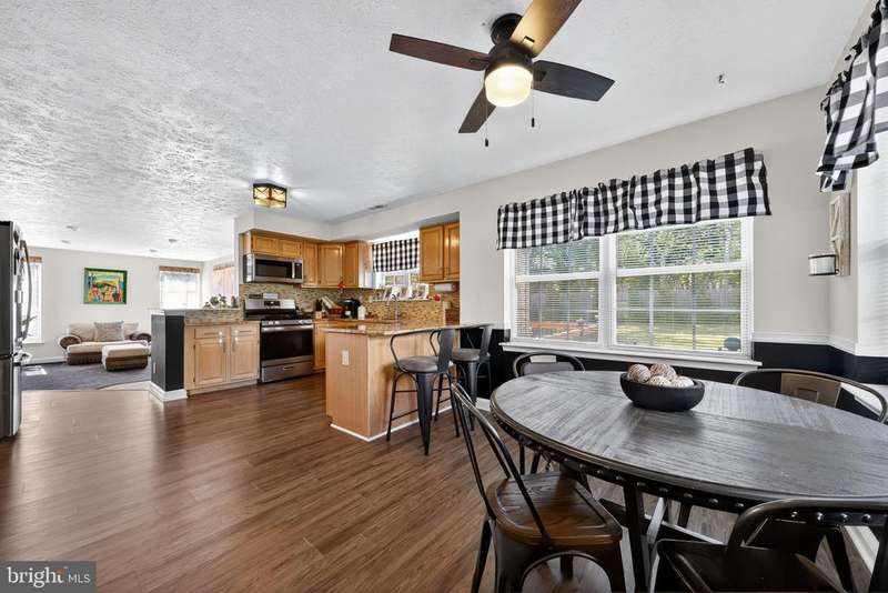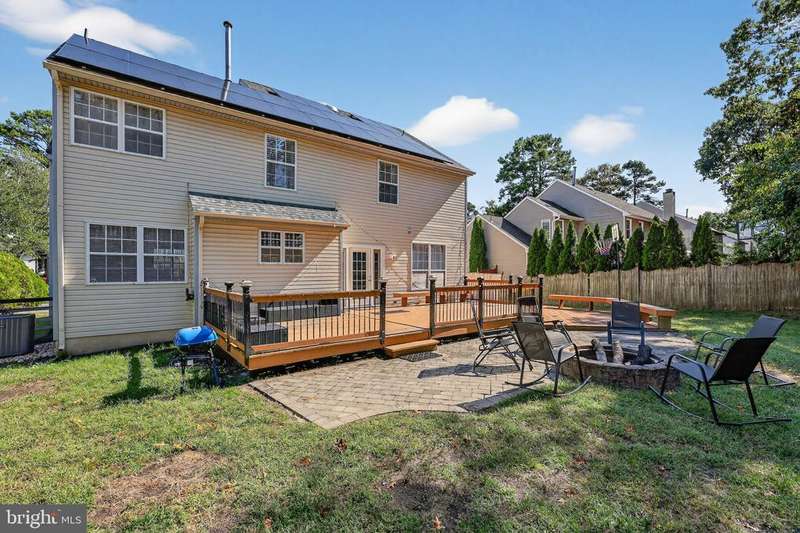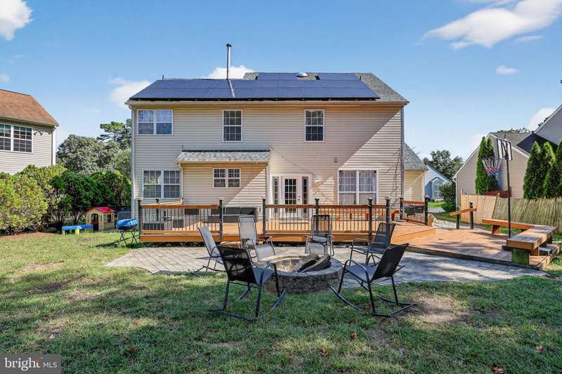 This spacious two-story home offers over 2,100 sq. ft. of above-grade living space, plus a fully finished basement that expands the possibilities for entertaining, fitness, and relaxation. Step inside to a dramatic vaulted open-concept dining and living area, enhanced by oversized windows that fill the space with natural light. The kitchen features updated granite countertops, ample cabinetry, a new dishwasher, and a seamless flow into the family room - complete with direct access to a newly refurbished back deck, creating the perfect hub of the home. Upstairs, the cathedral-ceiling primary suite is a true retreat, complete with dual walk-in closets and a stunning updated bath. Enjoy the spa-like atmosphere with a walk-in shower, soaking tub, and stylish double vanity. Three additional bedrooms and a second full bath provide plenty of flexibility. The finished basement is designed for both fun and function, offering a wet bar, exercise room, large bonus space, and a versatile recreation area. Outside, the property includes a charming front porch, a spacious deck overlooking the yard, and an attached two-car garage on a .22 acre lot. Additional value comes from the solar panels, which currently produce 100% of the homes energy usebringing efficiency and peace of mind. With thoughtful upgrades throughoutincluding modern baths, open-concept living, and a full array of finished spacesthis home is move-in ready and combines comfort with style.