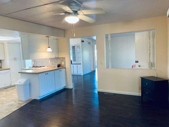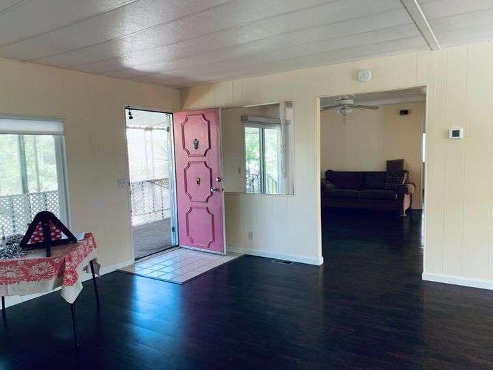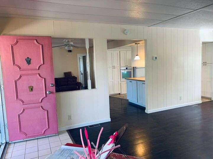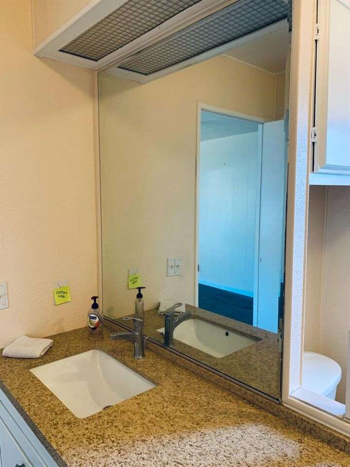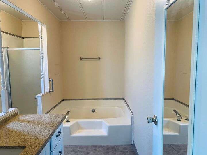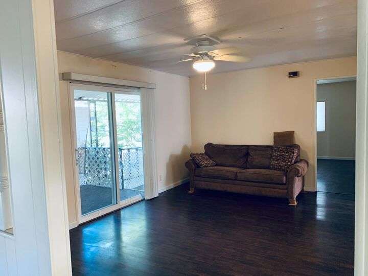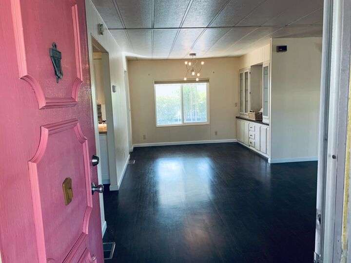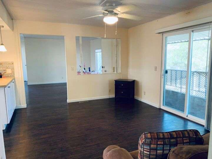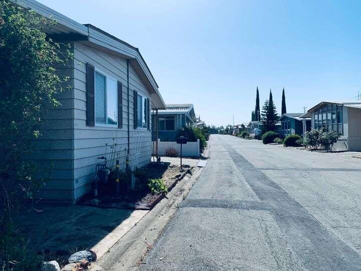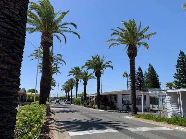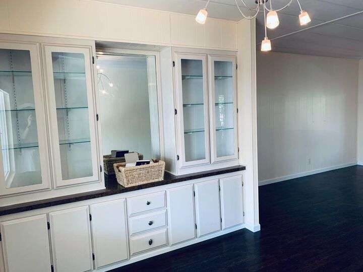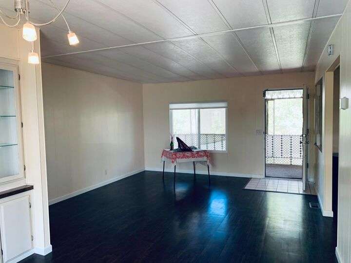 Three Bedrooms, Den and Updated all with a covered porch! Electric water heater, electric oven, gas cooktop, Corian & tile counters with newer cabinets all through the kitchen. Hunter Douglas Blinds, laminate flooring, painted paneling, newer roof. Covered side porch. Living room, formal dining area with built-in hutch, dishwasher, refrigerator, den/craft room off kitchen with sliding glass door to porch. Main bedroom has soaking tub and shower. Second bathroom has tub and shower. Shed in the carport. Bendix Model 1979, 24'x 60', 1440sf. Clubhouse has pool, spa and billiards! Gated with security. 55+ Active Senior Park named Golden Palms Estates.