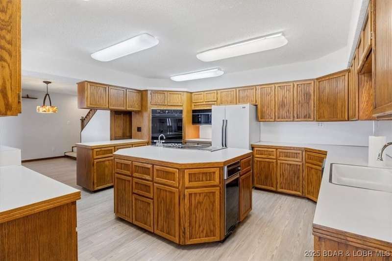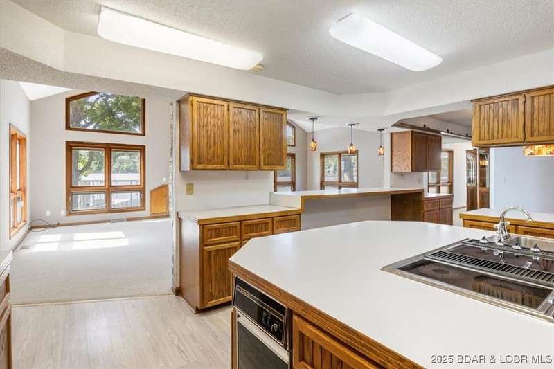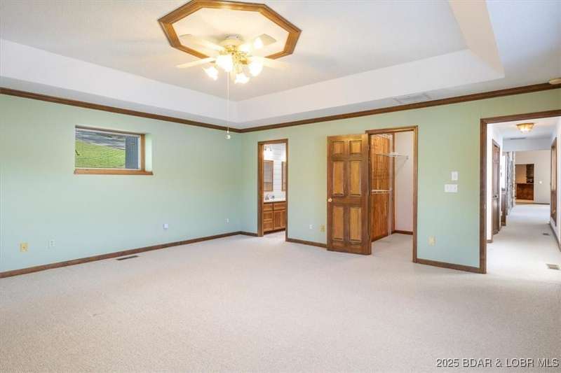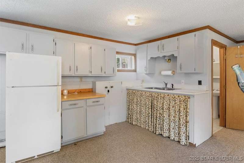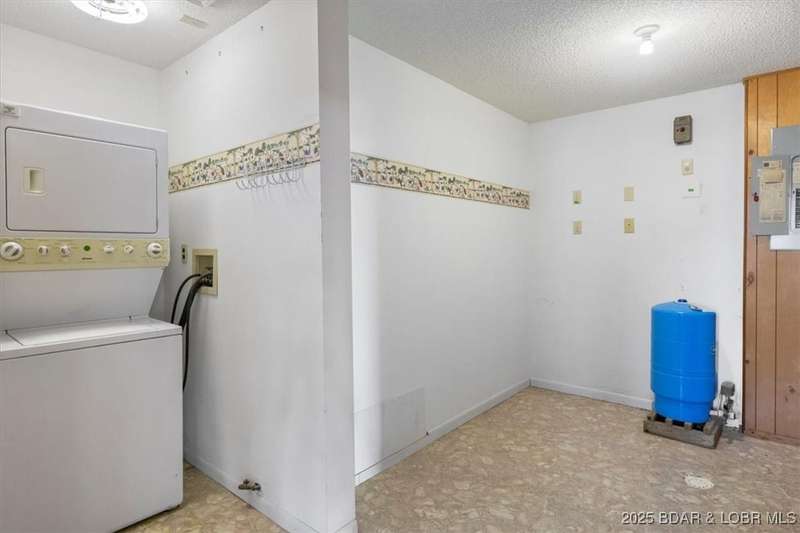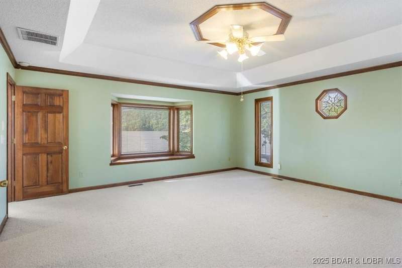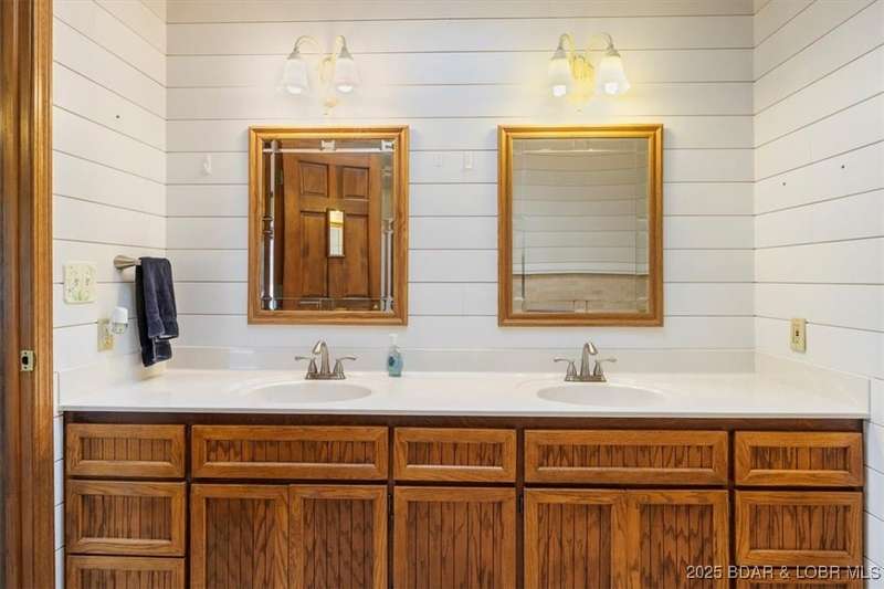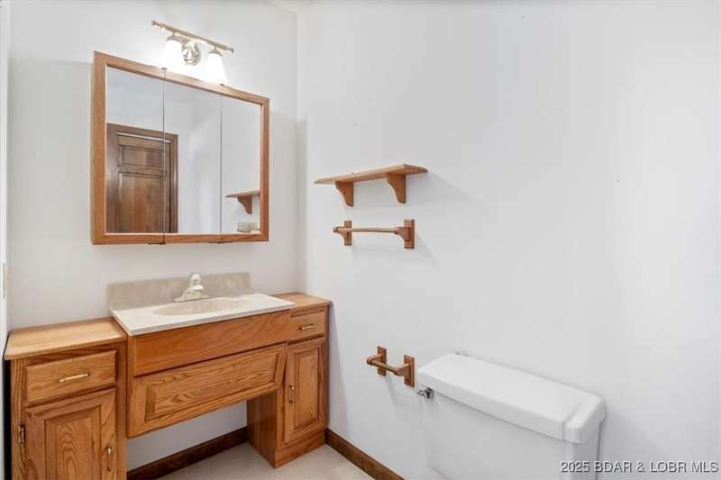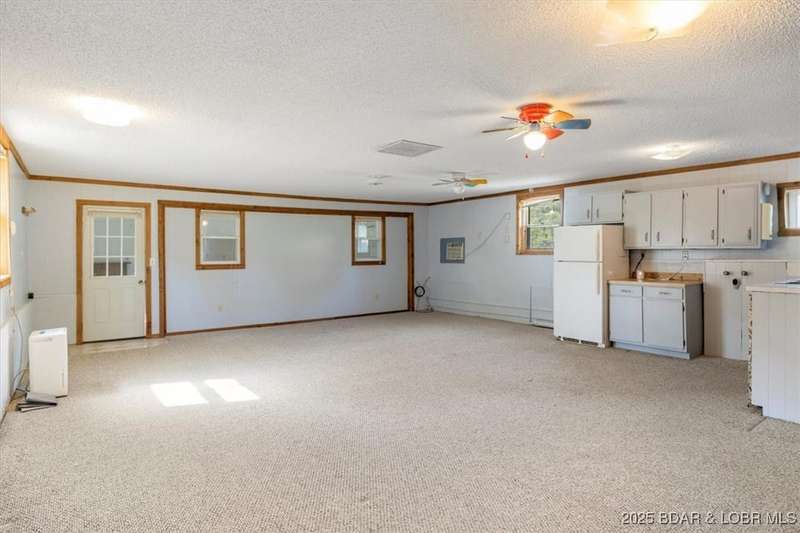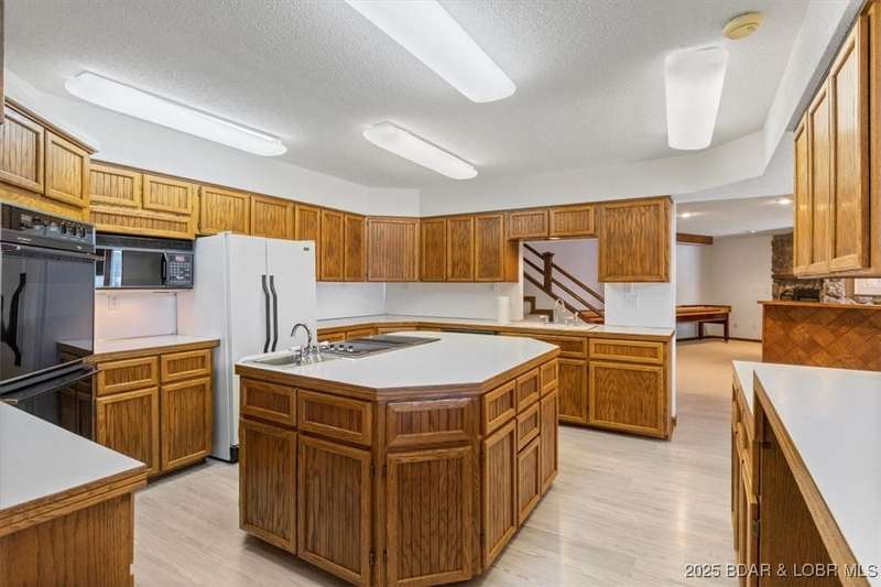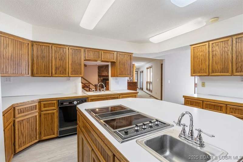 Looking for a lakefront home full of character with 175 ft of shoreline, a PRIVATE boat ramp, Million Dollar View, SUNROOM, ZERO steps to the water, FLAT yard, NO HOA, a MOTHER-IN-LAW Suite and MORE! Sitting on a half acre lot, this ranch home features a great room with cathedral ceilings and beautiful wood burning fireplace, kitchen with tons of cabinetry and storm shelter/pantry, plus a wet bar area and full size shuffle board next to the second fireplace! The primary bedroom has a custom ceiling, walk in closet, and spacious bathroom. And, also main level, there are two bedrooms (one has a full bath), laundry, and powder room. The loft, perfect for an office space or bedroom, has a half bath (room to add a shower). The guest house is studio style with a kitchenette, full bathroom and has tons of potential! Head down to the dock with a huge swim platform that is partly covered for shade and half open to sun tan. Dock electric is to code! Located on the 45 Mile Marker Lake of the Ozarks, it is near numerous lakefront restaurants, has fiber internet, and excellent area for swimming, water sports, fishing, and enjoying Lake Life! Great full-time residence, getaway, or investment!!!