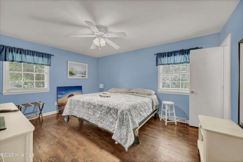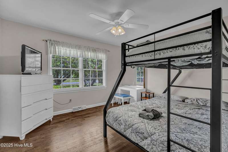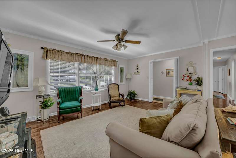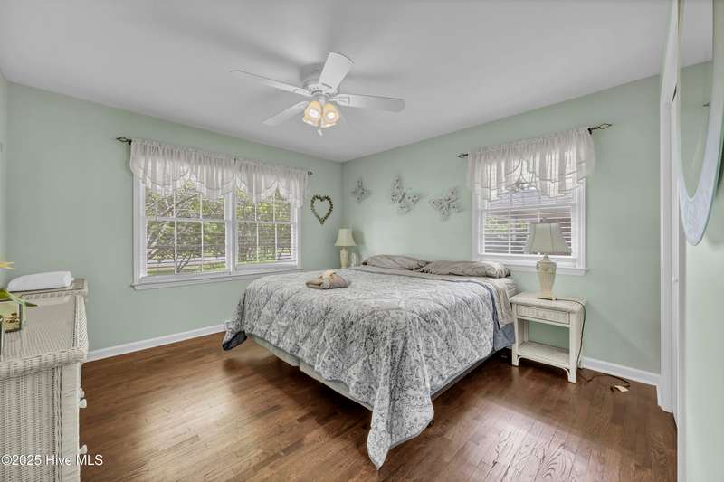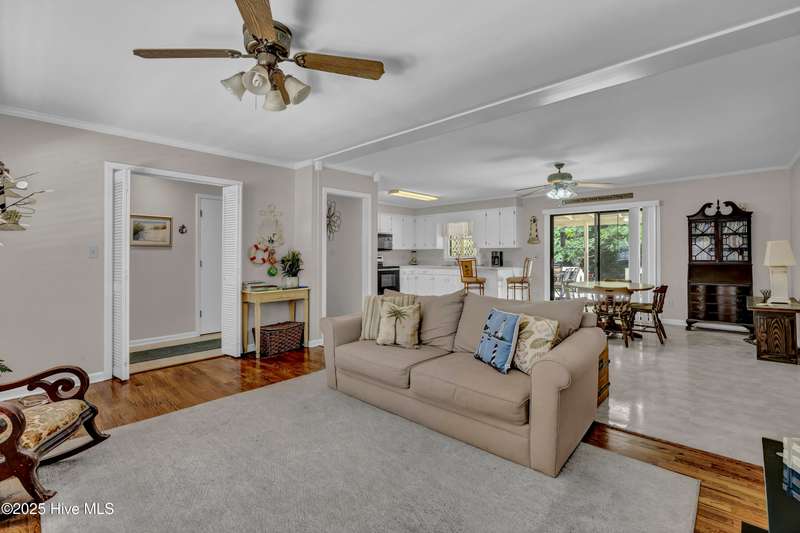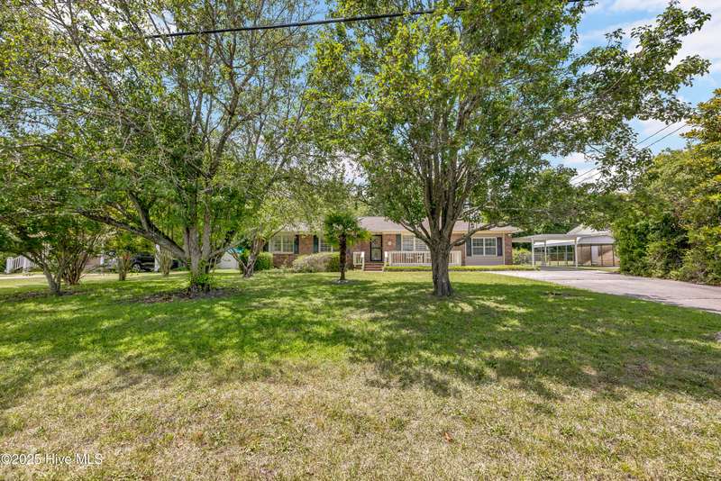This lovely 3 bedroom brick home has a gorgeous .46 acre lot with lush landscaping for lots of privacy. Open great room, dining and kitchen for lots of wonderful family get togethers. Separate family room for the kids to have their own space. Large bedrooms and two full baths. Original hardwood floors in Great Room, Bedrooms and Hall. Large 16 x 16 covered deck out back for barbecues or sunset evenings. Centrally located close to beaches, downtown, and shopping. Seller will leave refrigerator, washer and dryer if Buyer desires. Seller's Termite Bond just expired 6-1-25 if Buyer wants to continue with Bug-NA-Rug at their expense. Moisture barrier under home. Also has a Dehumidifier with a maintenance plan monitored every 6 months.