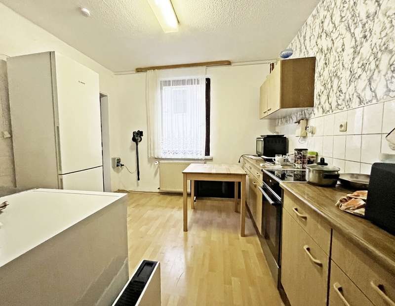 For sale is a well-maintained detached house in a residential area close to nature in the Apolda district of Oberroßla. The property was built in 1963 in solid construction and has approx. 128 m² of living space on two floors. On the first floor there is a vestibule with an adjoining hallway that connects the living areas with the cellar and the outbuilding. There is a kitchen, a spacious living room, another room that can be used as a study or dining room, a bathroom and a separate guest WC. The upper floor comprises a living room, a bedroom and an adjoining walk-through room, which is ideal as a children's room, dressing room or office. The kitchen on the upper floor allows the floors to be used separately or can alternatively be used as another room. The basement offers plenty of storage space for provisions, household appliances or hobbies. The boiler room is also located here. The attic is accessible via a folding staircase and offers additional storage space or potential for expansion. The adjoining outbuilding is in good condition and offers a garage, additional storage space and a workshop. The yard area is paved and offers additional space for a vehicle. The plot covers approx. 260 m² and is manageable but easy to use. A sheltered inner courtyard invites you to linger and offers possibilities for a terrace or seating area. The house impresses with its solid construction, functional floor plan and diverse design options. The existing need for renovation offers the ideal basis for modernizing the property according to your own ideas and creating an individually designed, comfortable home. The energy certificate was not yet available at the time the advertisement was created. If we have aroused your interest, we look forward to receiving your inquiry and will be happy to assist you as the Von Poll real estate team.