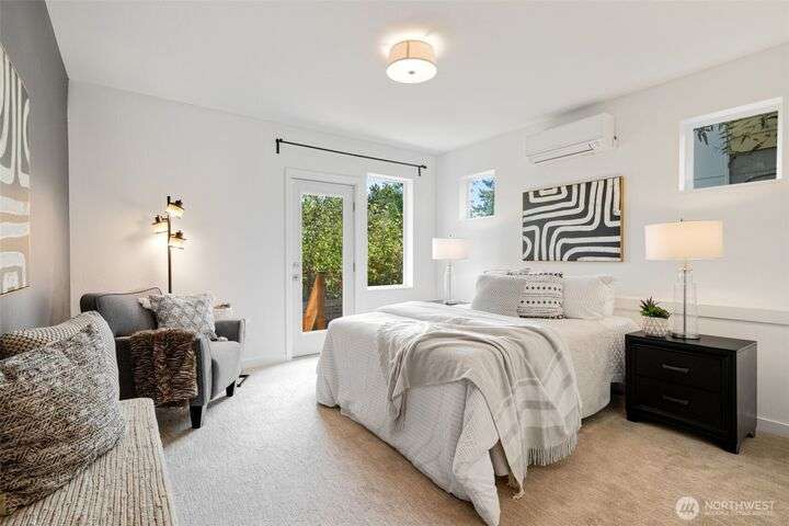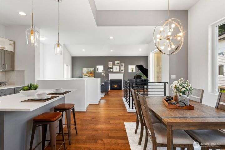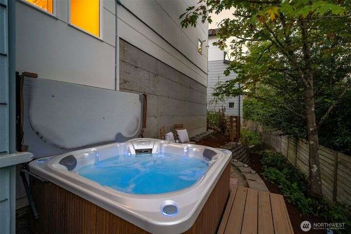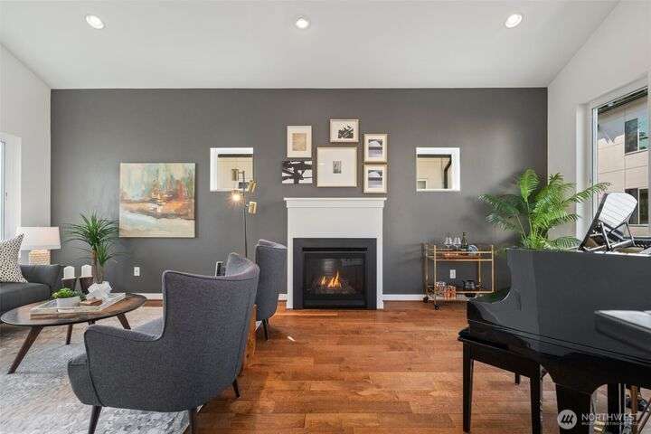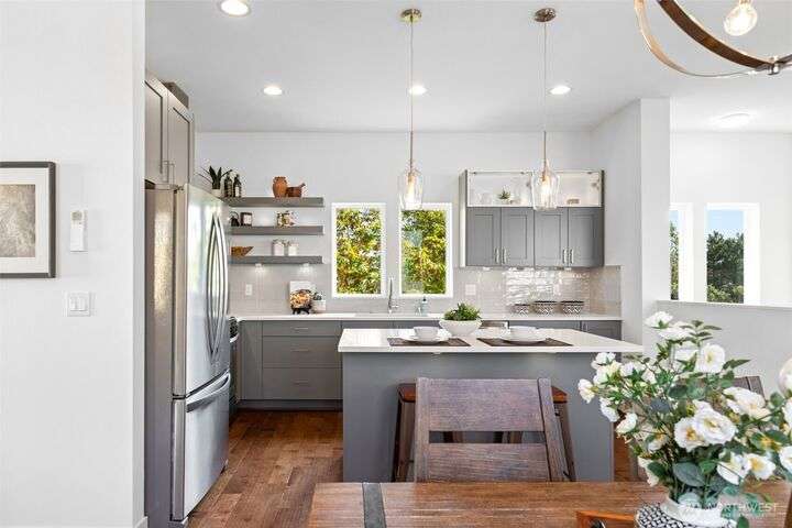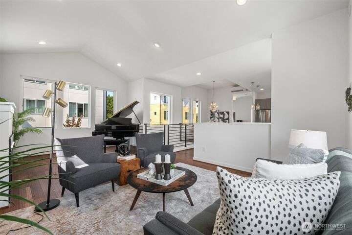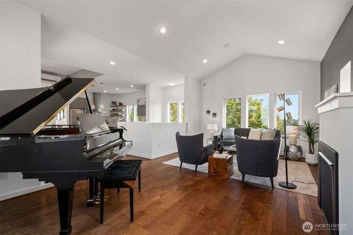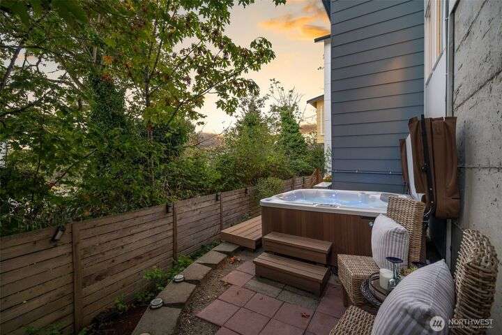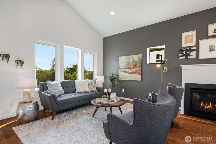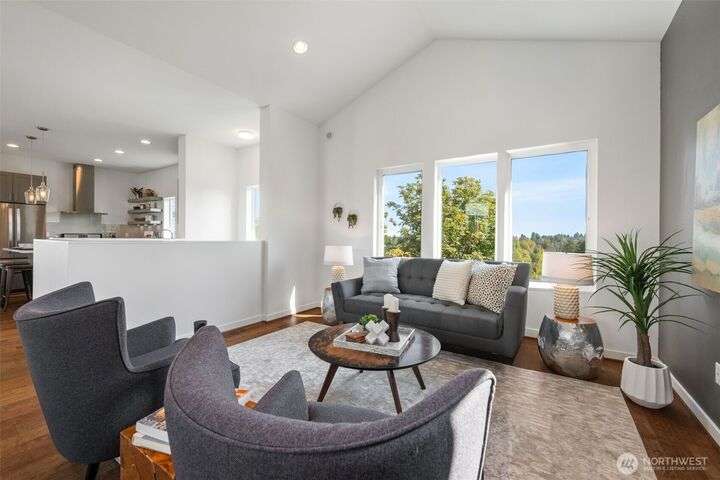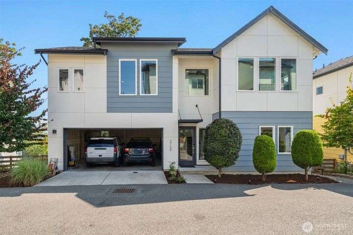 This modern West Seattle home pairs luminous design with a layout made for gathering. The loft-like upper level, framed by windows and territorial views, offers flexible spaces for entertaining or a cozy retreat around the fireplace. A generous kitchen, full dining space, and a roomy office nook make daily life seamless. Two bedrooms and a guest bath share the main floor, while the lower-level primary suite is a true getaway with a walk-in closet, spa-worthy bath, with doors to a private space and hot tub. Good closets + storage, A/C, 2-car garage, all tucked into the quiet end of a welcoming community. Walk to parks, pickle ball, library, and neighborhood dining. Welcome to effortless living!
