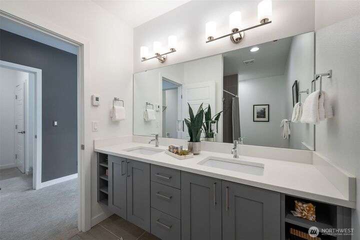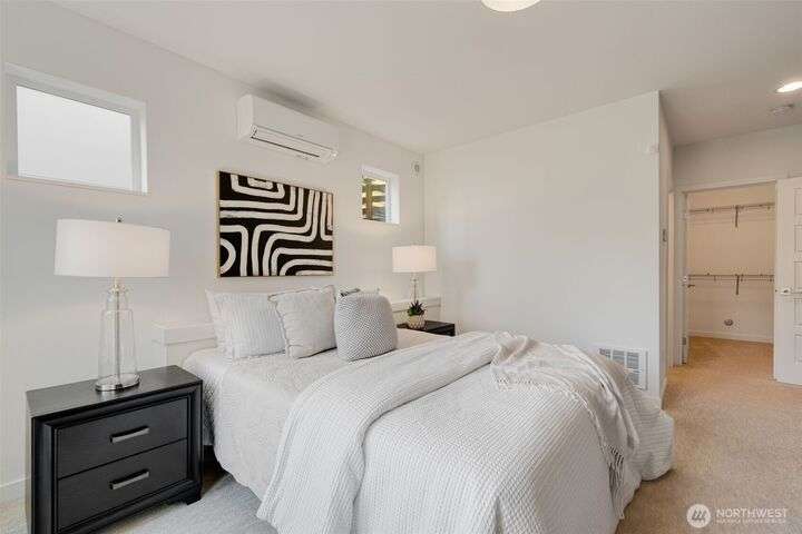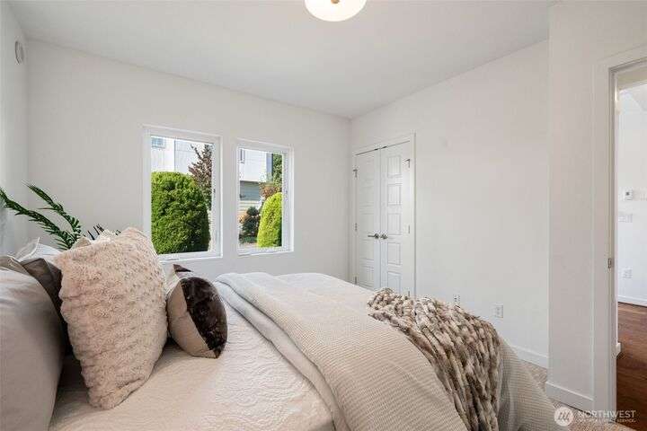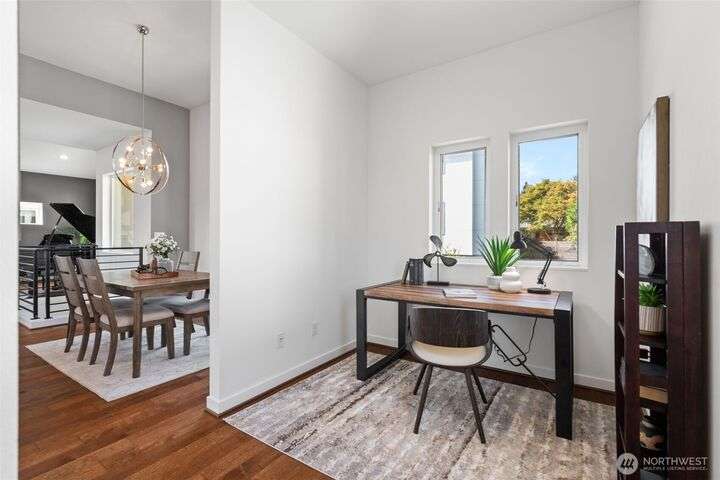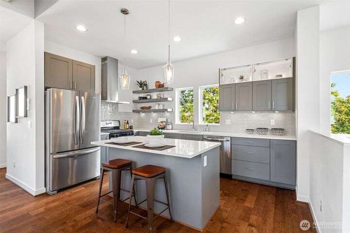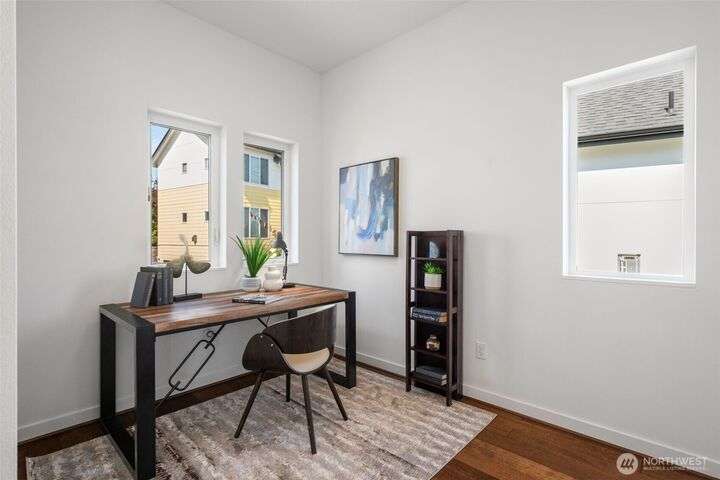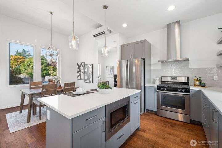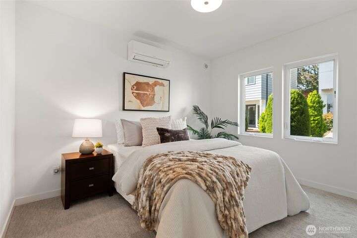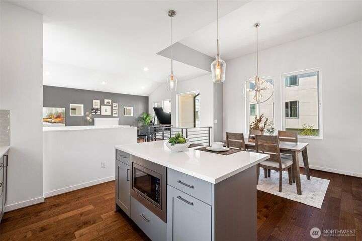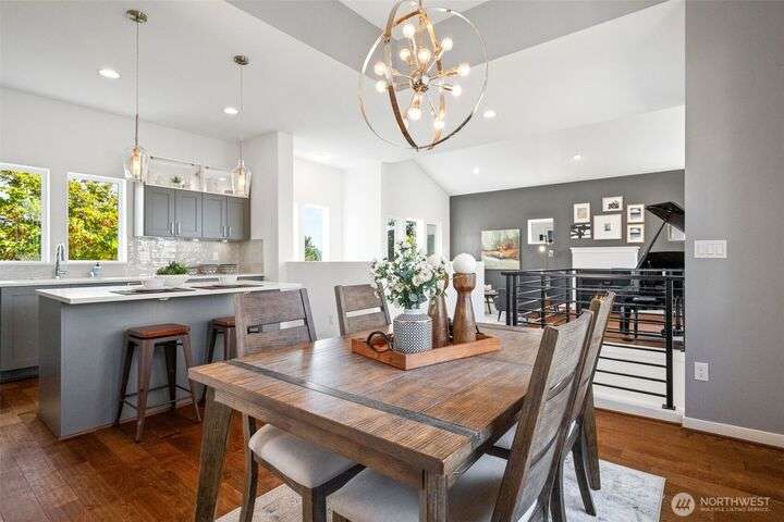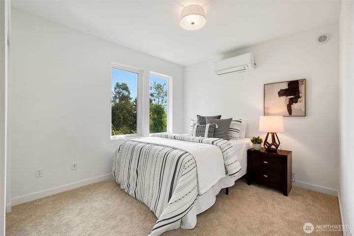 This modern West Seattle home pairs luminous design with a layout made for gathering. The loft-like upper level, framed by windows and territorial views, offers flexible spaces for entertaining or a cozy retreat around the fireplace. A generous kitchen, full dining space, and a roomy office nook make daily life seamless. Two bedrooms and a guest bath share the main floor, while the lower-level primary suite is a true getaway with a walk-in closet, spa-worthy bath, with doors to a private space and hot tub. Good closets + storage, A/C, 2-car garage, all tucked into the quiet end of a welcoming community. Walk to parks, pickle ball, library, and neighborhood dining. Welcome to effortless living!