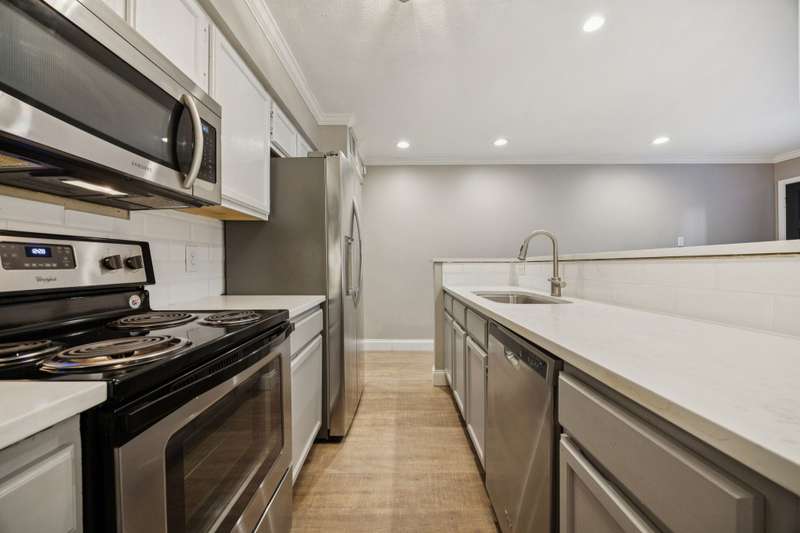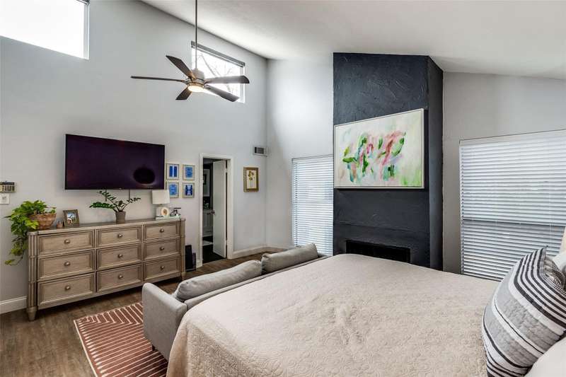 Welcome to 4411 Gilbert #12 a stylishly updated 2-bed, 2-bath townhome that perfectly blends city energy with cozy comfort. Step inside and youll find an open-concept living space drenched in natural light, featuring a crisp white-and-gray kitchen with quartz countertops, stainless-steel appliances, and modern finishes that pop. The home is lined with luxury vinyl plank floors sleek, durable, and pet-friendly making life and cleanup a breeze.Upstairs, the primary bedroom boasts a vaulted ceiling and an abundance of sunlight. The suite feels like your own private retreat, complete with a wood-burning fireplace, dual sinks, a walk-in shower, and even a cedar closet. Youll love the smart touches throughout from the convenient laundry station with a folding and drip-dry area to the epoxy-floored garage and extra storage space. Upgrades include a brand-new HVAC system and a one-year-old roof, as well as a tankless water heater, giving you peace of mind for years to come. As an end unit in a small gated community, this home lives like a hidden gem quiet, secure, and surrounded by greenery. It truly feels like a treehouse in the city! Step outside and youre moments from some of Dallas best restaurants, shops, and parks. Whole Foods, the Katy Trail, and Turtle Creek are all within walking distance. Whether youre sipping coffee on a lazy Sunday or heading out for happy hour, this Oak Lawn stunner puts you right where you want to be in style, comfort, and convenience.
