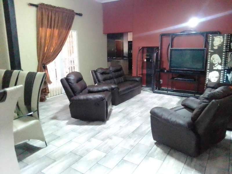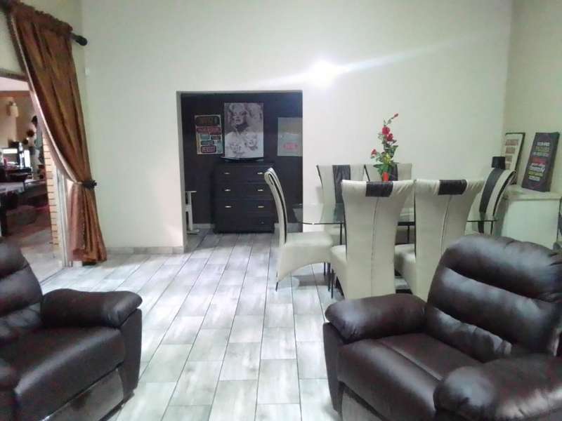4 Bedroom house situated in a good part of Wilkoppies close to shopping centers and hospitals this property offers you a lot and more 4 Bedrooms 2 Bathrooms of which one is en-suite with shower basin and toilet second bathroom with bath and basin and separate toilet Lounge dining room family room with jaccuzi Spacious kitchen with cupboards and a gas stove and elecrtical stove Lappa with a built in braai with a built in bar pool equiped tool shed outside toilet Carports for 4 cars fully fenced call me to avoid disappoint ment