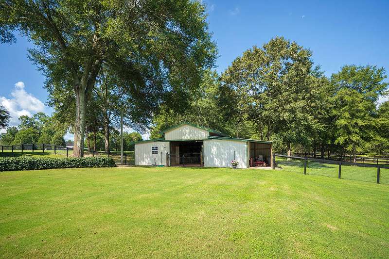 Welcome to Gray Mare Hollow Farm! Twenty-four acres of serene countryside in the much sought after south side of Aiken. The best of the best for that laid-back country life style. Your very own ''Mini-Hitchcock Woods'' with all new horse fencing in 2025, approx. 9 acres of rolling pastures, 13 acres of private wooded trails, a spring fed pond frequented regularly by wildlife. A quaint five stall barn provides seamless equestrian care while including a feed and tack-room, full lighting, water to barn plus an attached small equipment shed. There are two large paddocks thoughtfully laid out for easy access to the barn. An 1100 square foot insulated shop/outbuilding with a 22 foot awning that covers two 10x8 roll up doors, along with 200 amp service. Adjacent to the shop is a charming guest cottage complete with living/sleeping area, kitchenette, refrigerator and full bath. A shining bonus is the natural footing 75x135 sand arena. Nestled under stately oaks amidst this ''Mini-Hitchcock Woods you will find an exquisitely appointed 2364 SF ranch style home freshly painted and new LVP flooring throughout offering three bedrooms, two full baths, one half bath, formal dining room, family room, an eat- in country style kitchen. The formal dining room presents highly appointed accents for a more decorous setting. Drenched with natural light the spacious family room with a delightful fireplace flows into the kitchen. The custom kitchen includes ample storage, a butler's pantry, stainless steel appliances , an island with seated bar area as well as a breakfast room overlooking the perfectly manicured yard and pristine pastures beyond. Exit the kitchen onto the covered deck to have your morning coffee while enjoying the view. At the bottom of the stairs off the deck is a cozy fire pit for chilly evenings. This is a move in ready property, one you ''must'' see to appreciate the endless possibilities! This listing contains virtually staged pictures.