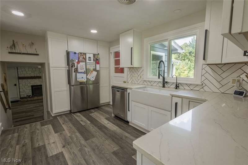 If you are looking for a beautifully updated, move-in-ready home in the Chagrin Falls School District ? stop, you have found it! Welcome to 98 Lee View, a standout split-level residence in the highly desirable Bell Wood Lake community. From the moment you step through the front door, you'll be greeted by the expansive, light-filled main level. Walls have been thoughtfully removed to create a stunning open-concept, modern layout that flows seamlessly into the heart of the home. The full renovation ? featuring a striking new kitchen with pristine cabinetry, sleek countertops, new appliances, designer lighting, and fresh flooring throughout ? sets the tone for the home's overall vibe: high-quality craftsmanship, functional design, and timeless finishes. Just four steps down, the great room awaits. With new flooring and a cozy fireplace, this space invites both relaxed gatherings and quiet moments alike. The adjoining screened-in sunroom extends your living space outdoors ? perfect for crisp fall evenings with a glass of wine, nature as your backdrop, and comfort under cover. Outside, the one-acre lot delivers a serene setting and an entertainer's dream backyard. A paver patio beckons for summer BBQs, fire-pit nights, or lawn-game afternoons. When winter arrives, unwind in the hot tub under a blanket of snow ? the perfect year-round retreat. Inside and out, this home was designed to host, relax, and flow with ease. When it's time to retreat for the night, the upper level offers a true primary suite with its own private bath, plus two additional bedrooms and a hall bath. The lower level provides a finished recreation area and laundry room ? ideal for families, guests, or game nights. And don't miss the bonus room off the garage, perfect for a home studio, gym, or hobby space. With its thoughtful renovations, entertainer-friendly layout, polished style, and prime community location, 98 LeeView is ready for your next chapter. Welcome Home!