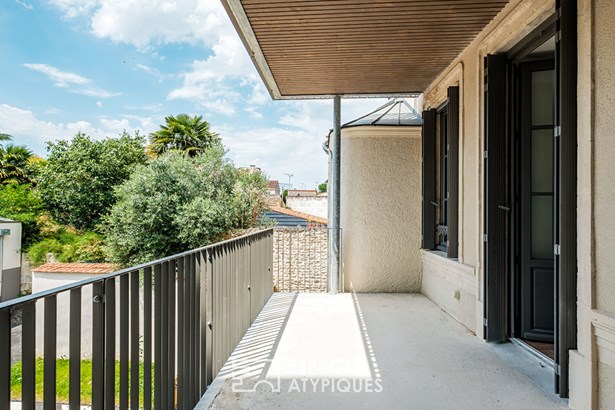 This apartment benefits from a unique outdoor space with a spacious, protected and architectural terrace and private garden, then a double vaulted stone cellar. Upstairs, the master suite has the privilege of a 13 m2 balcony, a boudoir nestled in the old turret, a dressing area and a bathroom.