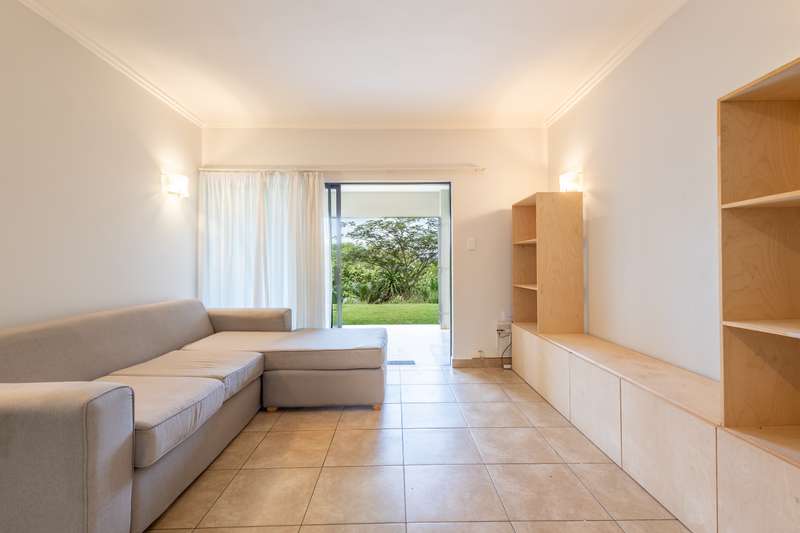SOLE MANDATE - 2 bedroom ground floor apartment in popular Palm Lakes Estate. The apartment is at the end of the block, allowing for more space and privacy. Open plan living flowing out onto the covered veranda. The apartment has lovely serene views over the greenbelt and a path which leads down to a nearby dam. Master bedroom has built in cupboards and lovely door to ceiling windows making the room seem more spacious. 2nd bedroom is of decent size. Both bedrooms have air cons in them (Master Aircon is still under warranty) There is a separate 2nd bathroom. Both bathrooms now have monkey mesh on the windows. Apartment has metered electricity. There is a single covered parking and plenty visitors parking for the block. There is currently a tenant in place until end October 2025 Residents of Palm Lakes have all the amenities at their disposal; walking trials, swimming pools, restaurants, tennis courts. skate pump track, fishing dams. Call now to arrange a viewing!