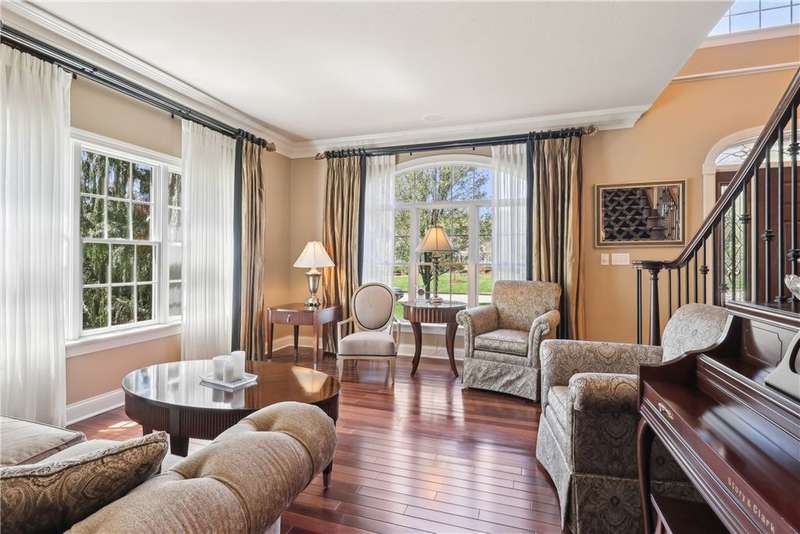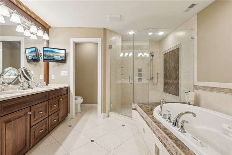 BEAUTIFUL BRICK 2 STORY HOME BY AWARD WINNING SUNCREST HOMES. BUILT ON A LEVEL 1.2 ACRE PARK LIKE YARD. LARGE EXTERIOR PATIO (22X20 IS UNDER ROOF) WITH AN OUTDOOR FIRE PIT AND HOT TUB PAD. THE FIRST FLOOR FEATURES: BEAUTIFUL HARD WOOD FLOORING, CHEF'S FULLY EQIPPED KITCHEN WITH WOLF RANGE, 2 DISHWASHERS AND ISLAND SEATING. THE LIVING AND DINING ROOM ARE OFF THE STUNNING FOYER. THE DEN/5TH BEDROOM HAS AN ADJOINING FULL BATH. LARGE FAMILY ROOM WITH GORGEOUS FIREPLACE AND 14FT CEILING. THE SECOND FLOOR IS WHERE YOU WILL FIND THE MASTER BEDROOM WITH GAS FIREPLACE, LARGE ENSUITE BATH WITH CUSTOM STEP IN SHOWER, JETTED TUB, GENEROUSLY SIZED MASTER CLOSETS, AND ANOTHER ROOM THAT WOULD MAKE A GREAT NURSERY OR AWESOME CLOSET/ DRESSING ROOM. BED 2 HAS ITS OWN ENSUITE BATH, BEDS 3 AND 4 SHARE A JACK N JILL BATH. FINISHED LL W /FULL BATH, OFFICE AND GAMEROOM WITH BUILT INS, FIREPLACE, WET BAR, WALK OUT BASEMENT. OVERSIZED 3 GAR GARAGE. MINUTES FROM RT.22, THE SCHOOLS, SHOPPING & RESTAURANTS.