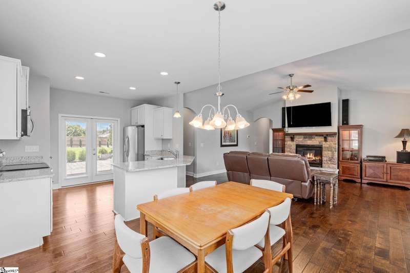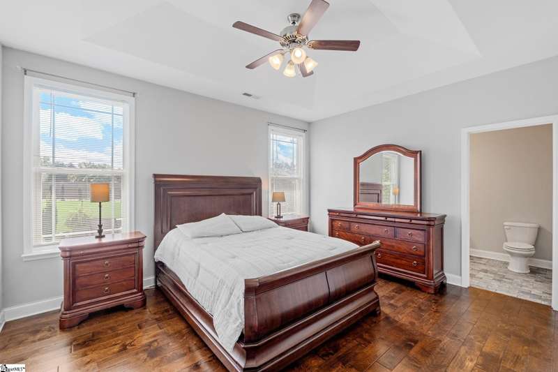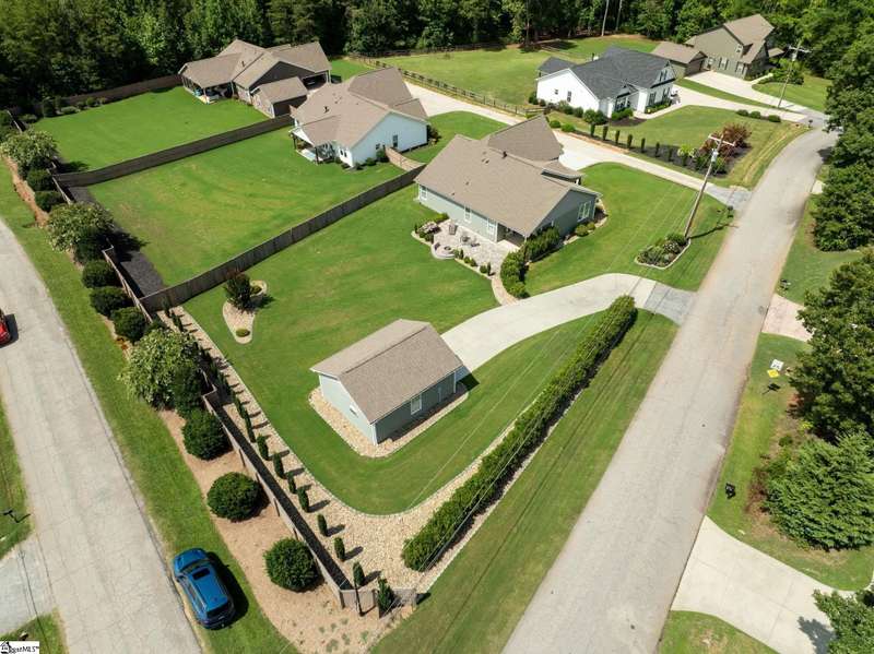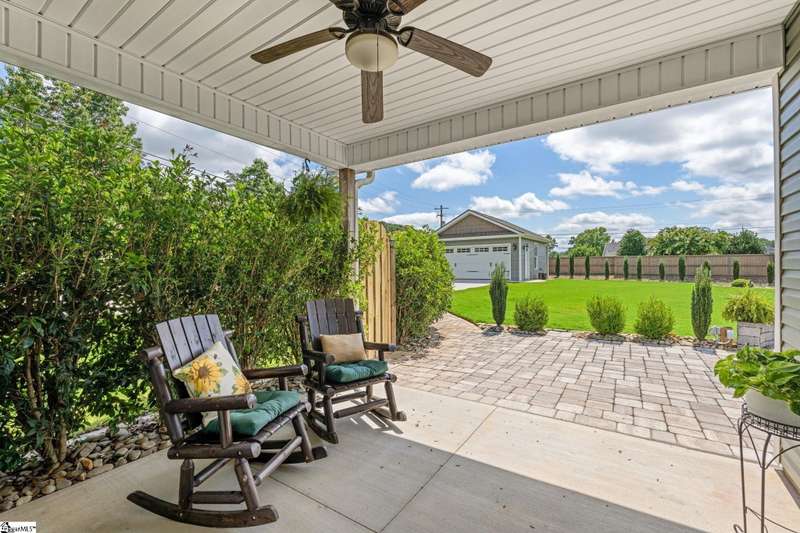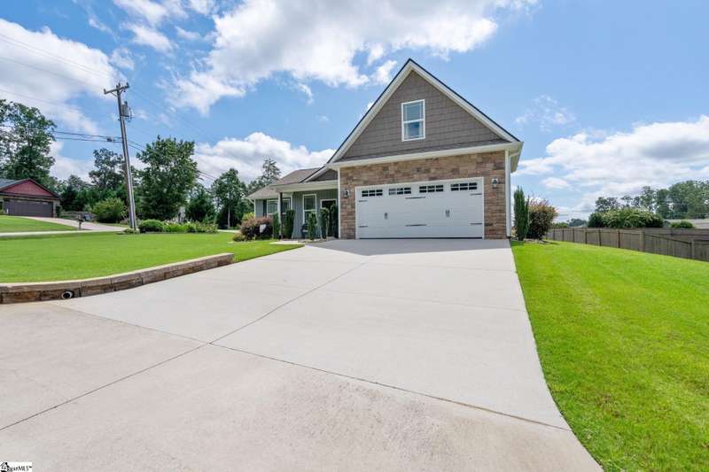 Exceptional One-Owner Home on Half an Acre in Sought-After Travelers Rest! Welcome to 5 Smith Tractor Road - a beautifully upgraded, move-in-ready home that truly has it all. Nestled on a spacious half-acre lot with pristine landscaping, this meticulously maintained 4-bedroom, 2-bathroom home features a primary suite on the main level, a two-car attached garage, and a detached two-car garage or workshop - ideal for hobbyists, storage, or additional vehicles. Step onto the inviting rocking chair front porch and into a light-filled great room with hardwood floors throughout the main level, soaring ceilings, and an abundance of windows that fill the space with natural light. The open-concept layout seamlessly connects the family room - featuring a gas stacked-stone fireplace with a crafted hardwood mantle - to the casual dining area, creating the perfect space for entertaining or relaxing. The kitchen is the heart of the home, overlooking both the beautifully landscaped backyard and main living areas. It features granite countertops, stainless steel appliances including the refrigerator, ample cabinetry, and a pantry. The spacious primary suite is a serene retreat with separate access to the patio - perfect for morning coffee - a large walk-in closet, and a luxurious en suite bathroom featuring dual sinks, a separate tile shower, and a garden soaking tub. Two additional bedrooms and a well-appointed full bathroom are located on the main level, ideal for family or guests. The laundry room is generously sized, and the high-end Electrolux washer and dryer will convey with the home. Upstairs, you'll find a large flex space that can serve as a fourth bedroom, home office, studio, or more – offering maximum versatility. Outside, this property truly shines. Both the attached and detached two-car garages feature epoxy floors and ample storage. The detached garage is climate-controlled, making it the perfect workshop or year-round hobby space. The attached two-car garage has additional storage under the stairs and a convenient utility sink for cleaning up after projects or gardening. The expansive backyard is a private oasis with lush landscaping, a covered patio, and a built-in hardscape fire pit - perfect for unwinding after a long day. A seven-zone irrigation system keeps the yard vibrant, even during the summer heat. Located just minutes from downtown Travelers Rest, shopping, dining, and the Swamp Rabbit Trail, this home offers the perfect blend of comfort, function, and location. Don’t miss your chance to own this exceptional home - schedule your showing today! Call or text Ashley Steigerwald with Wilson Associates at 864-907-0601 or email ashley@wilsonassociates.net.