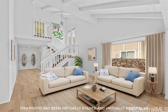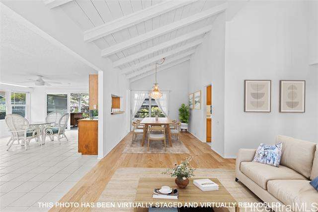 This 4-bedroom, 2.5-bathroom home offers nearly 3,000 square feet of interior living space, featuring a well-designed Skipper floor plan that has been expanded to provide extra room for both everyday living and entertaining. Lots of natural light, thanks to large windows that brighten the interior and create a welcoming atmosphere. Well-maintained but ready for some updating, the home includes a generous family room perfect for relaxing or spending time with loved ones. The added bonus room offers flexibility for whatever your needs may be - whether it’s a home office, media room, or playroom. Step outside to the large covered patio, an ideal space for bbqing, outdoor dining, or simply relaxing. Surrounded by lush greenery and vibrant pink hibiscus, the patio creates a private, peaceful setting that complements the island lifestyle. In addition, the primary suite features a private deck, offering a quiet spot to enjoy your morning coffee. Located in the desirable Kalama Valley neighborhood of Hawaii Kai, this single-family home is conveniently located near Sandy Beach, hiking trails, shopping, and dining. *Some photos have been virtually staged and remodeled.