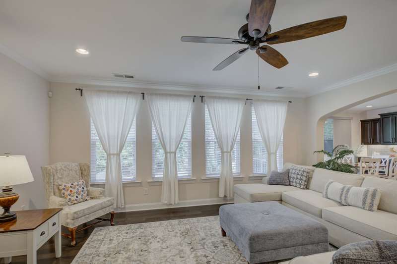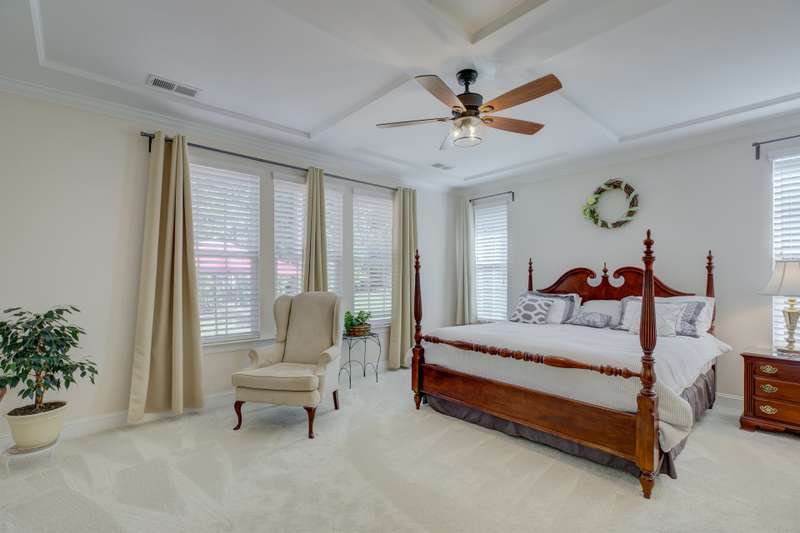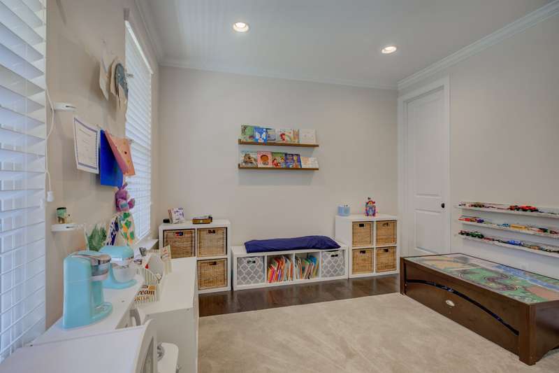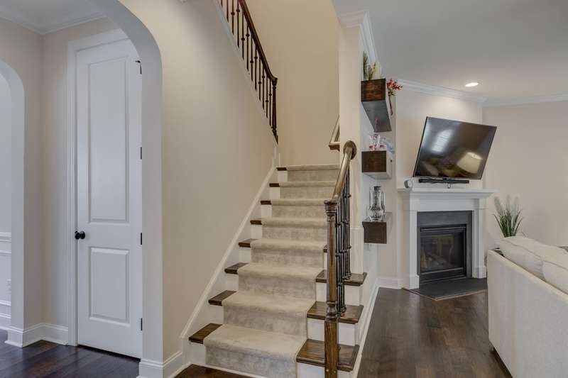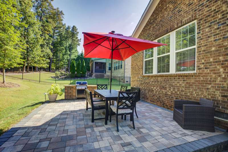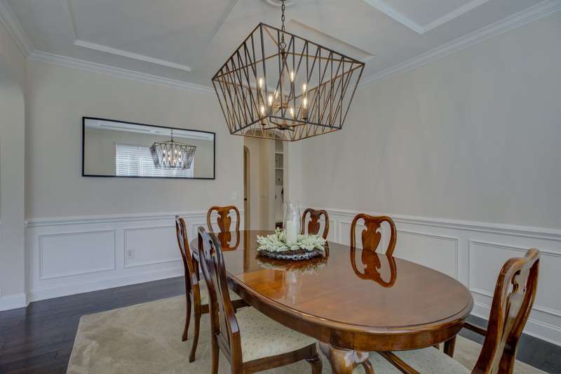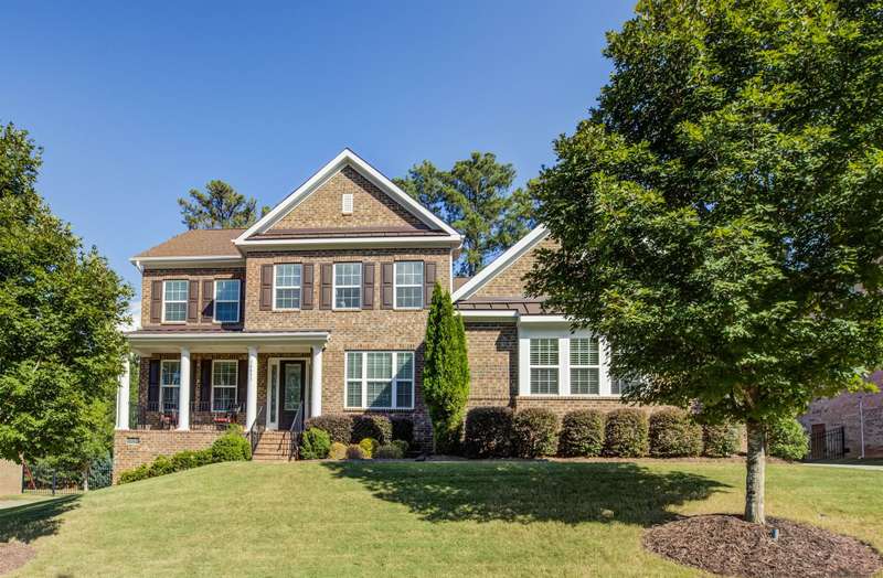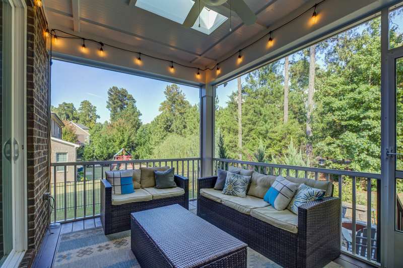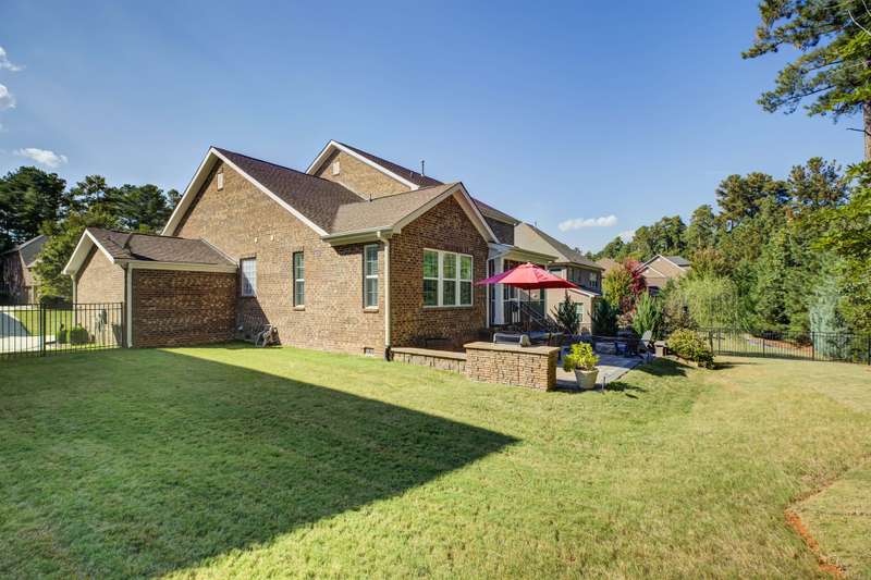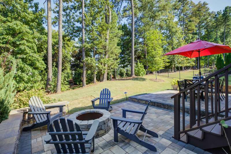 Located in the exclusive gated community of Bear Creek within the amenity-rich Palisades, this home offers the perfect balance of elegance, comfort, and country club living. A welcoming rocking chair front porch opens into a grand foyer, where a private French door study sits opposite the formal dining room. The elegant dining room showcases a coffered ceiling and wainscoting, details that carry down the hall into the great room. Rich hardwood floors connect the open-concept main level. A butler's pantry with a beverage refrigerator leads to the gourmet kitchen, featuring espresso cabinetry, a large prep island, granite countertops, pendant lighting, a gas cooktop, and a wall oven. The spacious great room is anchored by a gas fireplace and filled with natural light. The breakfast area opens to a screened porch, perfect for year-round enjoyment. Outside, enjoy a private wooded and fenced backyard complete with an expansive paver patio, built-in firepit, and in-ground irrigation. The main-level primary suite is a true retreat, featuring a coffered ceiling, a spa-like bath with a soaking tub, a glass-enclosed shower, dual vanities, and a walk-in closet. Upstairs, four bedrooms include one with a private bath, two sharing a hall bath, and a fifth expansive bedroom that could also function as a fantastic bonus room. A 2-car garage plus a separate 1-car garage provide ample parking and storage. Bear Creek residents enjoy a private gated enclave while also accessing The Palisades' incredible lifestyle amenities: homeowners' clubhouse, fitness center, outdoor pool, pickleball and basketball courts, and miles of scenic walking trails. Optional golf and social memberships at The Palisades Country Club elevate the experience, offering championship golf, dining, and events just minutes from home.