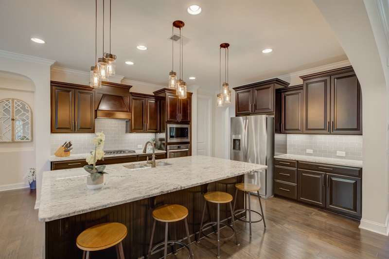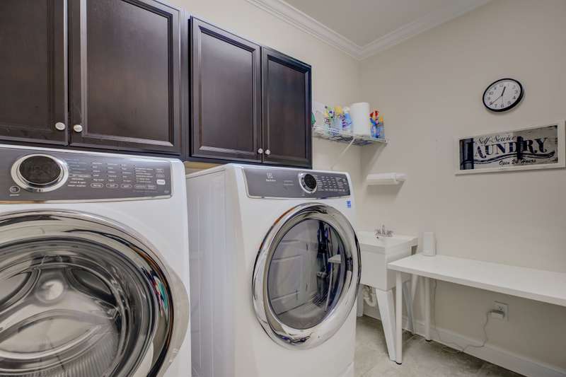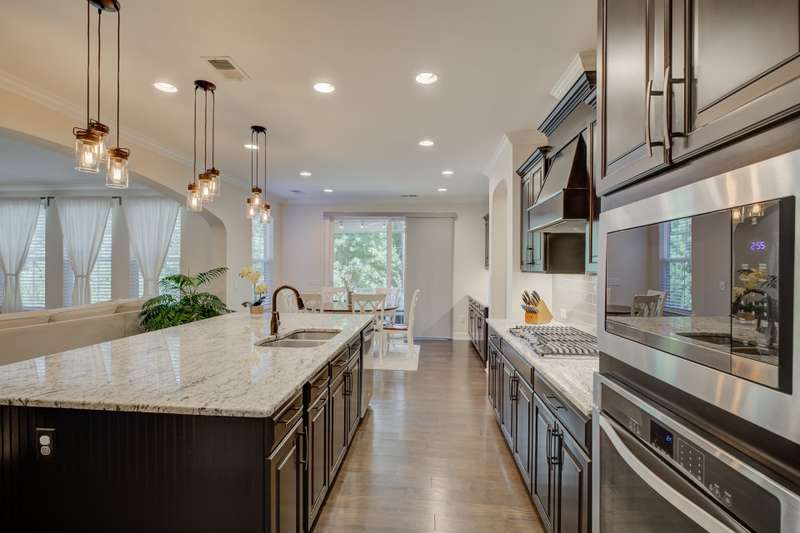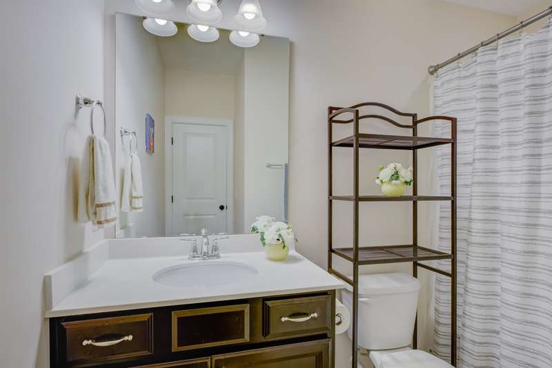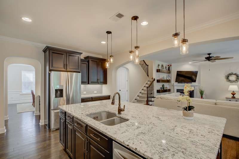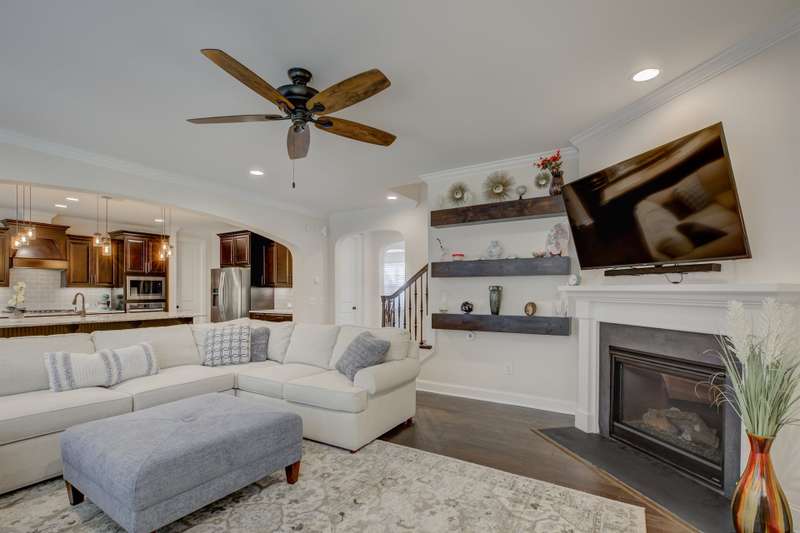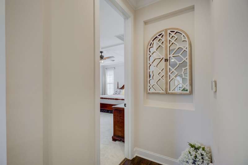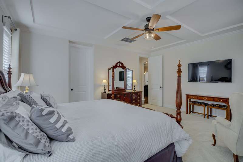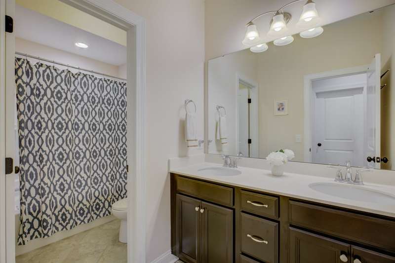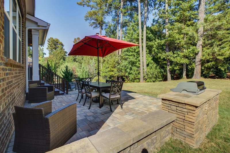 Located in the exclusive gated community of Bear Creek within the amenity-rich Palisades, this home offers the perfect balance of elegance, comfort, and country club living. A welcoming rocking chair front porch opens into a grand foyer, where a private French door study sits opposite the formal dining room. The elegant dining room showcases a coffered ceiling and wainscoting, details that carry down the hall into the great room. Rich hardwood floors connect the open-concept main level. A butler's pantry with a beverage refrigerator leads to the gourmet kitchen, featuring espresso cabinetry, a large prep island, granite countertops, pendant lighting, a gas cooktop, and a wall oven. The spacious great room is anchored by a gas fireplace and filled with natural light. The breakfast area opens to a screened porch, perfect for year-round enjoyment. Outside, enjoy a private wooded and fenced backyard complete with an expansive paver patio, built-in firepit, and in-ground irrigation. The main-level primary suite is a true retreat, featuring a coffered ceiling, a spa-like bath with a soaking tub, a glass-enclosed shower, dual vanities, and a walk-in closet. Upstairs, four bedrooms include one with a private bath, two sharing a hall bath, and a fifth expansive bedroom that could also function as a fantastic bonus room. A 2-car garage plus a separate 1-car garage provide ample parking and storage. Bear Creek residents enjoy a private gated enclave while also accessing The Palisades' incredible lifestyle amenities: homeowners' clubhouse, fitness center, outdoor pool, pickleball and basketball courts, and miles of scenic walking trails. Optional golf and social memberships at The Palisades Country Club elevate the experience, offering championship golf, dining, and events just minutes from home.