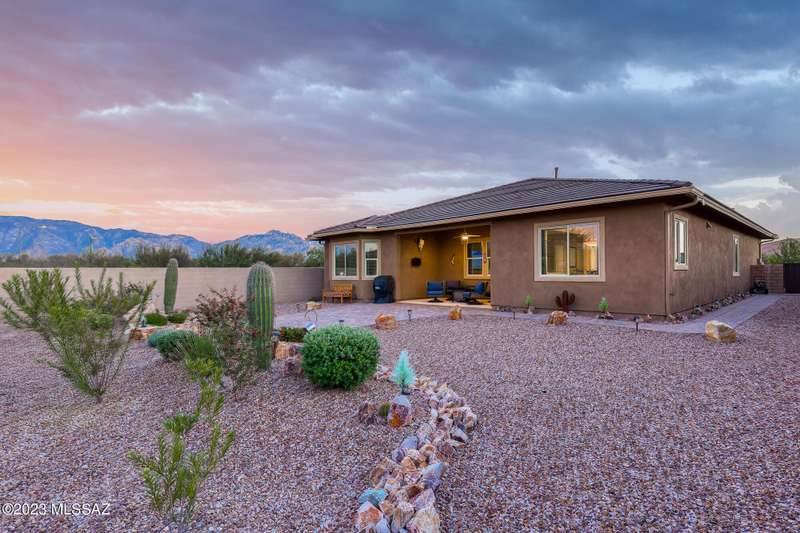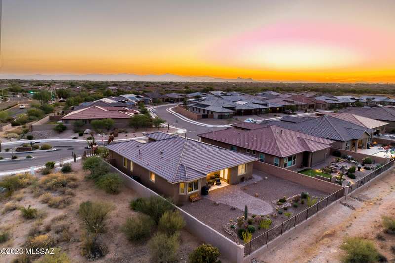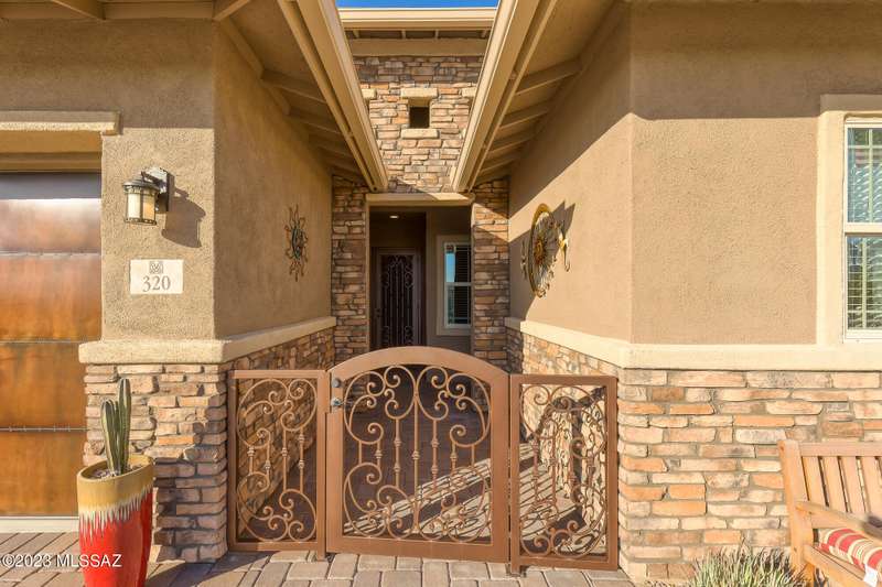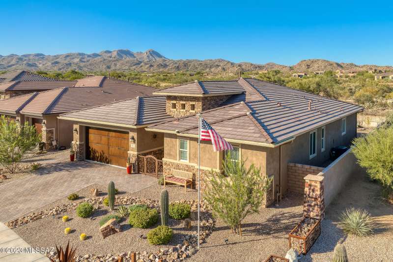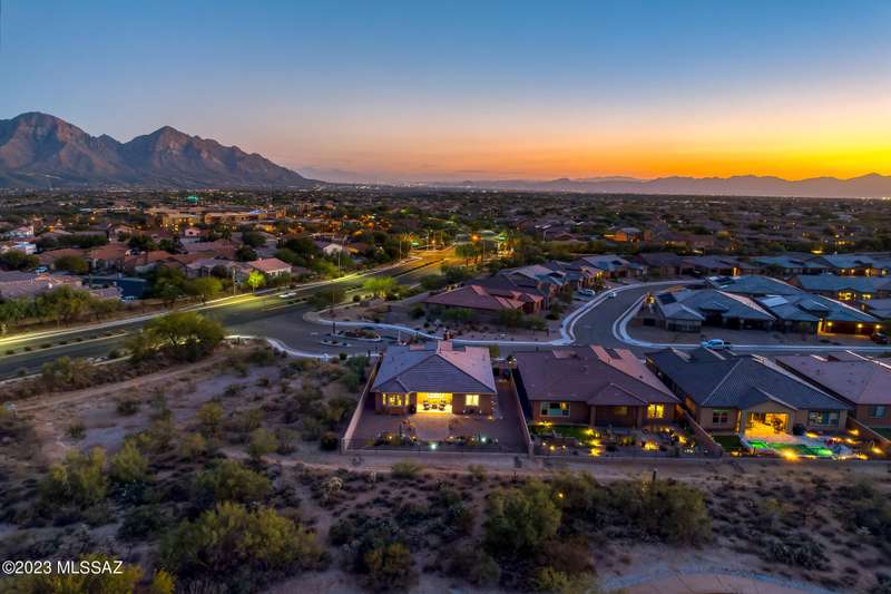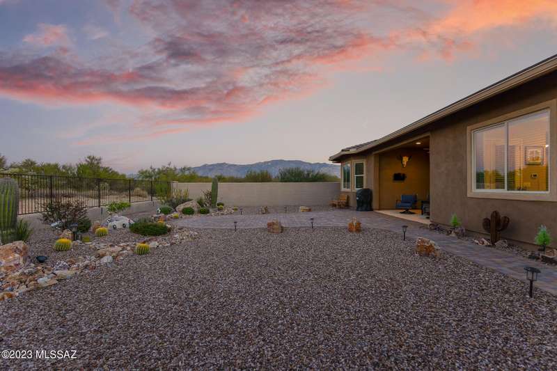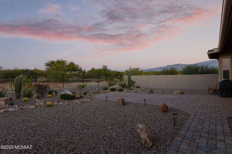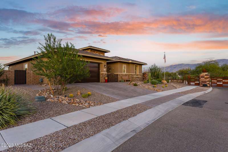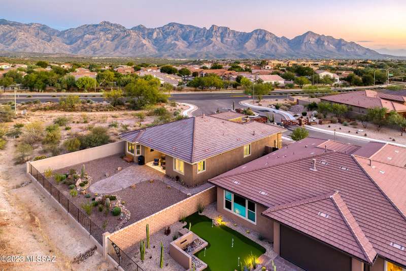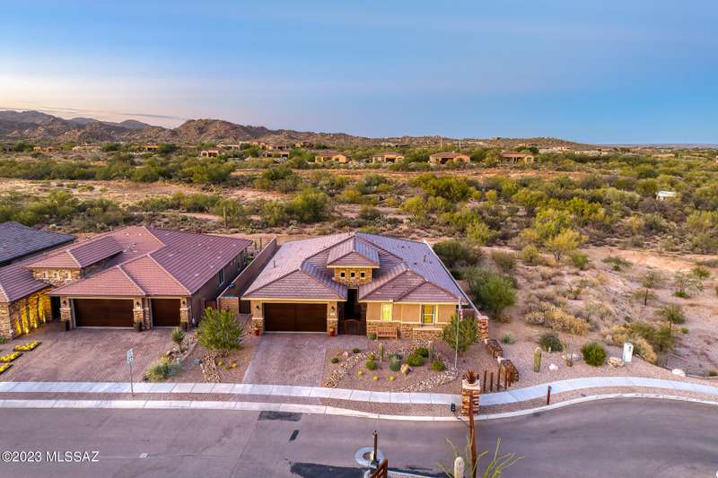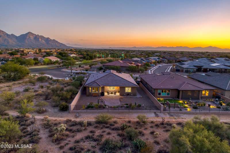 A 2537 sq ft Contemporary style home with Southern Exposure and un-restricted views of the Catalina Mountains and Tortalita Mountains, and is situated on an ''oversized'' corner lot, backing to the ''Vistoso Trails Nature Preserve'' in the highly sought-after gated community of Rancho Vistoso Highlands in Oro Valley. The home boast's 3-4 Bedrooms, 2 1/2 Baths, Gourmet Kitchen, Den, ''Teen room-Man cave'', and oversized 2 car Garage. Exterior features include towered courtyard with iron security gate and matching security door, stone exterior with rain gutters and downspouts, paved courtyard, walkways, driveway, storage area, and back patio extension. The Bronze/Copper garage doors lead's you to the black/white/gray Epoxy floor, while the upgraded ''Boulder and Cactus'' landscaping package'