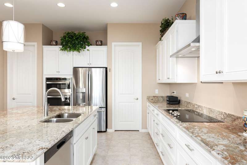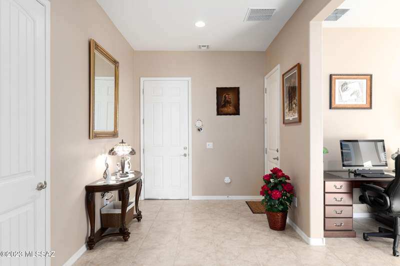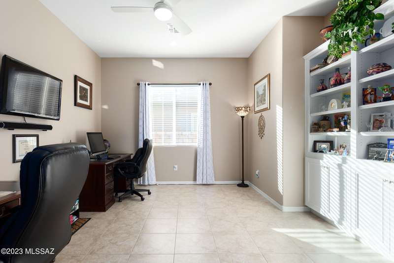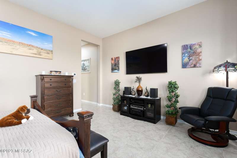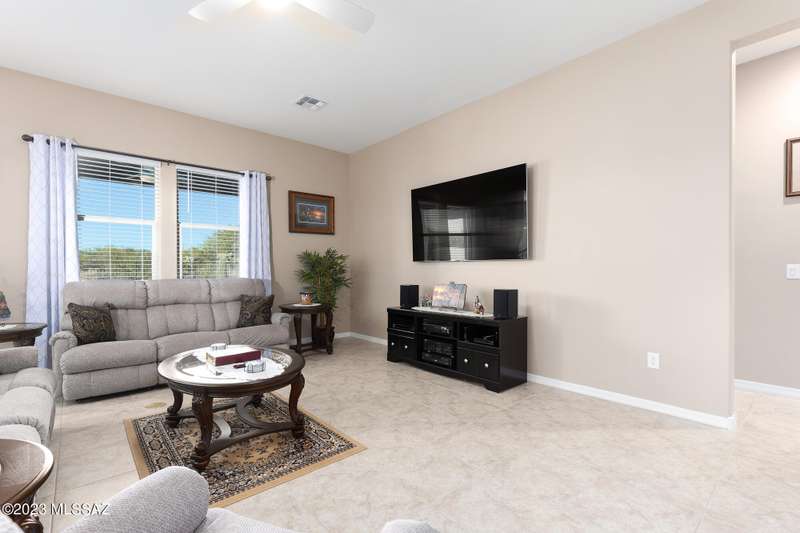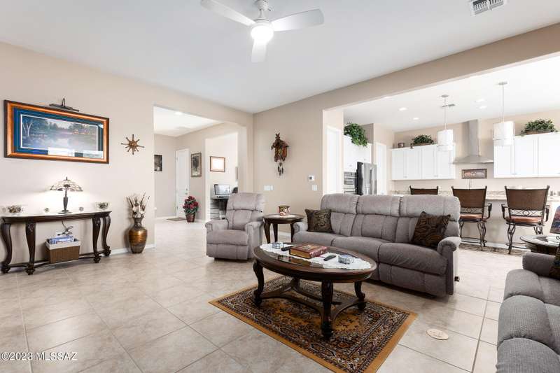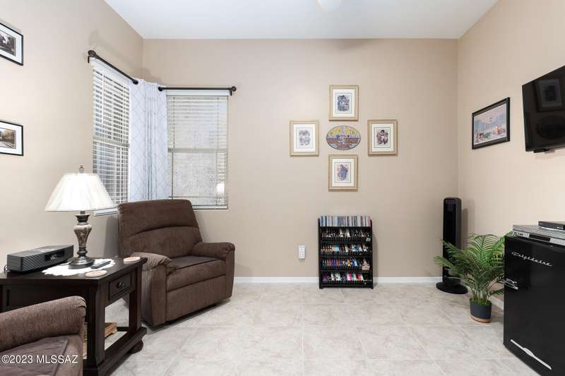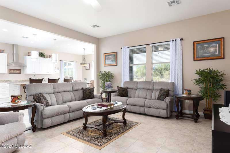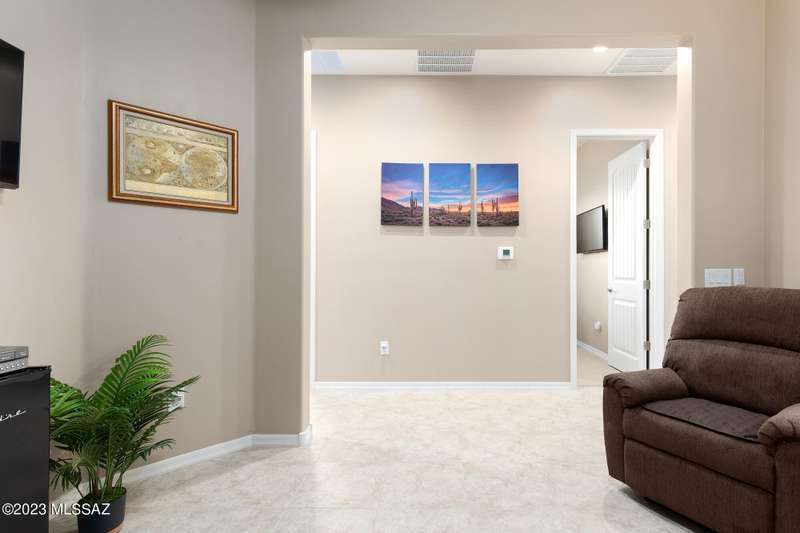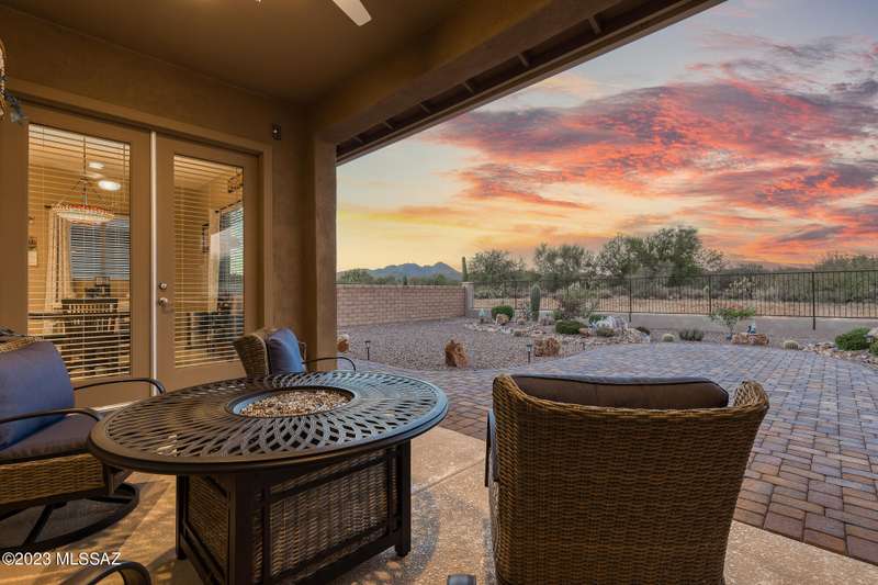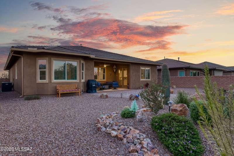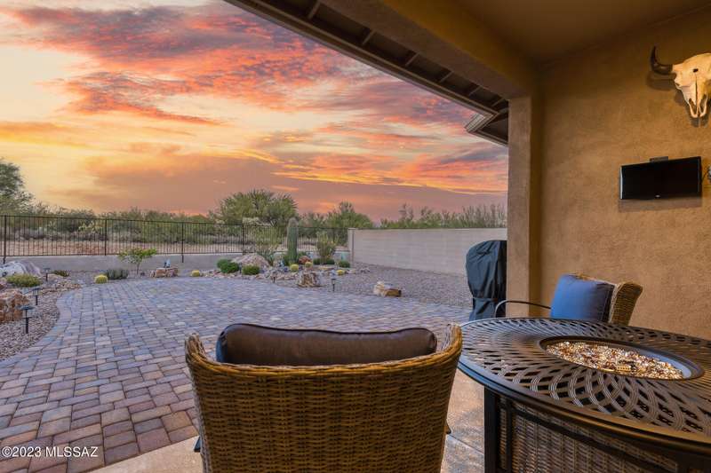 A 2537 sq ft Contemporary style home with Southern Exposure and un-restricted views of the Catalina Mountains and Tortalita Mountains, and is situated on an ''oversized'' corner lot, backing to the ''Vistoso Trails Nature Preserve'' in the highly sought-after gated community of Rancho Vistoso Highlands in Oro Valley. The home boast's 3-4 Bedrooms, 2 1/2 Baths, Gourmet Kitchen, Den, ''Teen room-Man cave'', and oversized 2 car Garage. Exterior features include towered courtyard with iron security gate and matching security door, stone exterior with rain gutters and downspouts, paved courtyard, walkways, driveway, storage area, and back patio extension. The Bronze/Copper garage doors lead's you to the black/white/gray Epoxy floor, while the upgraded ''Boulder and Cactus'' landscaping package'