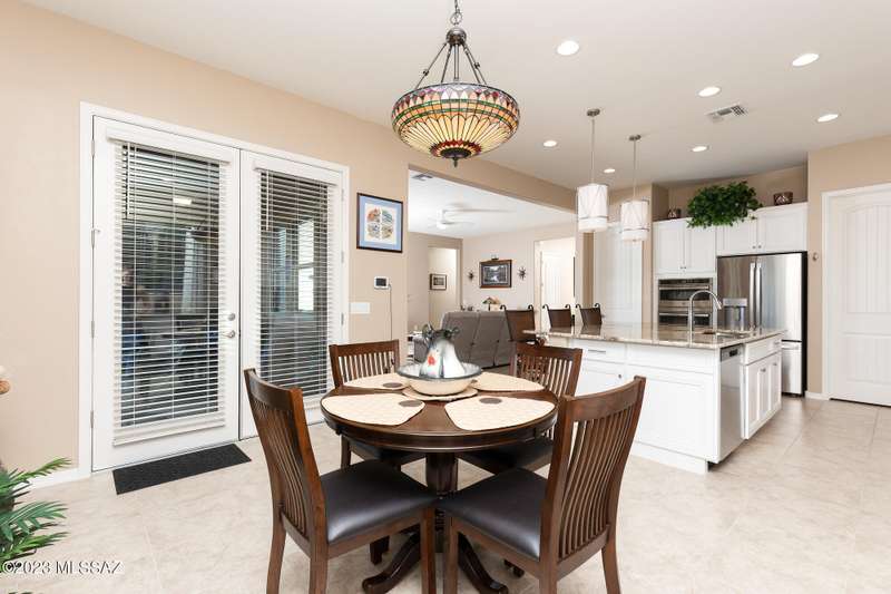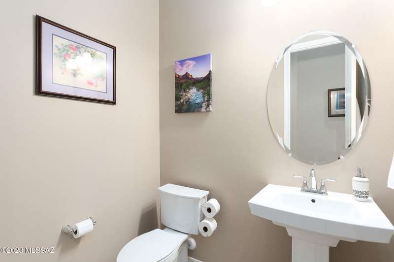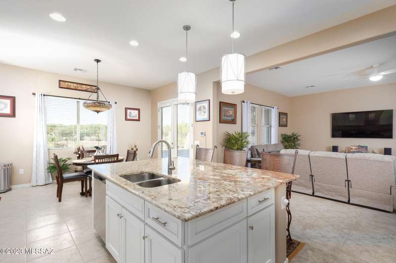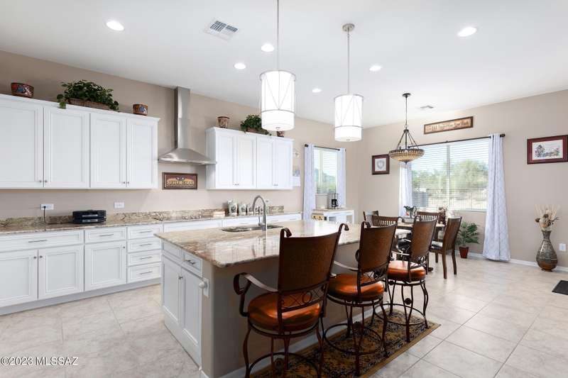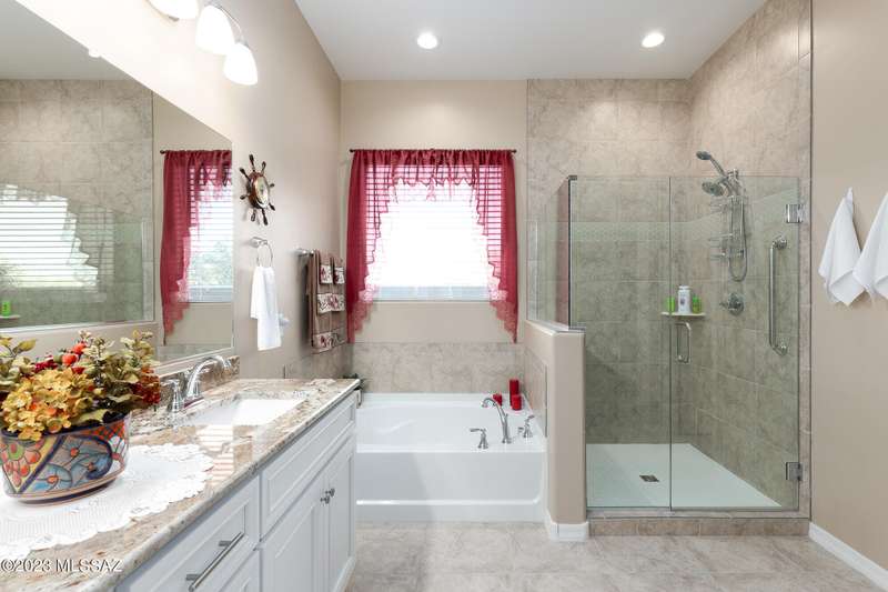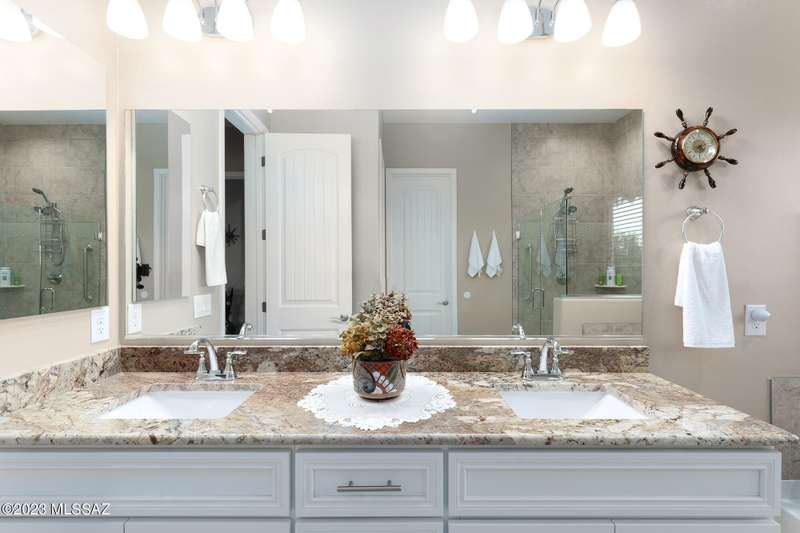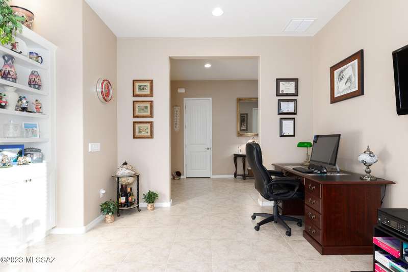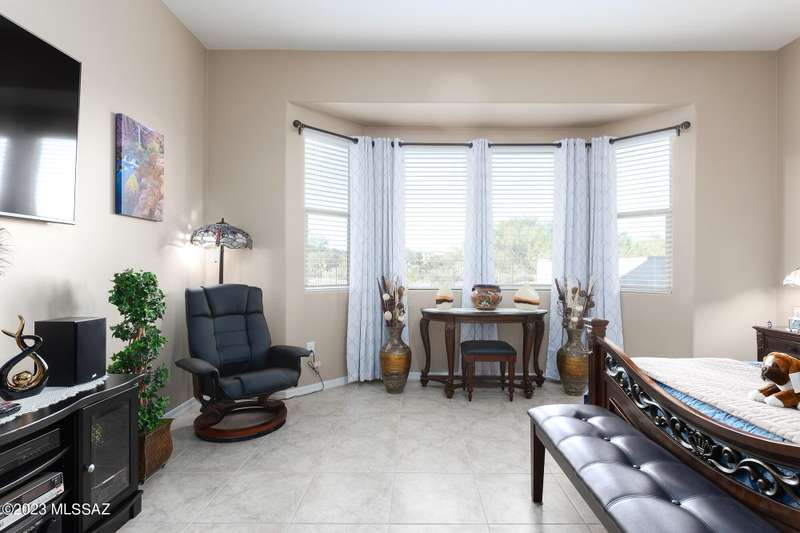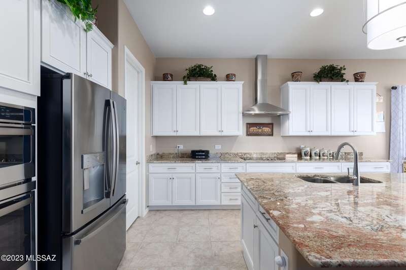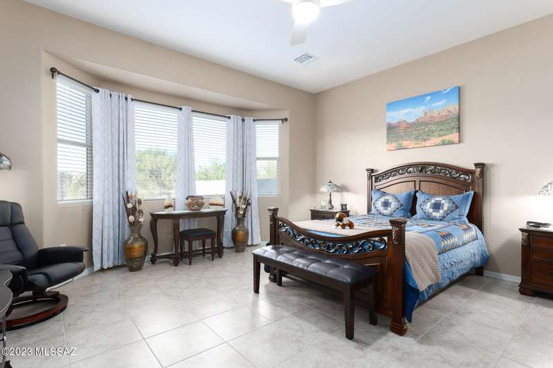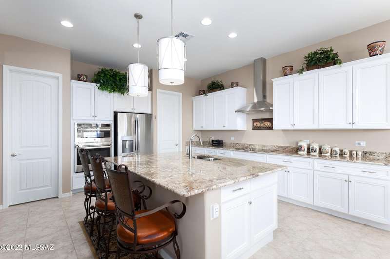 A 2537 sq ft Contemporary style home with Southern Exposure and un-restricted views of the Catalina Mountains and Tortalita Mountains, and is situated on an ''oversized'' corner lot, backing to the ''Vistoso Trails Nature Preserve'' in the highly sought-after gated community of Rancho Vistoso Highlands in Oro Valley. The home boast's 3-4 Bedrooms, 2 1/2 Baths, Gourmet Kitchen, Den, ''Teen room-Man cave'', and oversized 2 car Garage. Exterior features include towered courtyard with iron security gate and matching security door, stone exterior with rain gutters and downspouts, paved courtyard, walkways, driveway, storage area, and back patio extension. The Bronze/Copper garage doors lead's you to the black/white/gray Epoxy floor, while the upgraded ''Boulder and Cactus'' landscaping package'