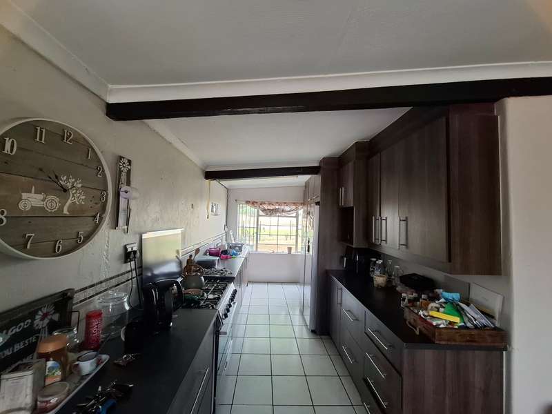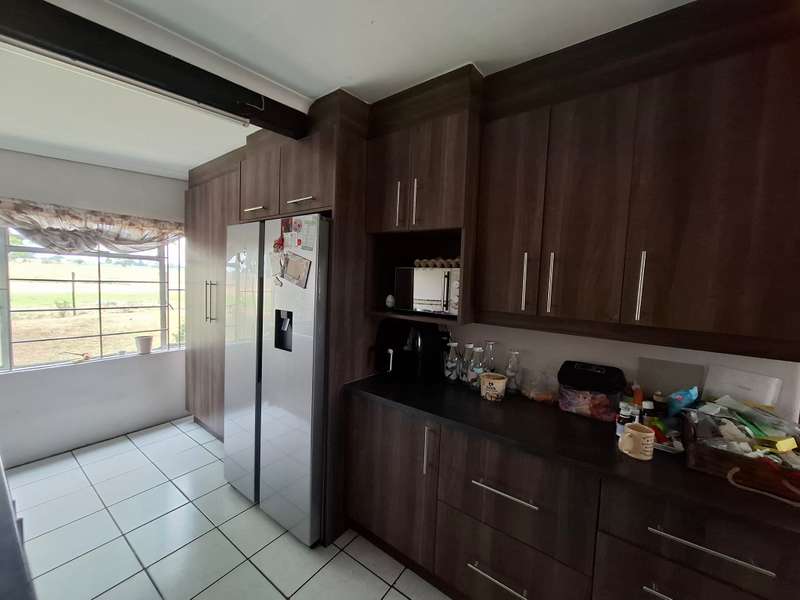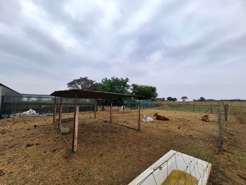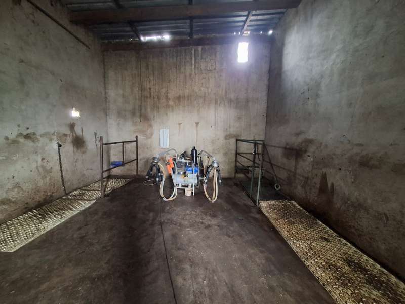 This property is ideal for either a start-up business or a hobbyist! This established property is in the heart of the farming community and has 3 houses and a small running dairy with equipment and stud milking cows included in the sales price. The property has an alarm system, beams, and cameras and is fully fenced. House 1 3 bedrooms, 2 bathrooms, kitchen, lounge, and carport. House 2 The property features 2 bedrooms, 2 bathrooms, a large entertainment area with a built-in braai, an open-plan kitchen and living room, and a double garage with another 1 bedroom flat. This house have a solar system with 10 solar panels, an inverter, and batteries House 3 1 bedroom, bathroom, kitchen, and living room. All three houses have solar geysers and gas stoves. The dairy has a milking room with a mobile milking machine worth R 15 000 and a 400-liter milk storage tank. There are 8 heifers, of which 4 are pregnant, all included in the price. There are 3 boreholes; only one is equipped with tanks. 3-phase Eskom and all 3 houses have their own prepaid meter. About 5000 square meters has been planted with vegetables, and about 4 ha is planted with feed for livestock. That is not all! On the property there is a big ground dam as well. Many outbuildings that can easily be converted into chicken houses and cow enclosures.