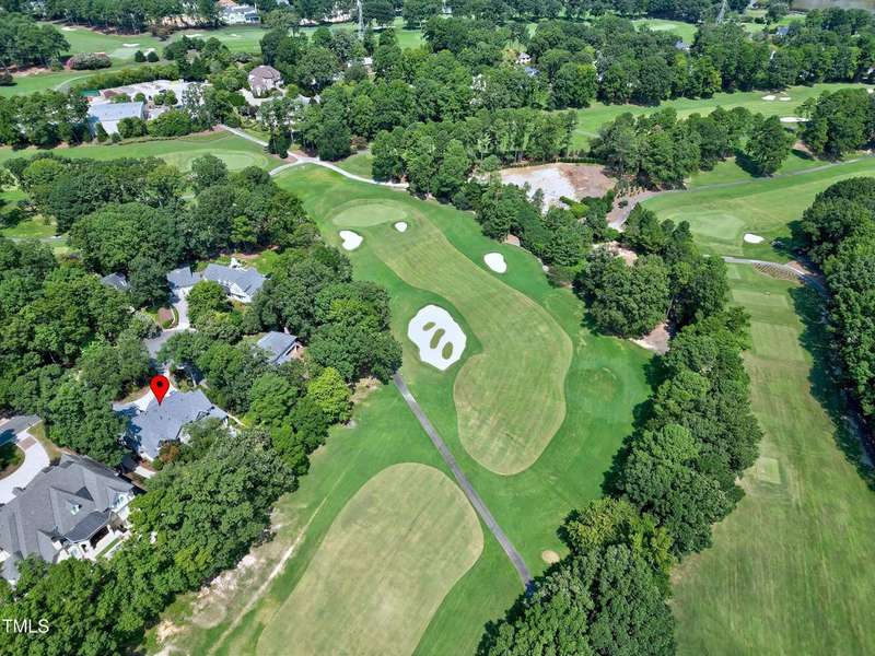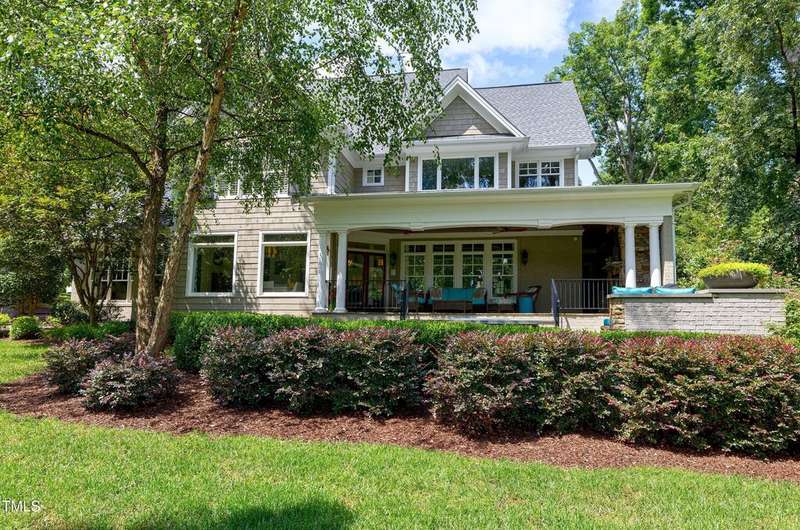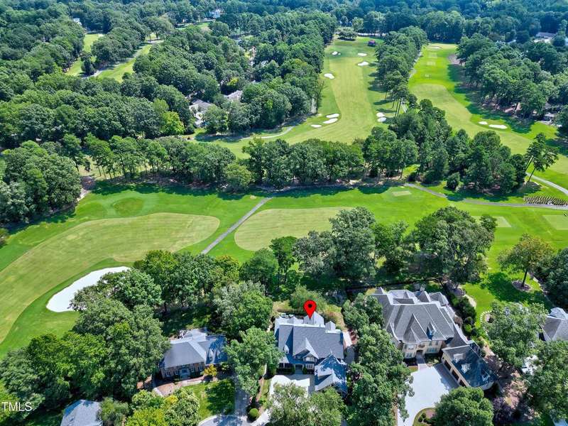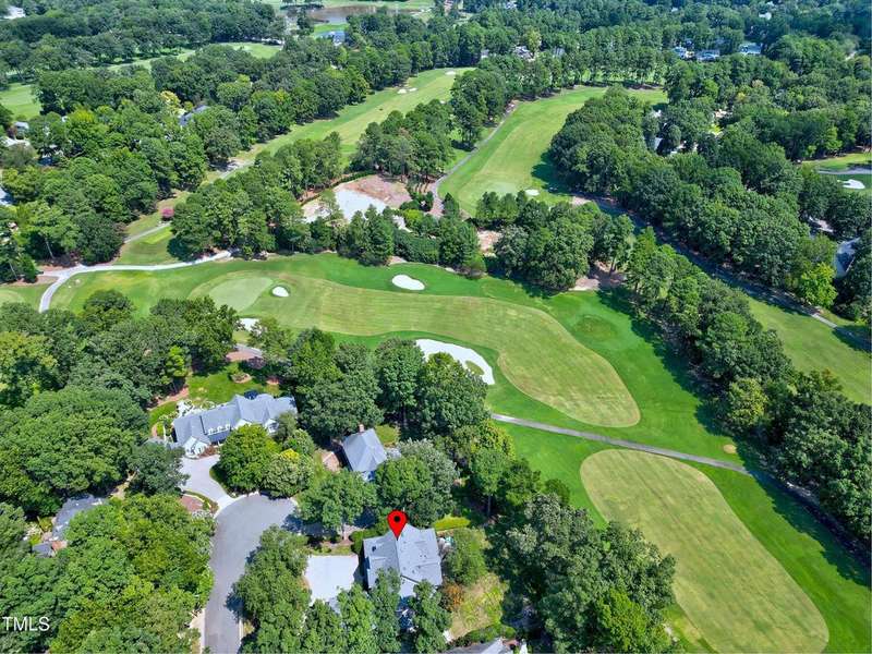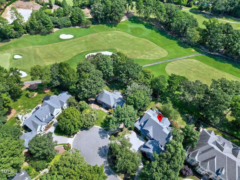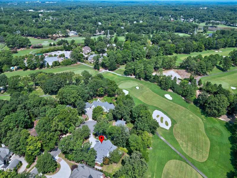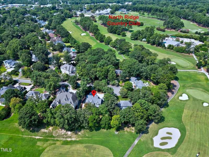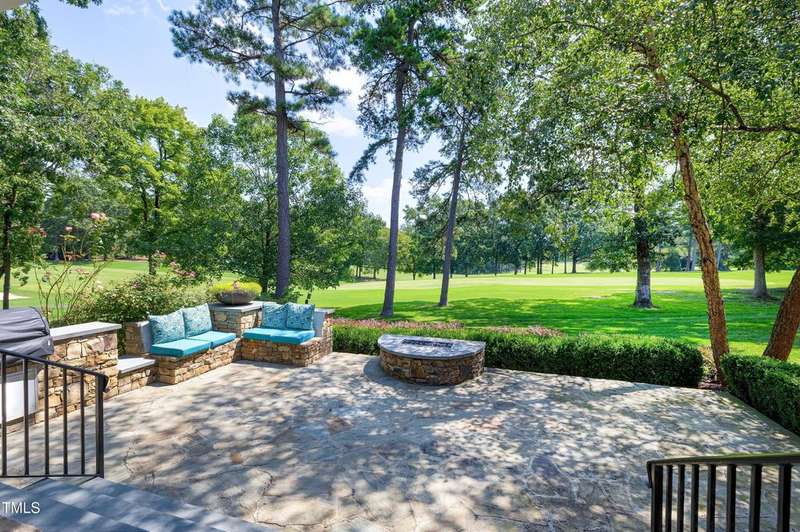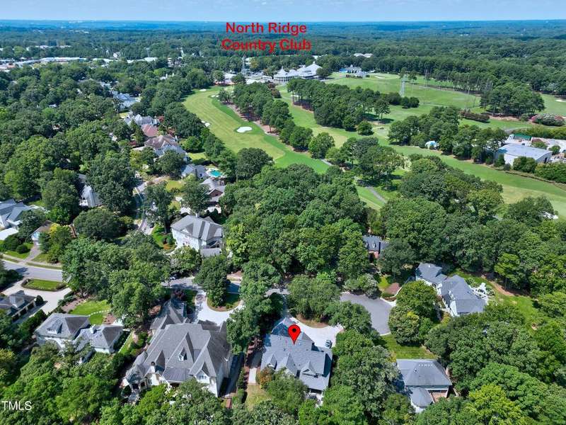 Nestled on a tranquil cul-de-sac lot within Raleigh's prestigious North Ridge Country Club, this magnificent 6300 square foot residence offers an unparalleled golf course community living experience. The updated chef's dream kitchen with Wolf and Subzero appliances adjoins the cozy family room. Imagine waking up from the first floor primary suite to breathtaking panoramic views of the meticulously manicured 17th green and sweeping fairways of the 5th hole. Truly this is a front row seat to championship golf every day. The second floor offers 3 ensuite bedrooms, bonus room and office with fairway views. The 3rd floor has two additional bedrooms, full bath and large bonus space ideal for a gym, golf simulator or guest suite. The covered stone porch and patio with firepit is perfect for sunrise views and watching golfers pass by. You are minutes from the clubhouse, tennis, pools, fitness center and driving range. This isn't just a home, it's a lifestyle crafted for those who appreciate the finer things in life and the beauty of nature.