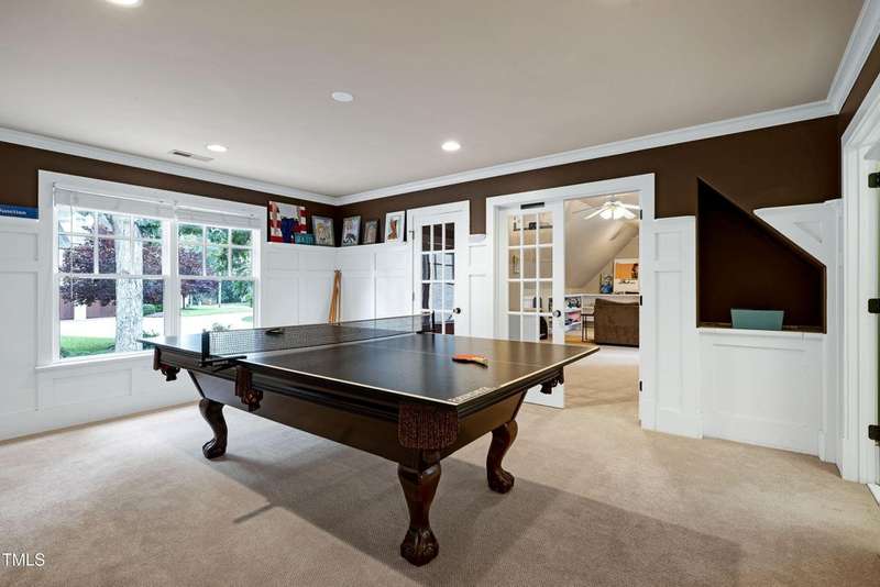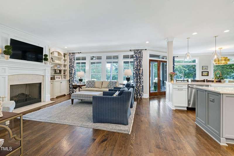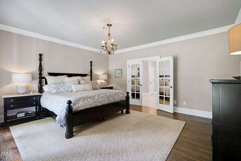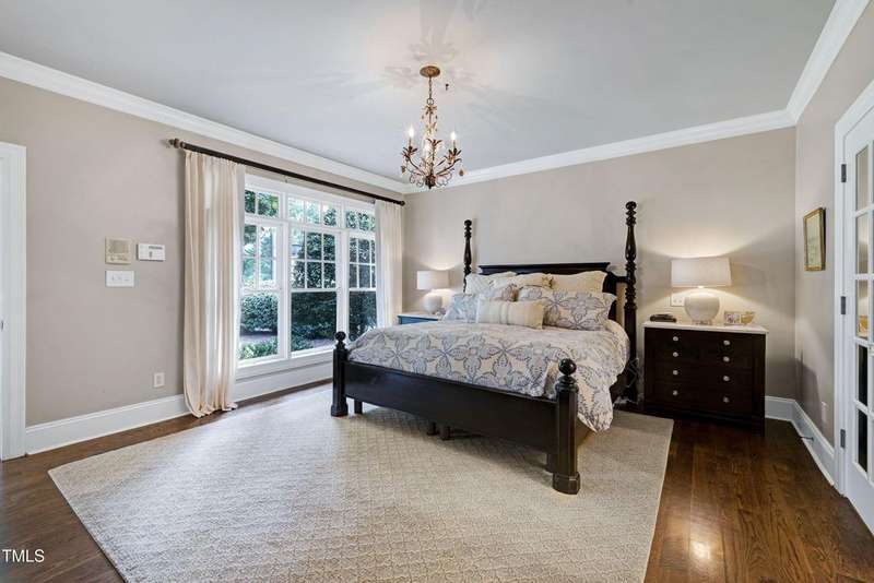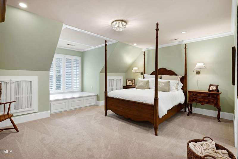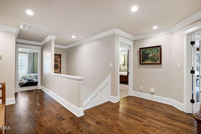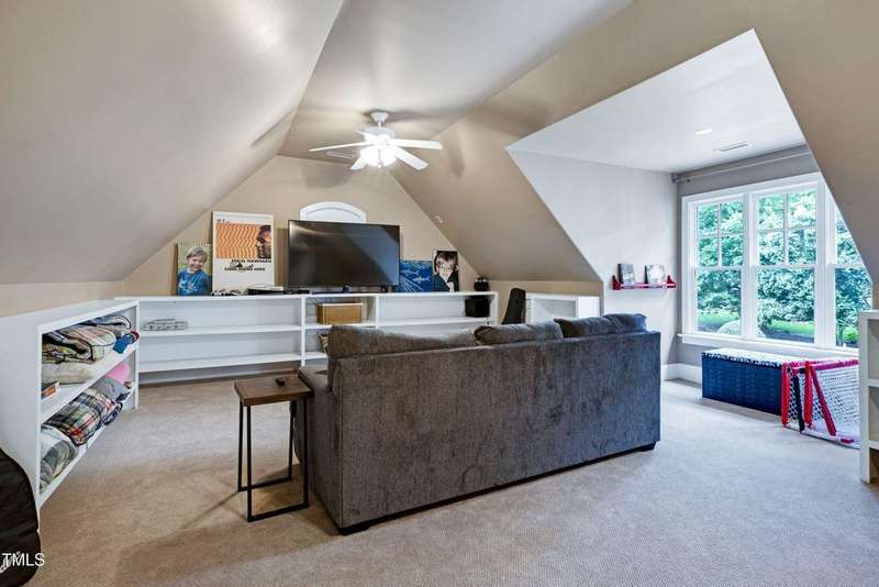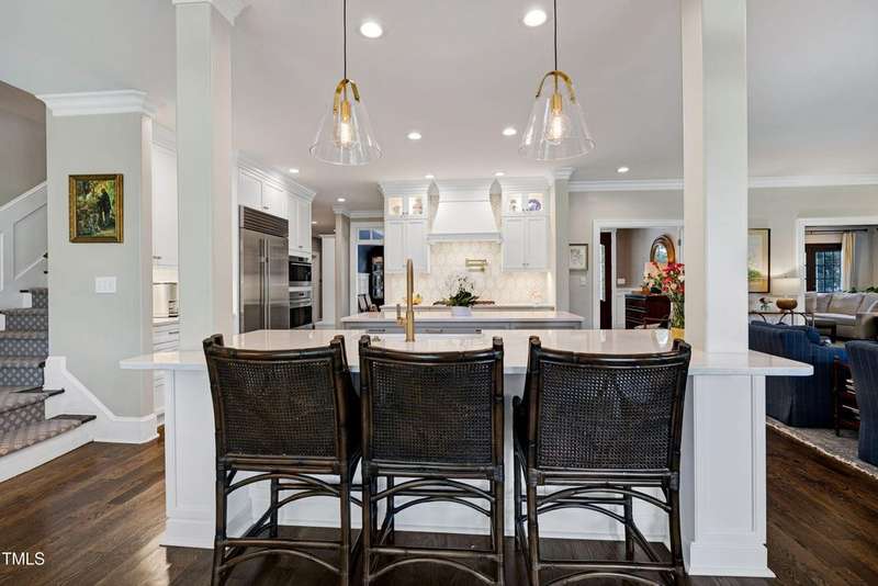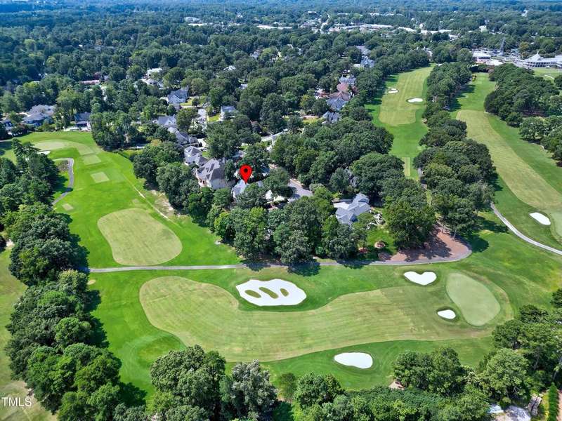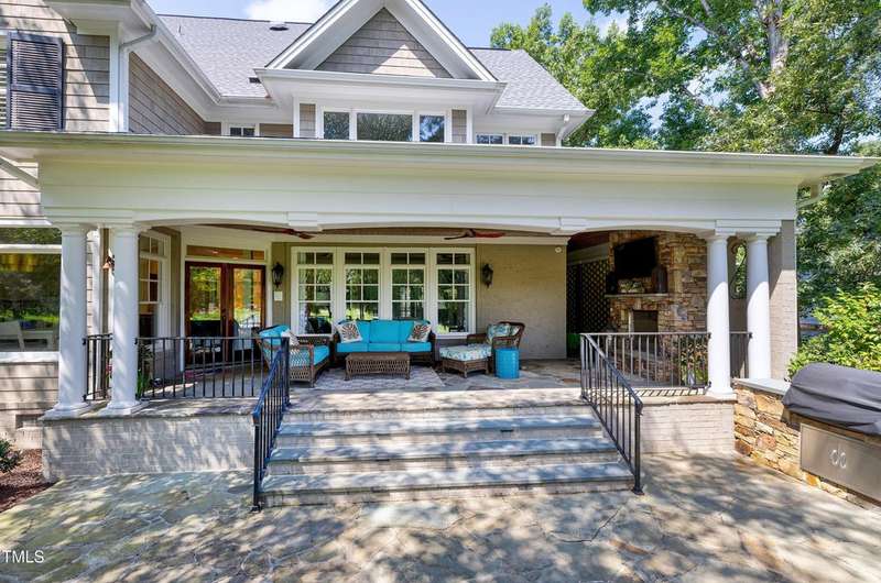 Nestled on a tranquil cul-de-sac lot within Raleigh's prestigious North Ridge Country Club, this magnificent 6300 square foot residence offers an unparalleled golf course community living experience. The updated chef's dream kitchen with Wolf and Subzero appliances adjoins the cozy family room. Imagine waking up from the first floor primary suite to breathtaking panoramic views of the meticulously manicured 17th green and sweeping fairways of the 5th hole. Truly this is a front row seat to championship golf every day. The second floor offers 3 ensuite bedrooms, bonus room and office with fairway views. The 3rd floor has two additional bedrooms, full bath and large bonus space ideal for a gym, golf simulator or guest suite. The covered stone porch and patio with firepit is perfect for sunrise views and watching golfers pass by. You are minutes from the clubhouse, tennis, pools, fitness center and driving range. This isn't just a home, it's a lifestyle crafted for those who appreciate the finer things in life and the beauty of nature.