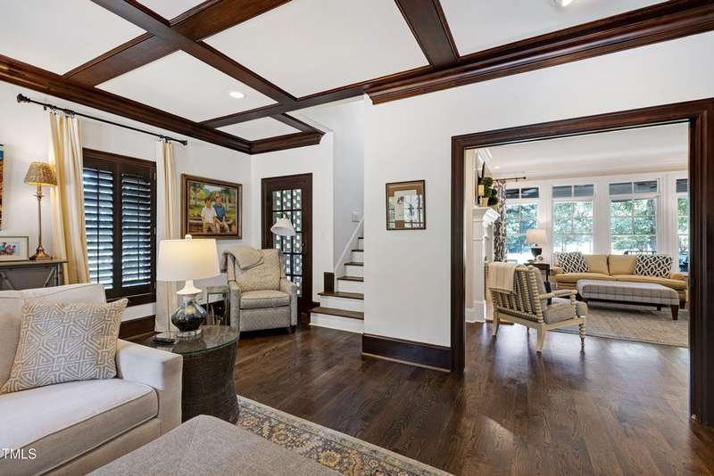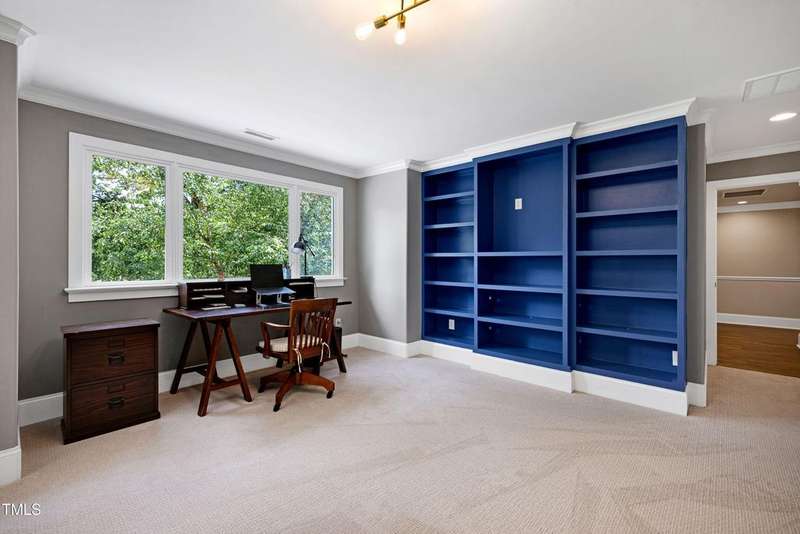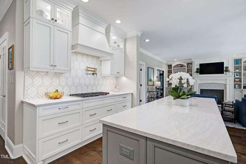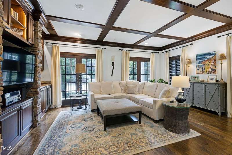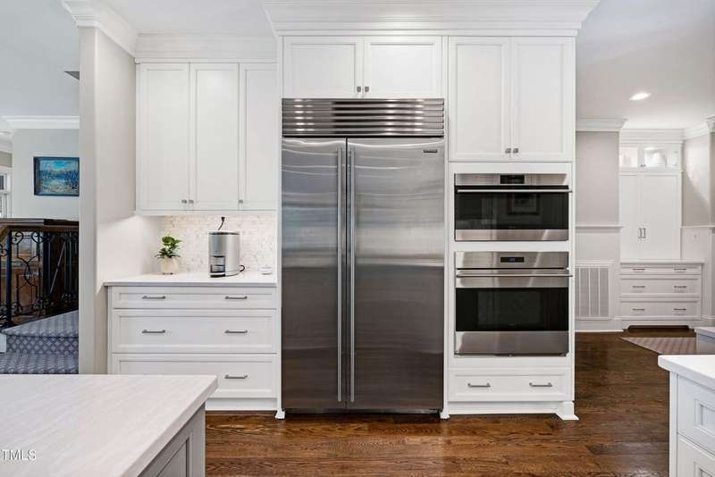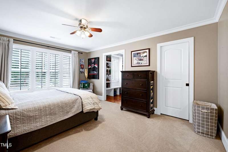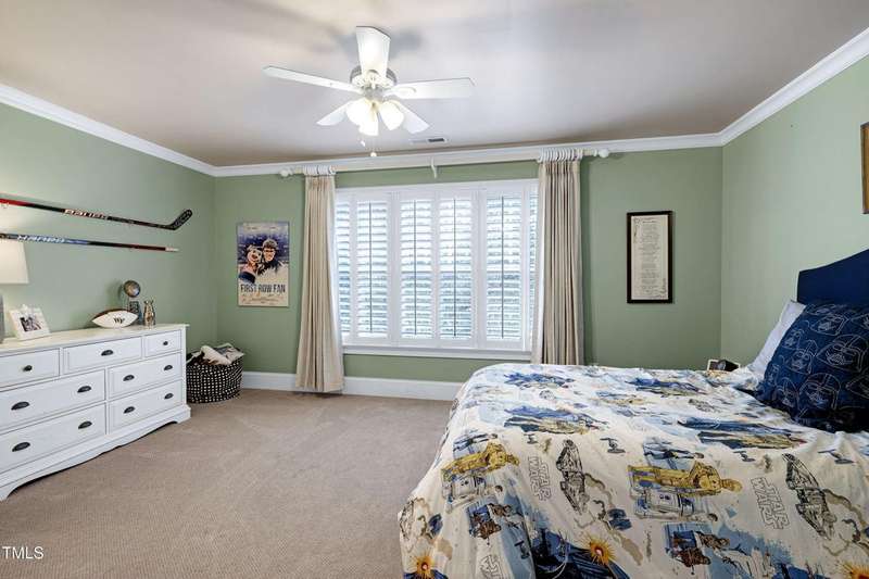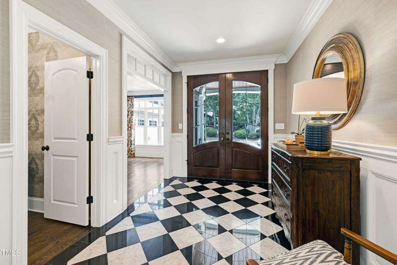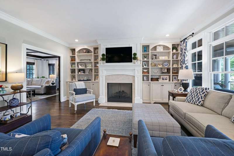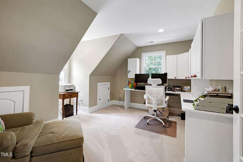 Nestled on a tranquil cul-de-sac lot within Raleigh's prestigious North Ridge Country Club, this magnificent 6300 square foot residence offers an unparalleled golf course community living experience. The updated chef's dream kitchen with Wolf and Subzero appliances adjoins the cozy family room. Imagine waking up from the first floor primary suite to breathtaking panoramic views of the meticulously manicured 17th green and sweeping fairways of the 5th hole. Truly this is a front row seat to championship golf every day. The second floor offers 3 ensuite bedrooms, bonus room and office with fairway views. The 3rd floor has two additional bedrooms, full bath and large bonus space ideal for a gym, golf simulator or guest suite. The covered stone porch and patio with firepit is perfect for sunrise views and watching golfers pass by. You are minutes from the clubhouse, tennis, pools, fitness center and driving range. This isn't just a home, it's a lifestyle crafted for those who appreciate the finer things in life and the beauty of nature.