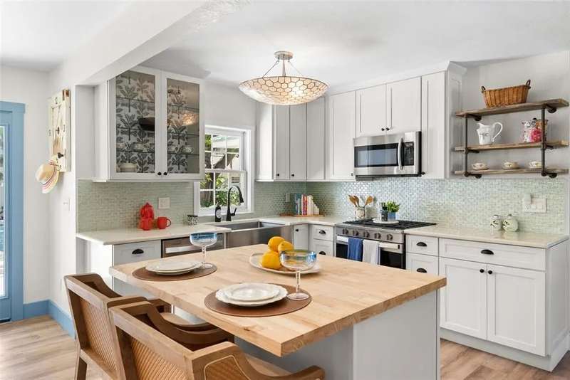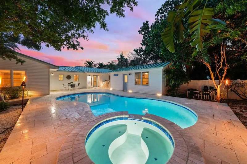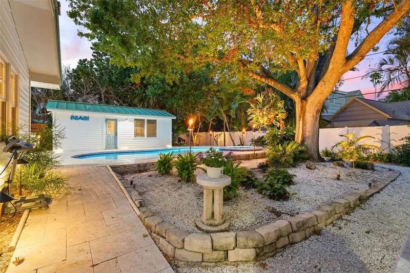 Coastal Luxury Meets Effortless Charm in North Clearwater Beach Welcome to your private beachside oasis! This beautifully renovated Clearwater Beach Bungalow with a detached Guest House, sparkling Pool, oversized Garage, and sprawling fenced yard offers the ultimate in relaxed coastal living. Nestled in the highly sought-after North Clearwater Beach community, you’re just a short stroll or golf cart ride from the powder-soft white sands of Clearwater Beach — consistently ranked the #1 Beach in the USA. Step onto the welcoming front porch and feel the Gulf breeze as you take in golden sunsets and magical twilight skies. Inside, an open-concept floorplan showcases designer coastal finishes, all-new luxury vinyl plank flooring, and a seamless blend of comfort and sophistication. The main home features 3 spacious bedrooms and 2 updated bathrooms, including a serene primary suite with a large walk-in closet, complete with smart built-ins and convenient outlets. The heart of the home — a stunning chef’s kitchen — boasts quartz countertops, shaker cabinetry, a coffee or wine bar nook, and a counter-depth refrigerator, all with gorgeous views of the pool. Step outside to your private tropical escape. The remodeled pool and spa shine as the centerpiece of the backyard, complete with in-floor cleaning system, gas heater, and new equipment. Entertain with ease on the travertine lanai, grill at your built-in Coyote BBQ station, and enjoy ambient landscape lighting that sets the mood for unforgettable evenings. Need space for visitors or extended family? The detached Guest House offers a private retreat with its own kitchen and bath — perfect for long-term guests or rental potential. Storage and parking are a dream with an oversized 2-car garage, plenty of room for a golf cart, beach toys, and tools, plus a long driveway that fits four more vehicles with ease. Additional highlights: Privacy fence surrounding the property In-house laundry Lush, low-maintenance landscaping Short walk to beachside shops, restaurants, the Clearwater Beach Rec Center, and boat ramp This is more than a home — it’s a lifestyle. Whether you're looking for a full-time residence, vacation home, or investment opportunity, this one-of-a-kind beach compound offers it all. Live the dream. Love the beach. Welcome home.