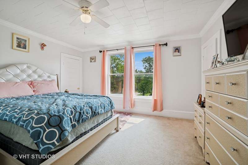 Step into timeless elegance with this charming and thoughtfully updated 2-story home, originally built in 1910 and brimming with character! From the moment you arrive, the inviting wrap-around porch sets the stage for warm welcomes and quiet mornings with coffee in hand. Inside, you'll find 4 spacious bedrooms, 3 full bathrooms, and a full finished basement offering additional living space, perfect for a playroom, media area, or home gym. Soaring high ceilings and modern updates throughout create a perfect blend of old-world craftsmanship and contemporary comfort. Whether you're hosting guests or enjoying cozy nights in, this home offers both beauty and function in every room. Situated on a picturesque corner lot, you'll enjoy added privacy, great natural light, and charming curb appeal. It's a rare opportunity to own a historic gem that's completely move-in ready-all the charm of yesterday with the upgrades of today. This one is a must-see!