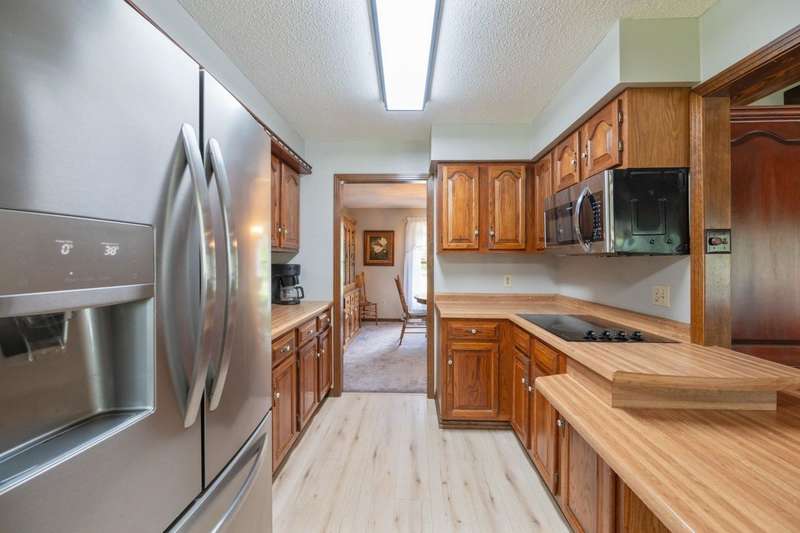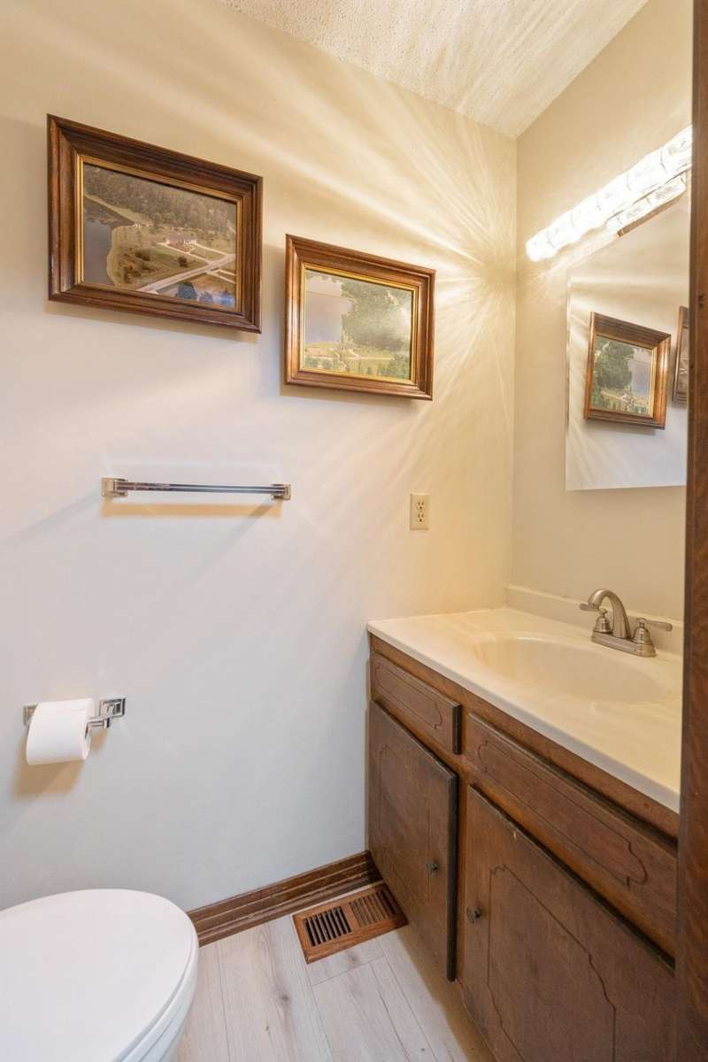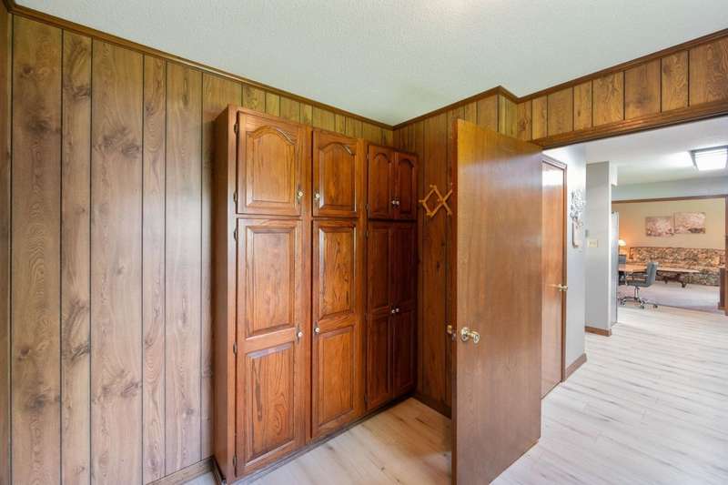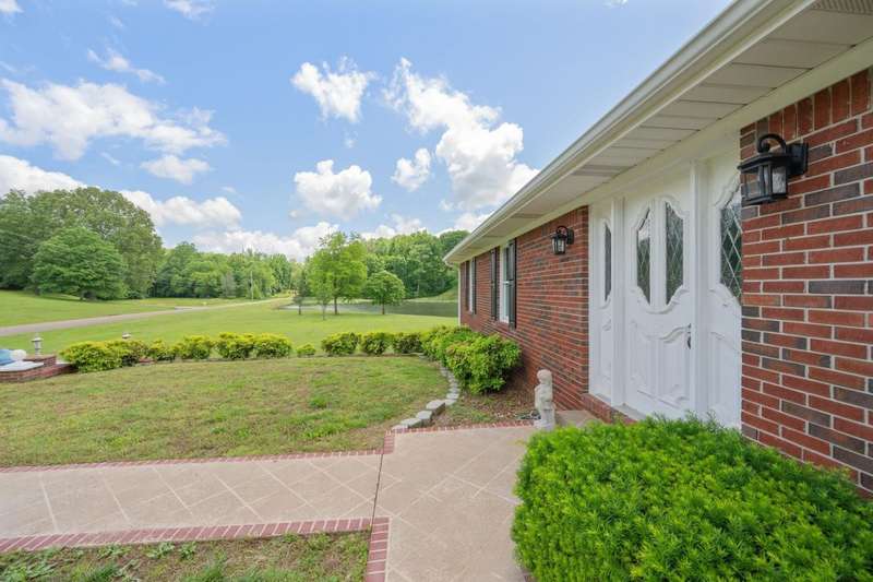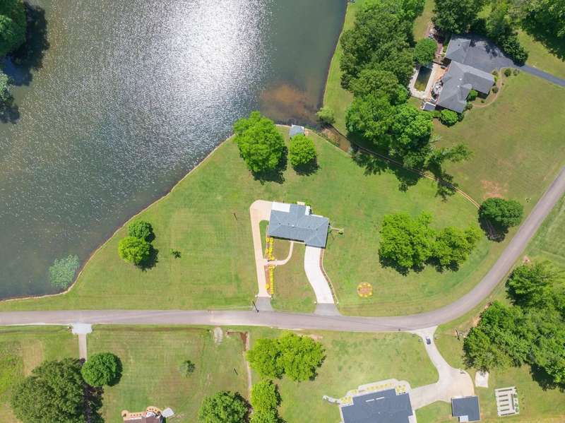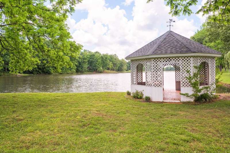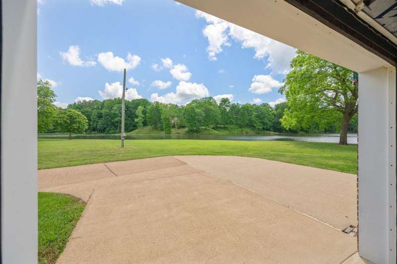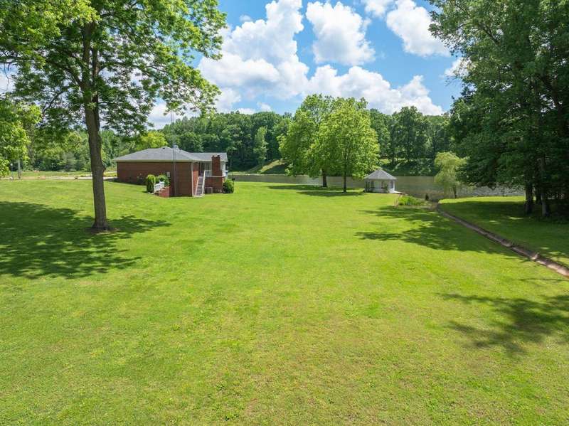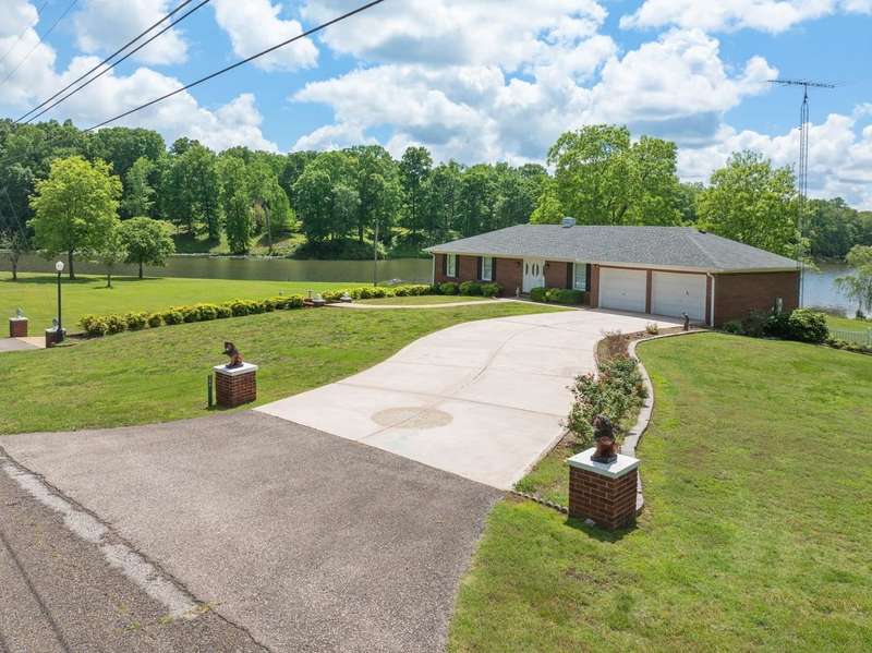 Over 460' Lake Frontage & Custom Home! Located on a park like 2+ acre lot in the desirable Cedar Lake Estates, this home was built by developer/builder & WW2 Veteran Ralph Rogers, & has so many custom touches! Custom concrete designs greet you upon driving into this well manicured/landscaped property. A formal entry w/parquet hardwood flooring leads to the large living area-connected to the sunroom-w/all the water views! Plentiful custom kitchen cabinetry, featuring all appliances, & breakfast bar-adjoins formal dining room. Primary BR adjoins the double vanity BA. 2 additional BRs across the hall. Half BA is near the kitchen & connects to the roomy laundry w/pantry closets. Down the stairs leads to the partially finished basement w/heated den, storm shelter, storage rooms, & workshop. Doors out to 2nd concreted drive & attached RV carport An easy walk down to the water leads to the custom gazebo w/electric & an area to fish. Pecan & pear trees adorn the park like grounds.