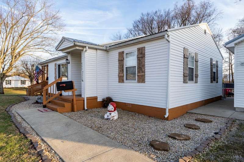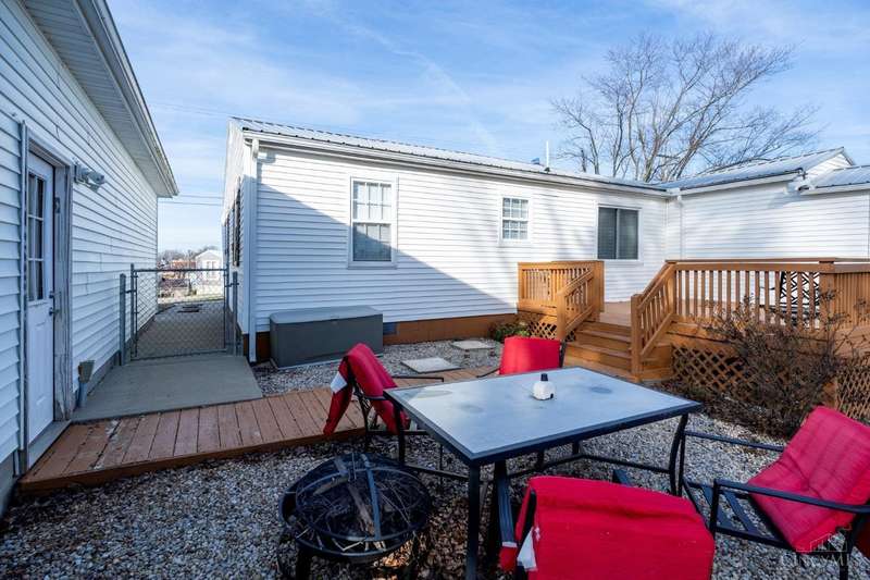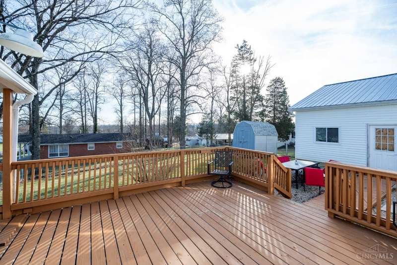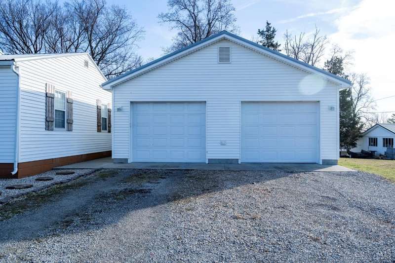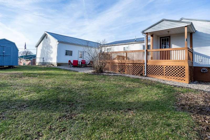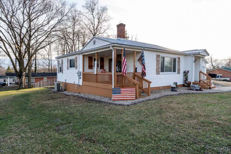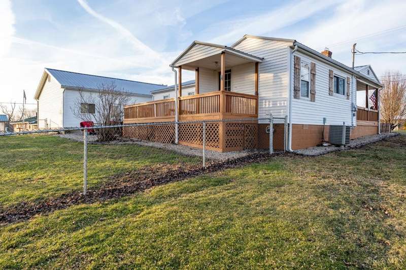 Charming 2-bedroom, 1-bath ranch home with just under 1,300 sq ft of living space, in a great location! This well-maintained home features a spacious living room with a large picture window for natural light, highlighting the cozy fireplace with all natural hardwood floors leading into the dining room. The kitchen features ample cabinetry and walkout to the laundry room with access to the back deck. Down the hall you'll find the full bath and primary and secondary bedroom. Outside, enjoy the fenced in backyard (perfect for pets) and shed for additional storage. A 36x28, 2-car detached, oversized garage (fits 4 cars and motorcycle) with concrete floors, electric, 3 access points and overhead storage is located to the right of the home. This property is conveniently located just a few miles from Adams Lake in the heart of West Union, Ohio with close proximity to all amenities. Must See!