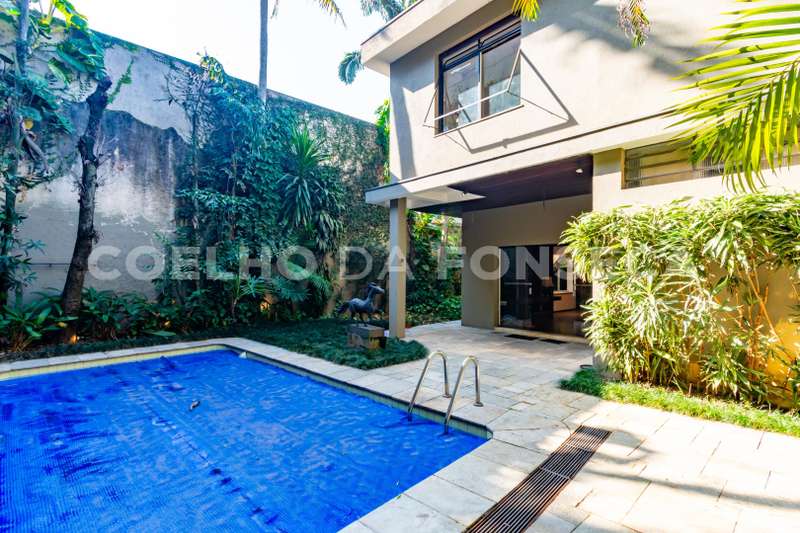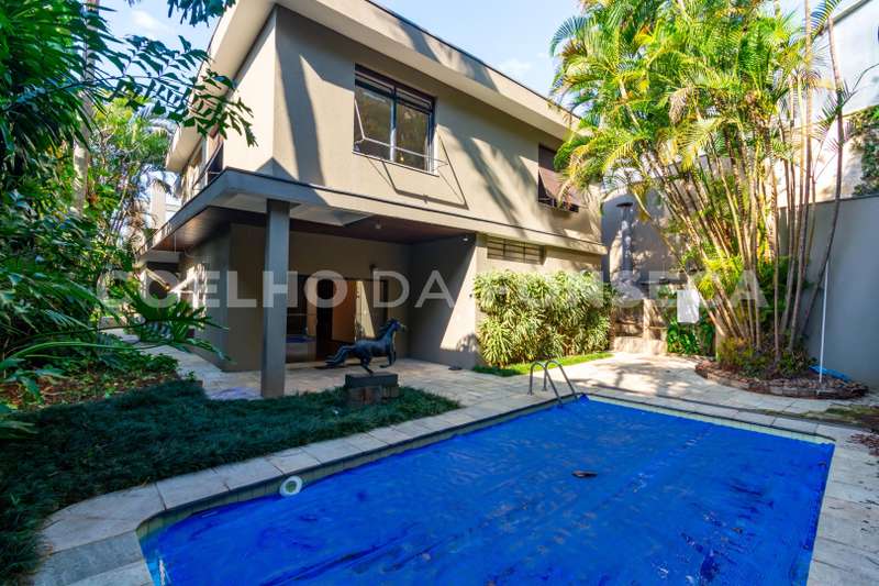 Casa em Rua Fechada no bairro Pacaembu com 450m² área construída, 4 dormitório(s), 2 suíte(s), 4 vaga(s), 5 banheiro(s), piscina, escritório, rua sem saída, dep. de empregados, varanda, pé direito duplo.
