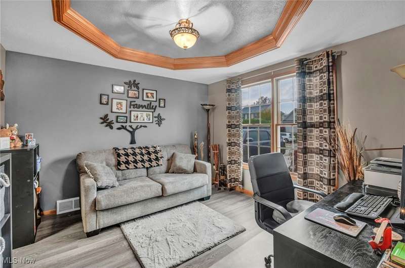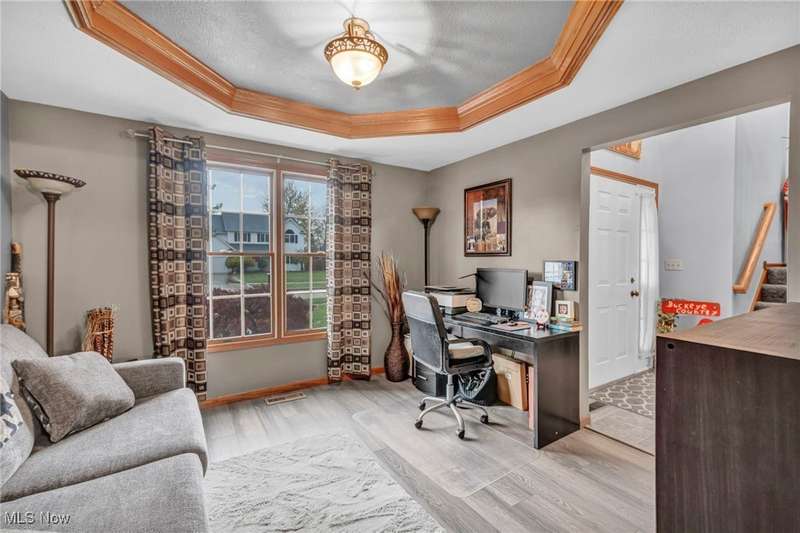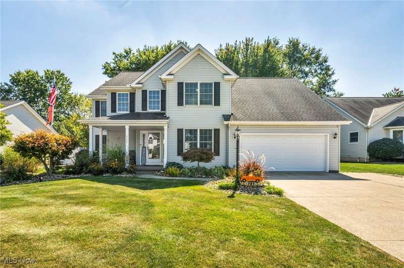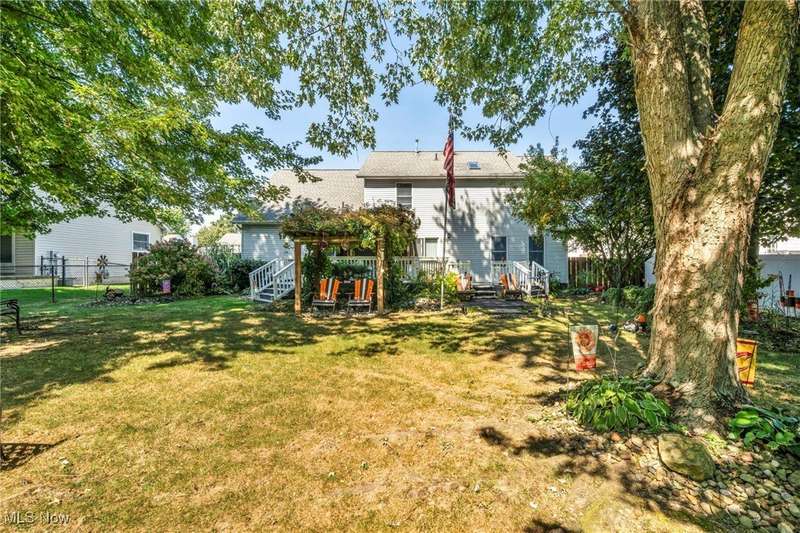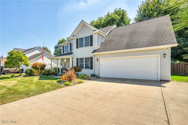 Welcome home to this lovingly maintained 4-bedroom, 2.5-bath colonial in one very desirable non HOA communities, complete with a neighborhood park. This original owner home offers a perfect blend of charm, comfort, and outdoor living on a beautifully landscaped lot. Step inside to a spacious open foyer leading to a warm and inviting living room with a cozy fireplace. The large kitchen features granite countertops, newer appliances, a peninsula with seating, and an adjoining eat-in area overlooking the backyard. The dining room, currently used as a home office, showcases elegant tray ceilings. Upstairs, the expansive primary suite offers a relaxing retreat with vaulted ceilings, an electric fireplace, a walk-in closet, and a large en suite bath featuring a soaking tub, separate shower, and a skylight. Three additional bedrooms and a second full bath complete the upper level. The finished lower level provides extra living space ideal for a recreation room, gym, or media area. Enjoy the convenience of first-floor laundry with direct walk-out access to the backyard. Outside, the property truly shines; offering a covered front porch, a spacious deck with a gazebo, a covered pergola in the yard, perfect for entertaining or unwinding. Additional features include hammock posts, a flagpole, and a 16x10 shed for extra storage. The three-car garage with tandem parking provides ample space for vehicles and hobbies. This home has it all!