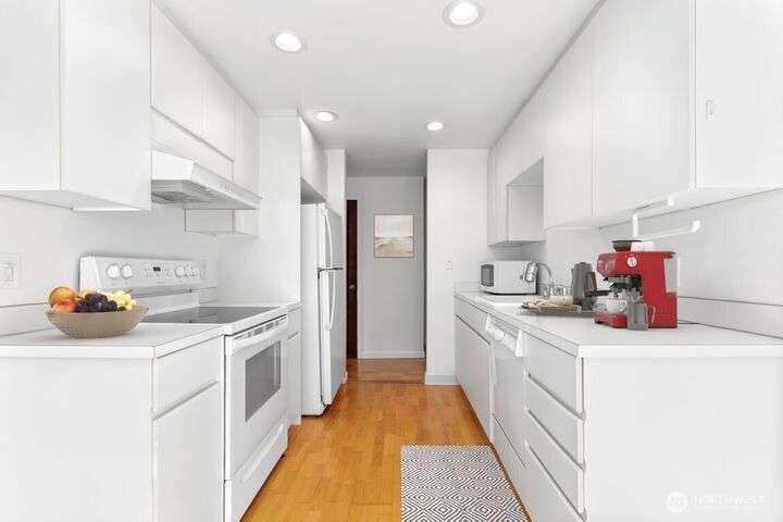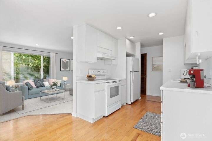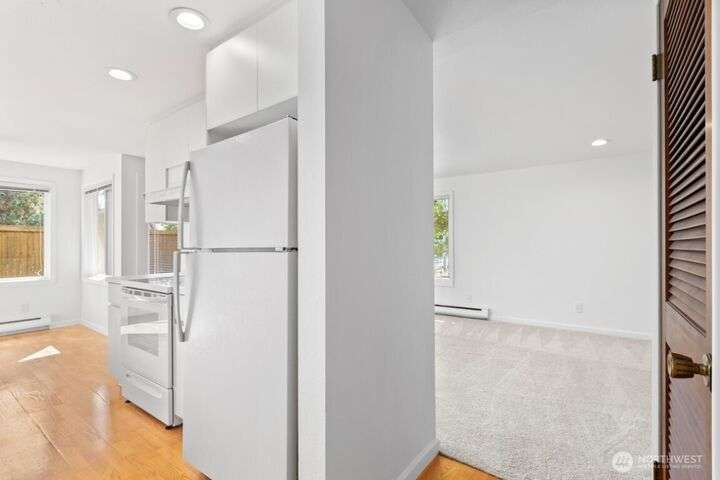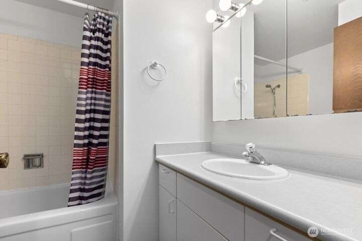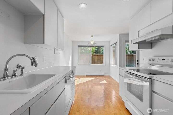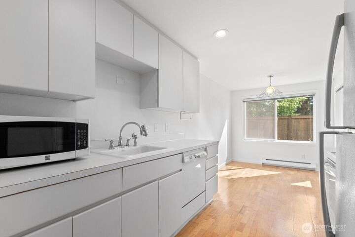 Available Oct 9th! 2 bed/2 bath condo in the Sand Point neighborhood. Light & bright corner unit with covered patio & outdoor space. The layout is designed with living room, kitchen, & dining area on one side & bathrooms/bedrooms on the other, separated by a hallway. Primary suite with walk-in closet. Controlled entry & garage parking + storage space included. Water/sewer/garbage included. The building has gone through renovations, newer roof, windows, siding, & decks. HOA amenities include pool, cabana, bike storage, sauna, & exercise room. Next to the Burke Gilman, Children’s, U-Village & light rail. Magnusson Park across the street. Laundry on-site. 1 dog or cat only, 40lbs or less with an add $500 pet deposit. Sorry no dangerous breeds.