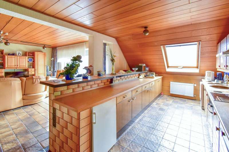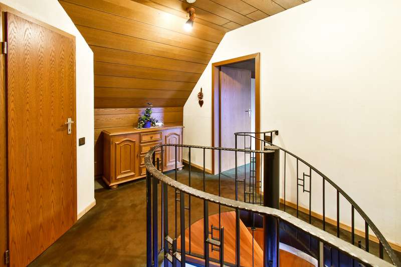 This solidly built two-family house from 1980 - with a secure rental income of €650/month (warm) from the upper residential unit - offers a wide range of possible uses with a generous living space of approx. 176 m² and a plot area of approx. 303 m². It is the perfect solution for investors, for multi-generational living or for anyone who wants to combine living and working under one roof. The house extends over several levels and impresses with its well thought-out room layout: A total of 6.5 rooms are available, including four bedrooms and two bathrooms. On the first floor, the open-plan living and dining area invites you to spend relaxing evenings by the fireplace. Large windows provide plenty of natural light and an appealing view of the garden area. The kitchen is adjacent and offers plenty of space for cooking evenings together. The space on the first floor is complemented by a full bathroom with bathtub and shower as well as a spacious bedroom. The upper floor is currently rented out and generates a lucrative warm rent of € 650 per month. This unit comprises a spacious living room with an open-plan kitchen, a bedroom and a full bathroom with shower and bathtub, making it a complete and attractive residential unit. The upper floor leads to the attic, which has been converted into usable space with two more bedrooms and a toilet, ideal for growing children, guests or as a separate work area. The additional usable attic space opens up even more flexibility in terms of interior design. In the basement, in addition to the boiler room - with convenient space for washing machines - there is also a toilet, a spacious party cellar and another room that was used as an office in the past (usable space). The basement area therefore significantly extends the usable space of the house and offers potential for parties, hobbies or working from home. The approximately 176 m² of living space is therefore supplemented by the converted usable space in the attic and basement, offering an above-average amount of space. The plot of approx. 303 m² is easy to maintain and offers an optimal size for your own free space without requiring a great deal of maintenance. The building has an energy efficiency rating of "D" and a solid construction that guarantees both lasting value and durability. Up to two underground parking spaces can be purchased as an option, offering convenient parking directly at the house. The quiet yet central location ensures short distances to shopping facilities, schools, nurseries and public transport. This two-family home thus combines comfortable living with a secure capital investment and a variety of possible uses under one roof. Take a look for yourself during a viewing to get an impression of the possibilities that this house has in store for you. We look forward to receiving your inquiry and to advising you personally.