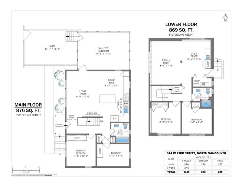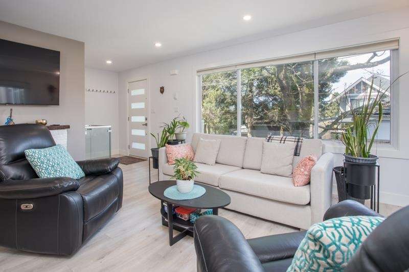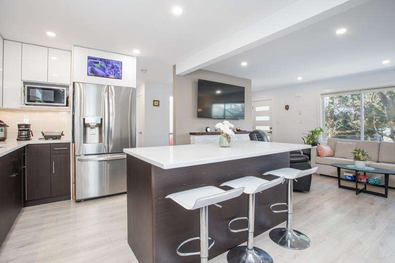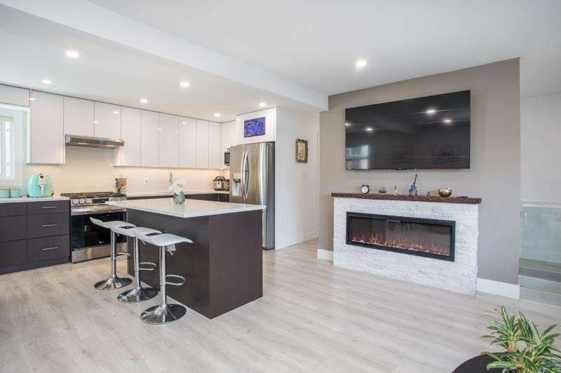 Reimagined in 2022, this home features modern open-concept layout, all-new plumbing (tankless hot water), all new electrical, and baseboard heating. Enjoy stylish laminate flooring, renovated kitchen with flexible island, two full spa-like bathrooms, and a new 30-year roof with leaf guard gutters. New appliances, fixtures, lighting, doors, blinds, paint, and a cozy electric fireplace, and a sleek 276 sq ft sunroom (not included in total square footage). The finished basement has suite-potential. Landscaped yard, private patio, fencing to keep the kids and pets safe, covered carport, and home security system complete this turnkey property! Stroll to new Harry Jerome Rec Centre, Lonsdale shops and cafes. Larson Elementary and Carson Graham Secondary.