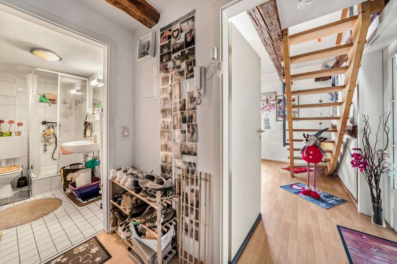 Welcome to your real estate investment We are delighted to offer you this prestigious maisonette apartment for sale in a property built around 1900 and last renovated in 1998. The apartment extends over two and a half rooms, approximately 75 square meters and two floors. There is also a cellar room, a parking space and a shared laundry room. The property is located in one of Sigmaringen's most prestigious streets with many stately and historic buildings. The condition can be described as in need of renovation. The apartment has been occupied by the current tenant for a long time and is therefore particularly suitable as an investment property. The current monthly cold rent is 680 euros and the warm rent is 825 euros. The amount of the house maintenance payment is approximately 208 euros per month, while there are already approximately 6,712 euros in reserves. The gross yield is around 3.9 percent. Upon entering the building, a directly adjacent staircase leads up to the second floor, where the advertised apartment is located. From the hallway, you first enter a small hallway belonging to the apartment, from which you can reach the bathroom and the kitchen with dining area, which is counted as a half-room here. From this room, a door leads to the bedroom and a staircase to the gallery on the top floor, which is currently used as a living room. This layout gives the apartment a unique spatial dynamic. The staircase between the two levels creates an open and light-flooded connection that has a positive effect on the sense of space. The functional bathroom includes a shower cubicle, a washbasin and a WC. The kitchenette offers a cooker/oven combination, a stainless steel sink and a refrigerator, but was already installed in 1998. The location of the property impresses with its excellent public transport connections as well as its proximity to the city center and thus to shopping facilities, cultural institutions and restaurants, which guarantees a stable demand for living space, whether from tenants or future owners. Feel free to contact us and see for yourself the advantages that this apartment has to offer.