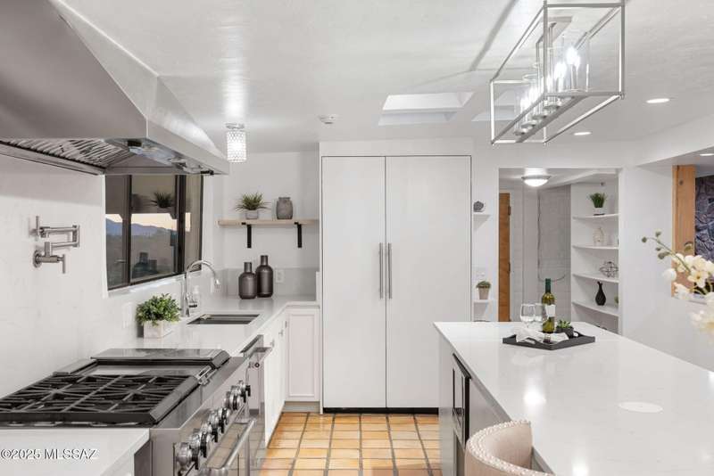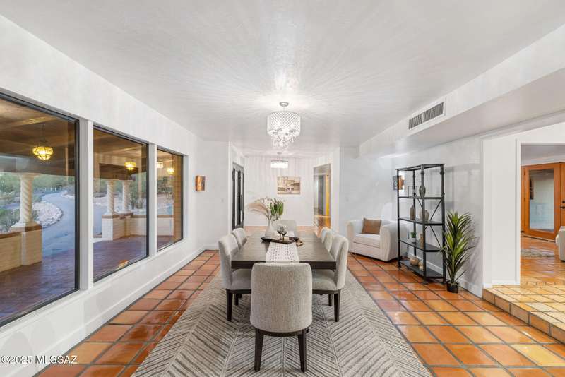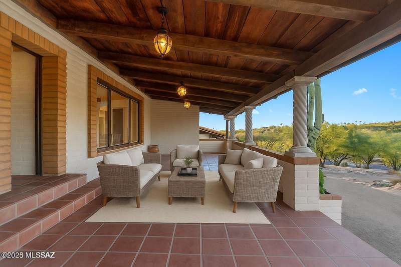In the heart of the Catalina Foothills, this grand territorial estate is the definition of Tucson living at its finest! Positioned on 1.5 acres of pristine rolling desert with commanding views of the Santa Catalina Mountains, the home blends authentic Tucson charm with modern comfort and livablity! Its coveted A+ location, just off the Campbell Corridor, places you moments from La Encantada's world-class shopping, St. Philip's Plaza, La Paloma, and an easy drive to the University of Arizona and downtown's cultural destinations! Curb appeal is simply unmatched! A dramatic portico and elevated entrance and expansive picture windows give the home presence, while the welcoming front porch frames breathtaking mountain vistas. Inside, the design feels both expansive and inviting.