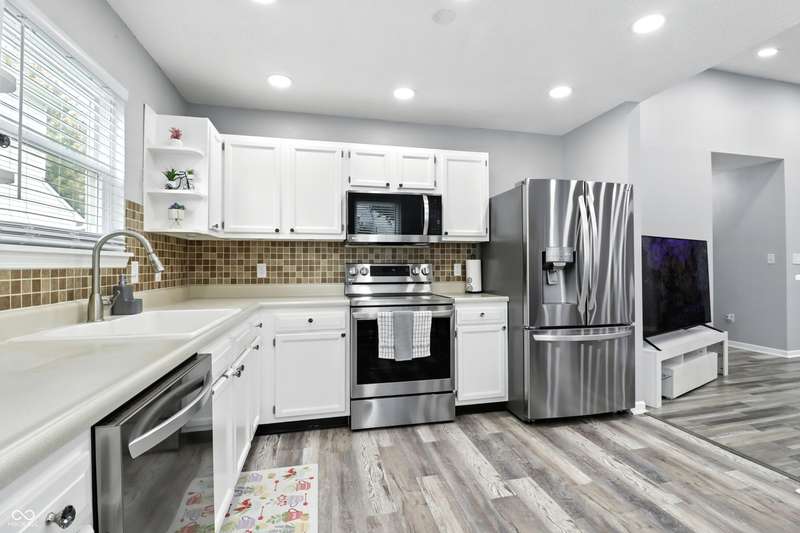 Move right in! This 3-bedroom, 2-bath home in a desirable Noblesville neighborhood is ready for you. The house features a vaulted-ceiling living room that opens to the kitchen, creating a spacious and welcoming feel. Recent 2025 updates include a new roof, new stainless steel kitchen appliances, new washer and dryer, new flooring, fresh paint, and more. The plumbing, electrical, vanities, deck railing, and smoke detectors have also all been updated, making this a truly worry-free home.