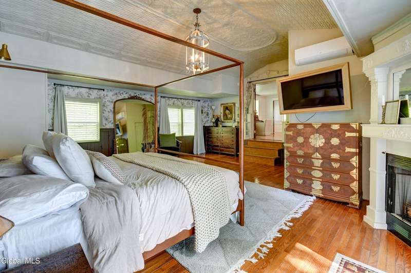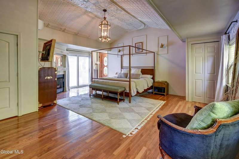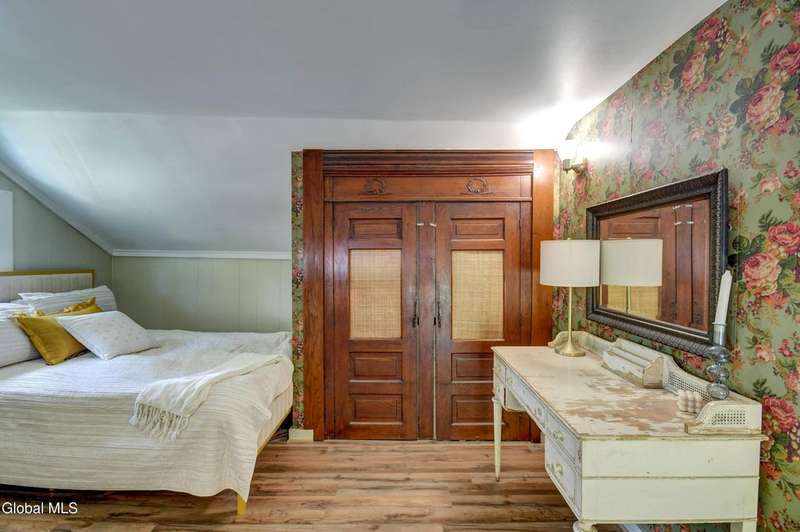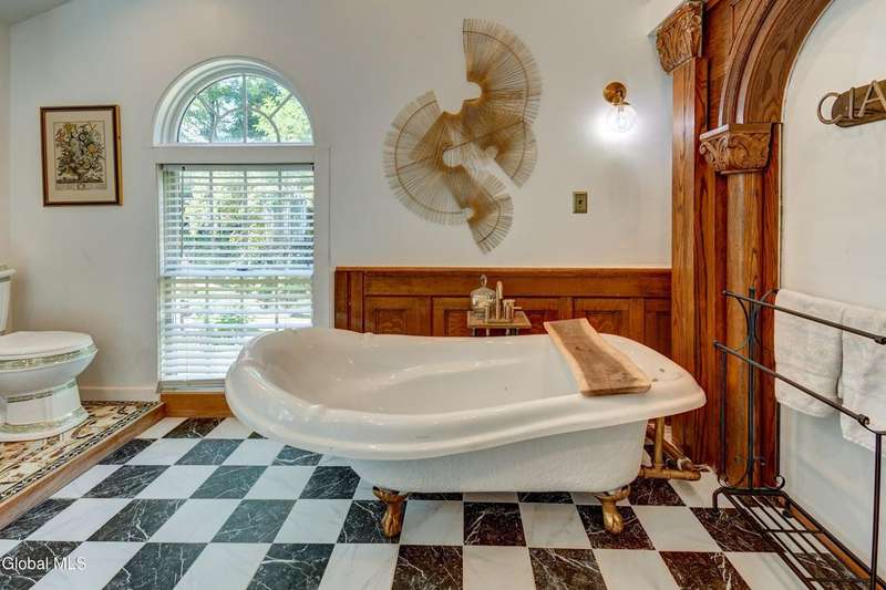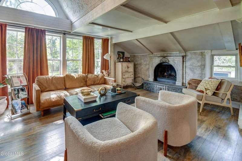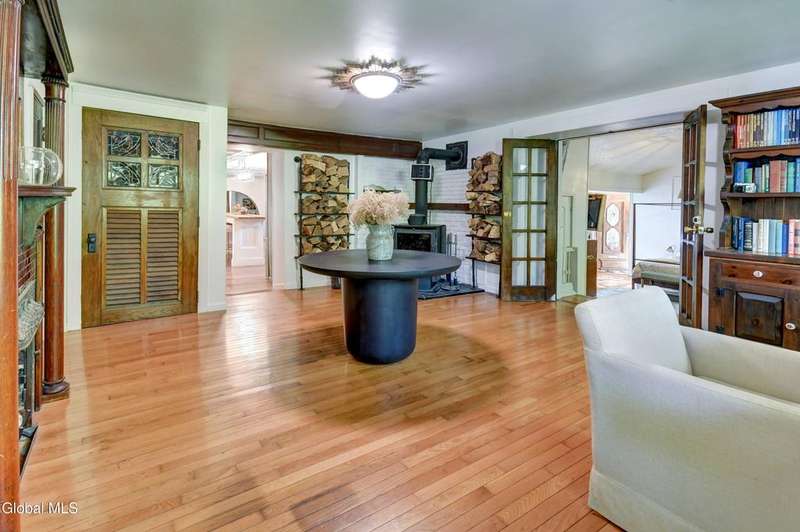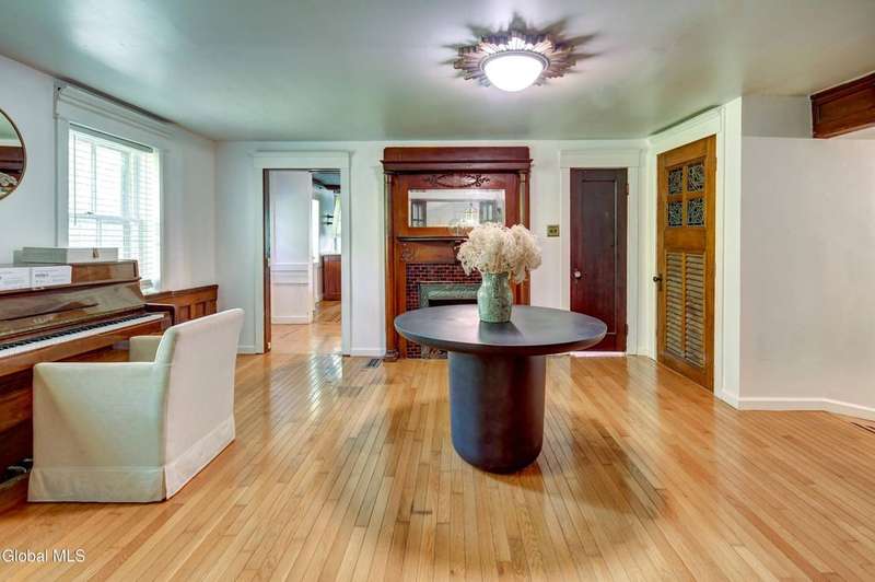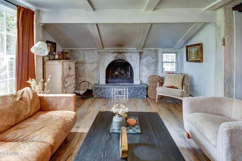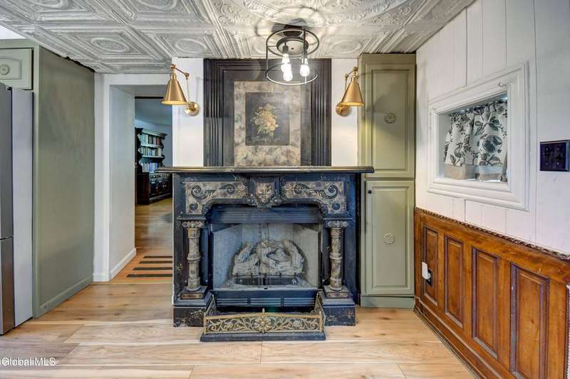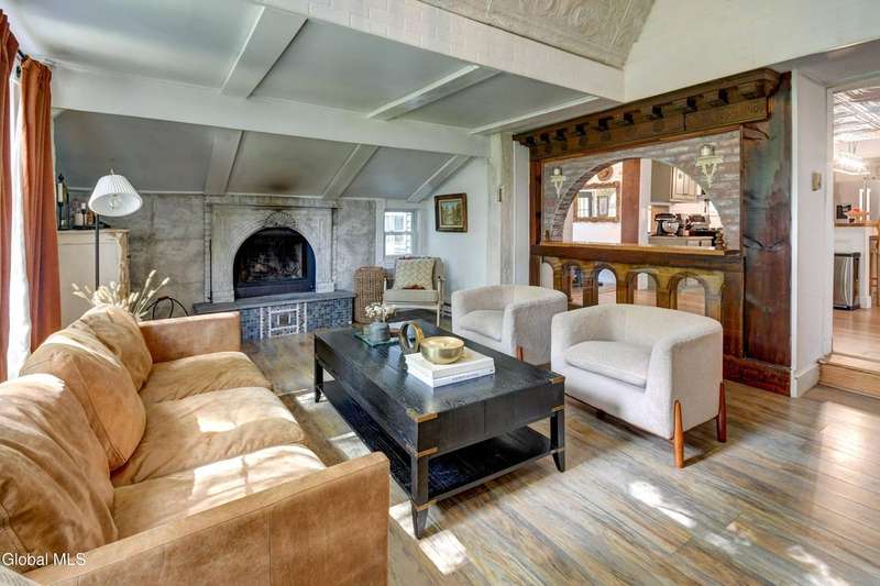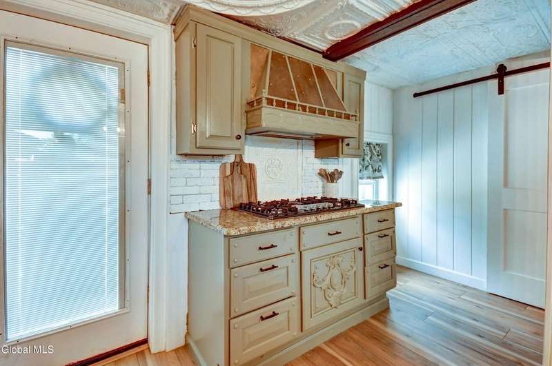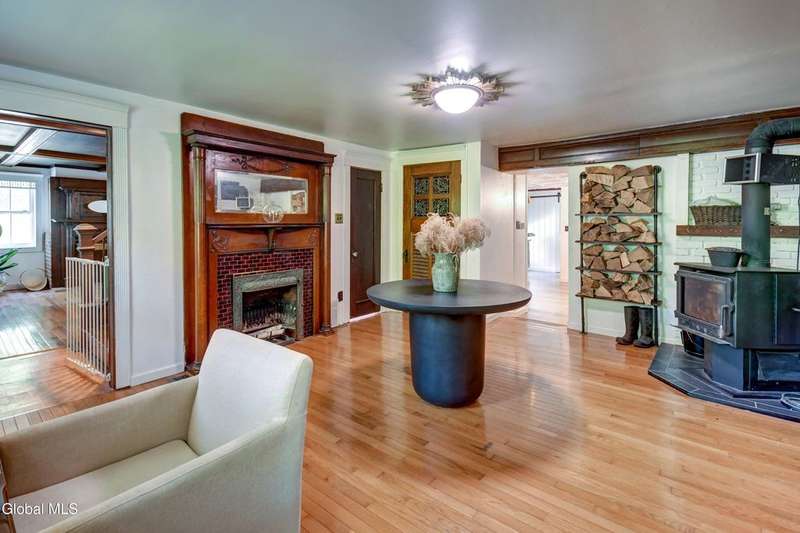 Absolutely stunning 4-bedroom Historic Post & Beam home set on 4 sprawling acres in the Broadalbin-Perth School District?just minutes from the Great Sacandaga Lake! This special property blends vintage character with modern updates, including a new kitchen island crafted from a refurbished 1800's general store counter topped with Hevea Maple butcher block and seating for four, new kitchen flooring, and a walk-in pantry. Cozy up by the wood stove in the library or enjoy the beautiful Primary Suite featuring a large bedroom with propane fireplace and bathroom with custom ceramic tile flooring, ornate built-ins, and incredible charm. Period details shine throughout?oak floors, stained glass windows, exposed brick, wood trim, tin ceilings, and a clawfoot tub. Outdoor living is just as inviting with a back deck, stone patio with fireplace and seating area, plus a 5,000+/- sq ft 2-story barn with loft space and multiple outbuildings perfect for workshops or creative spaces. A truly remarkable property with timeless character and modern comfort!