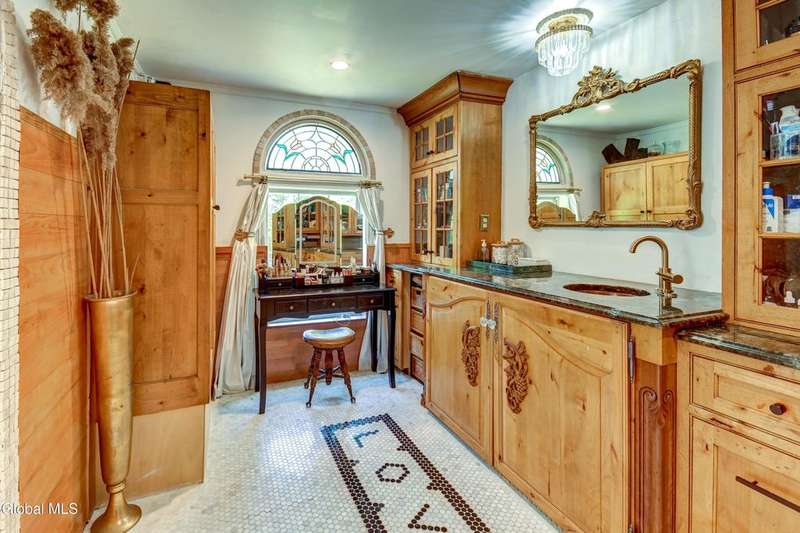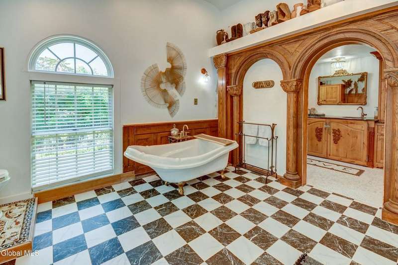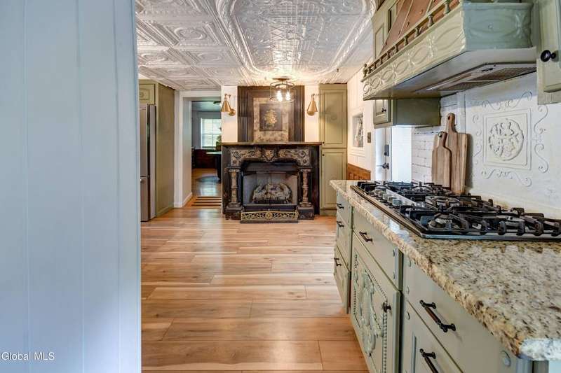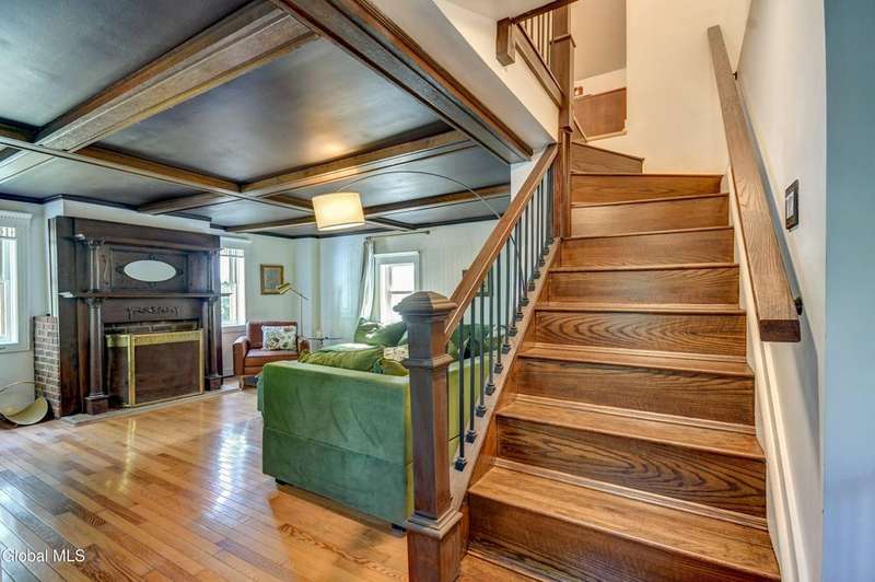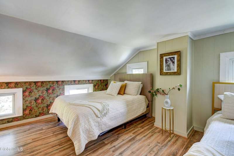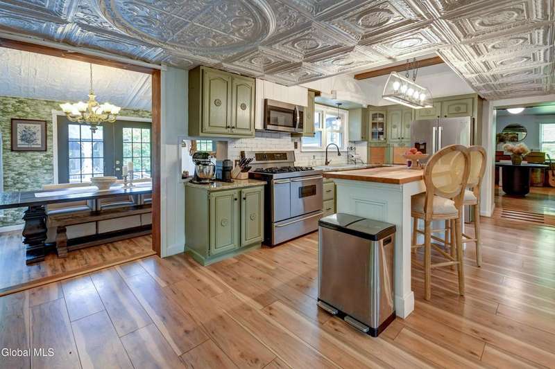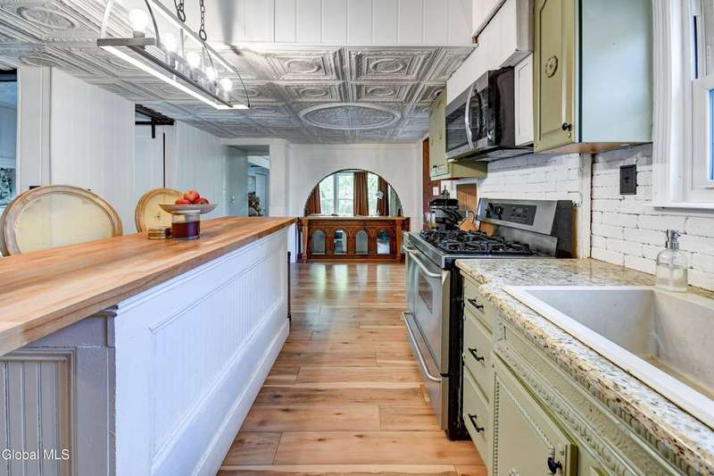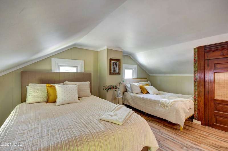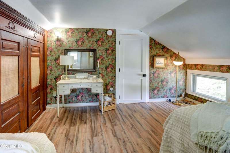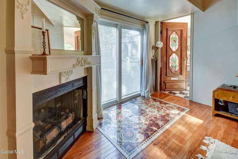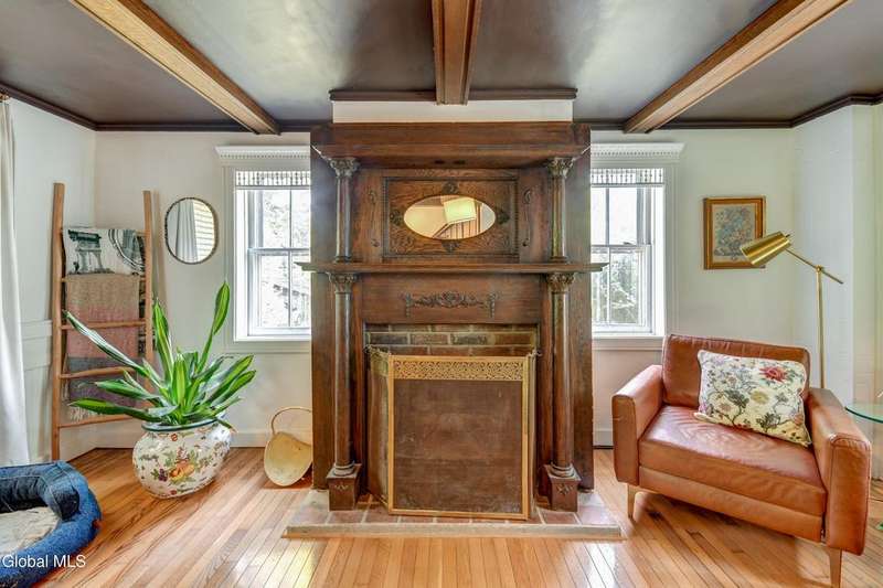 Absolutely stunning 4-bedroom Historic Post & Beam home set on 4 sprawling acres in the Broadalbin-Perth School District?just minutes from the Great Sacandaga Lake! This special property blends vintage character with modern updates, including a new kitchen island crafted from a refurbished 1800's general store counter topped with Hevea Maple butcher block and seating for four, new kitchen flooring, and a walk-in pantry. Cozy up by the wood stove in the library or enjoy the beautiful Primary Suite featuring a large bedroom with propane fireplace and bathroom with custom ceramic tile flooring, ornate built-ins, and incredible charm. Period details shine throughout?oak floors, stained glass windows, exposed brick, wood trim, tin ceilings, and a clawfoot tub. Outdoor living is just as inviting with a back deck, stone patio with fireplace and seating area, plus a 5,000+/- sq ft 2-story barn with loft space and multiple outbuildings perfect for workshops or creative spaces. A truly remarkable property with timeless character and modern comfort!