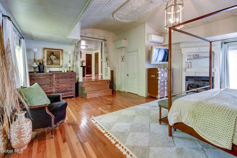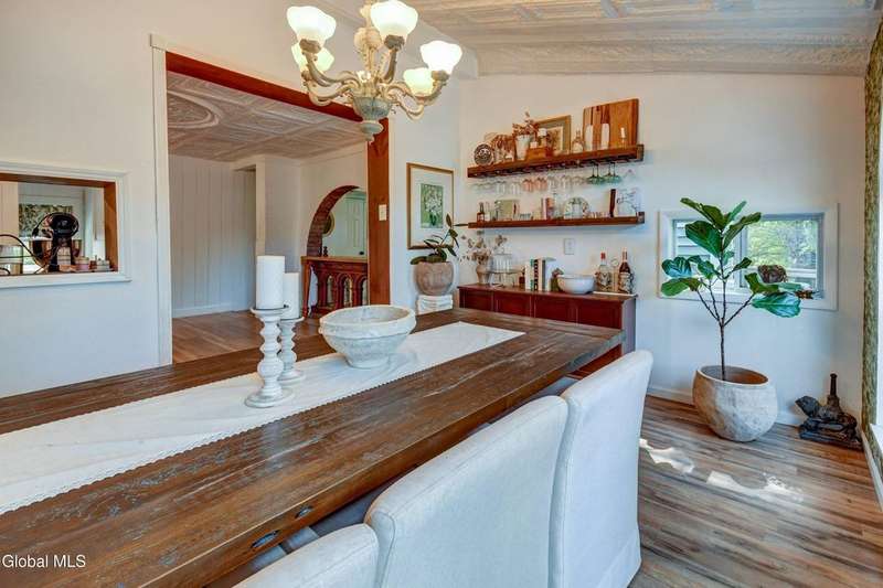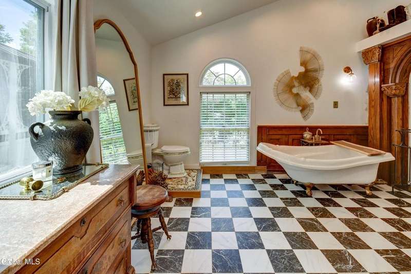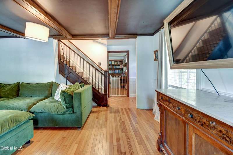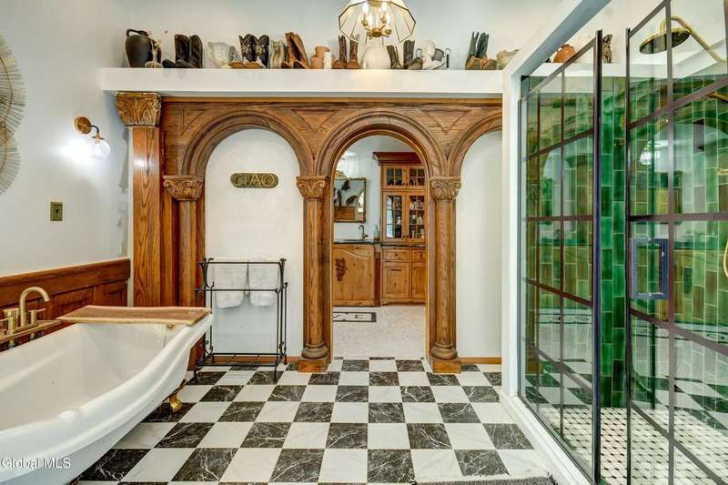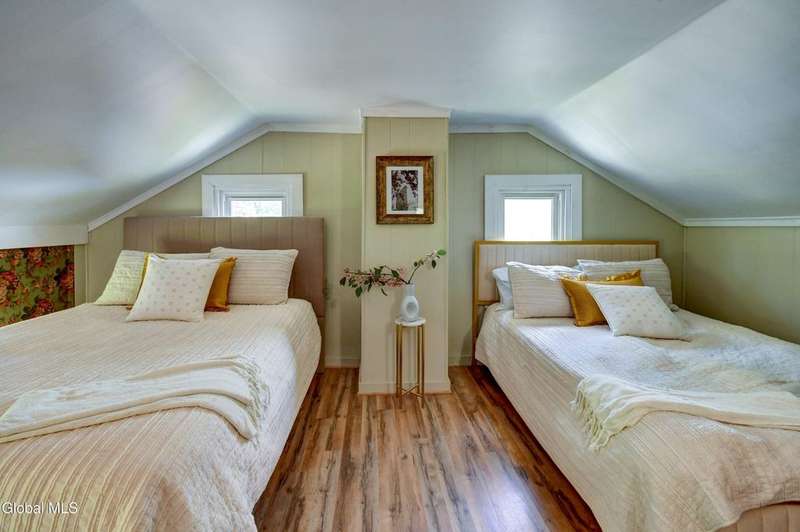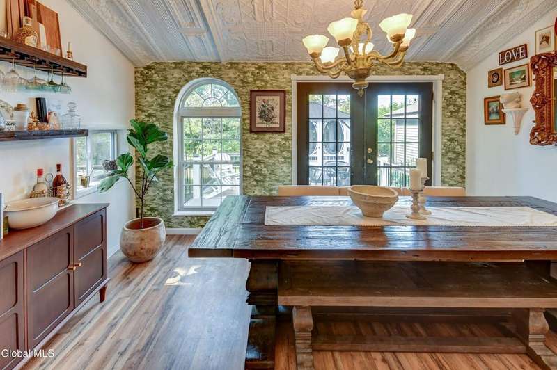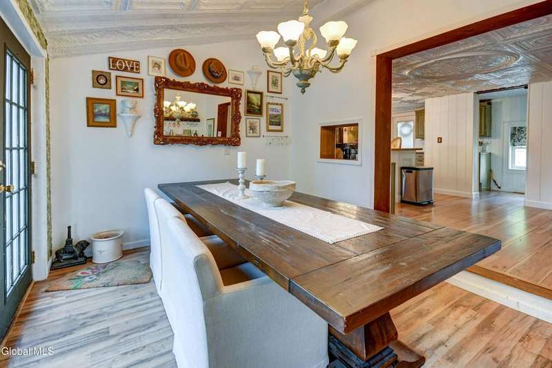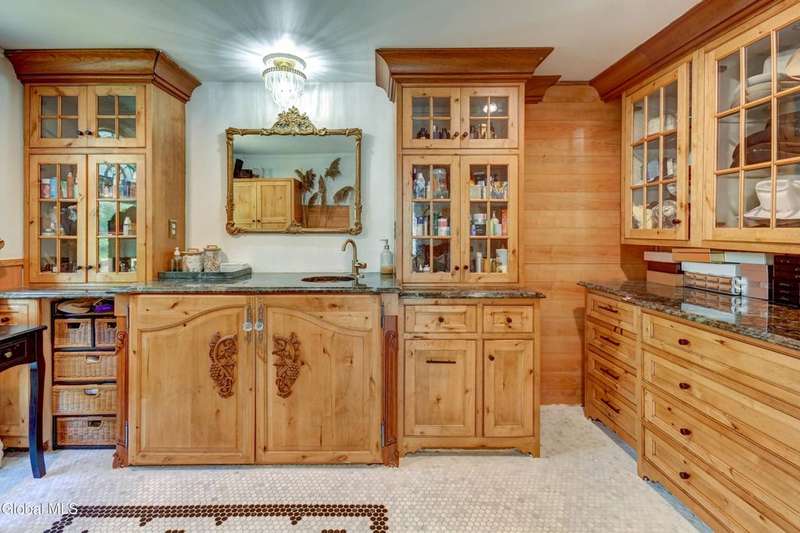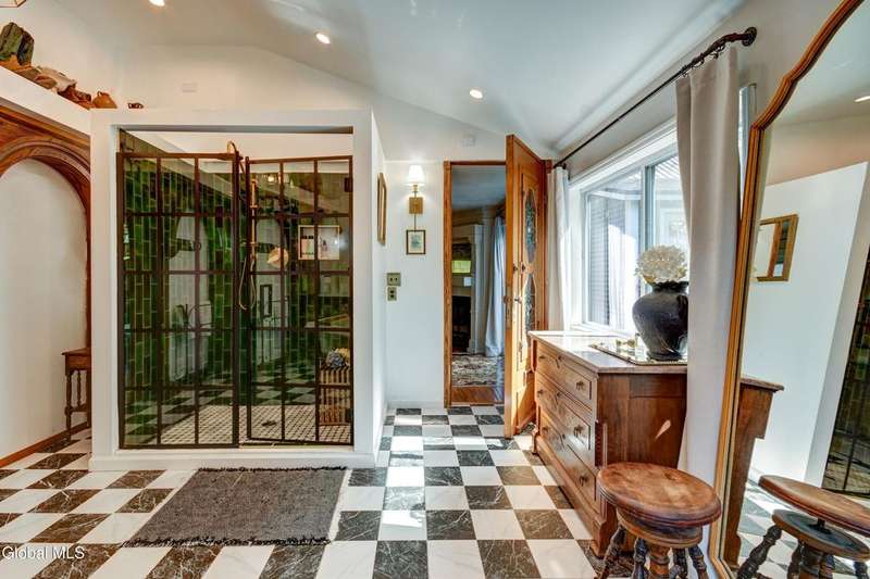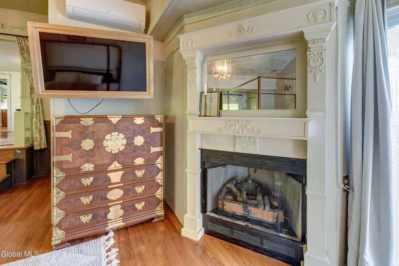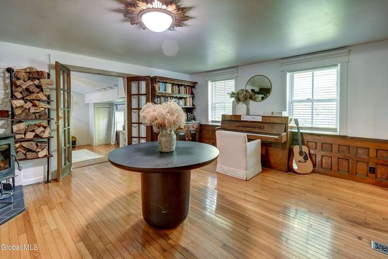 Absolutely stunning 4-bedroom Historic Post & Beam home set on 4 sprawling acres in the Broadalbin-Perth School District?just minutes from the Great Sacandaga Lake! This special property blends vintage character with modern updates, including a new kitchen island crafted from a refurbished 1800's general store counter topped with Hevea Maple butcher block and seating for four, new kitchen flooring, and a walk-in pantry. Cozy up by the wood stove in the library or enjoy the beautiful Primary Suite featuring a large bedroom with propane fireplace and bathroom with custom ceramic tile flooring, ornate built-ins, and incredible charm. Period details shine throughout?oak floors, stained glass windows, exposed brick, wood trim, tin ceilings, and a clawfoot tub. Outdoor living is just as inviting with a back deck, stone patio with fireplace and seating area, plus a 5,000+/- sq ft 2-story barn with loft space and multiple outbuildings perfect for workshops or creative spaces. A truly remarkable property with timeless character and modern comfort!