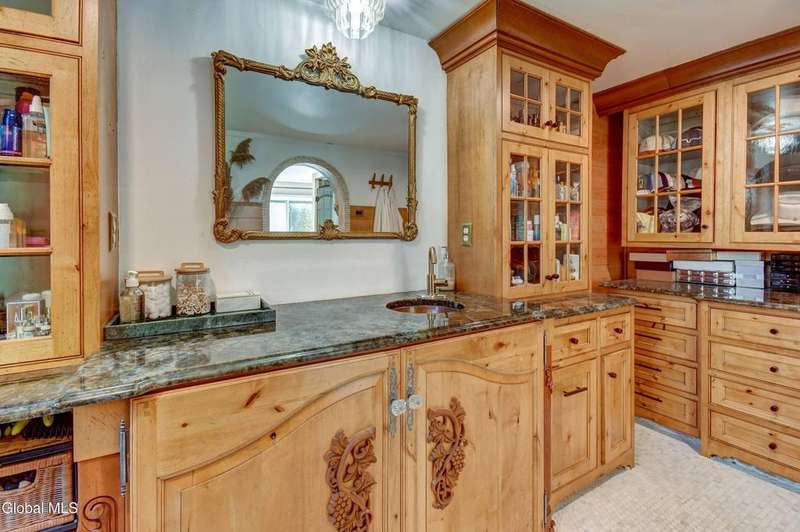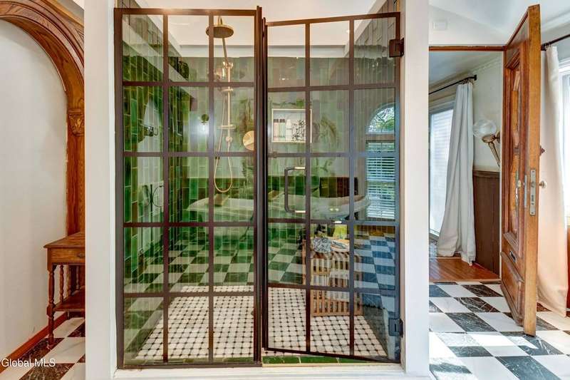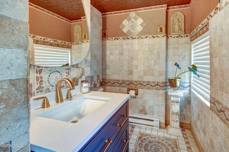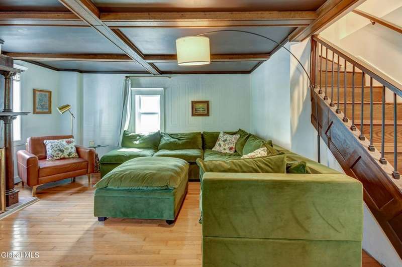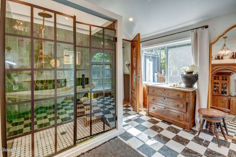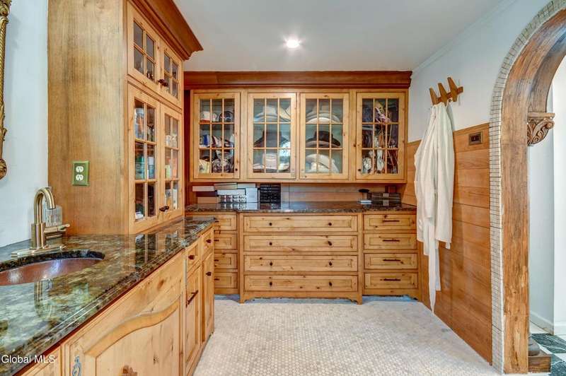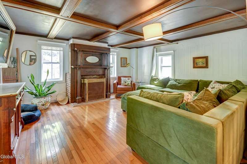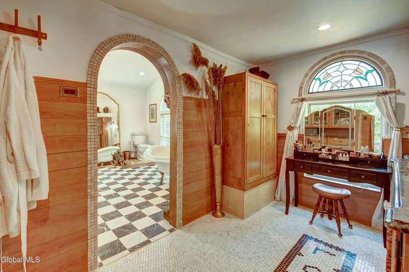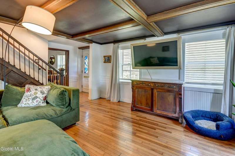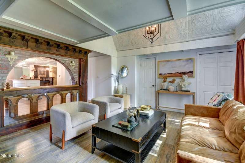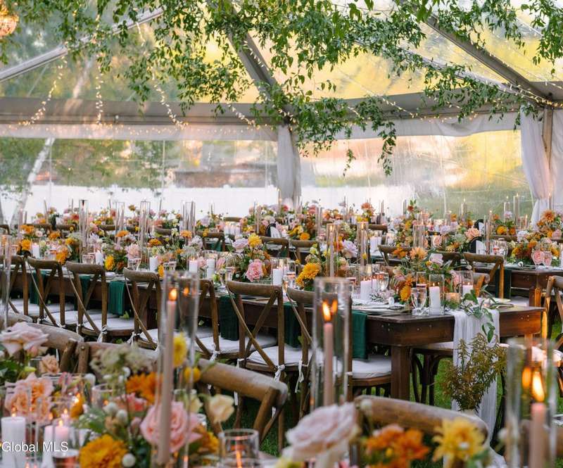 Absolutely stunning 4-bedroom Historic Post & Beam home set on 4 sprawling acres in the Broadalbin-Perth School District?just minutes from the Great Sacandaga Lake! This special property blends vintage character with modern updates, including a new kitchen island crafted from a refurbished 1800's general store counter topped with Hevea Maple butcher block and seating for four, new kitchen flooring, and a walk-in pantry. Cozy up by the wood stove in the library or enjoy the beautiful Primary Suite featuring a large bedroom with propane fireplace and bathroom with custom ceramic tile flooring, ornate built-ins, and incredible charm. Period details shine throughout?oak floors, stained glass windows, exposed brick, wood trim, tin ceilings, and a clawfoot tub. Outdoor living is just as inviting with a back deck, stone patio with fireplace and seating area, plus a 5,000+/- sq ft 2-story barn with loft space and multiple outbuildings perfect for workshops or creative spaces. A truly remarkable property with timeless character and modern comfort!