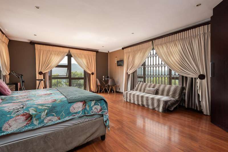 Majestic Split-Level Retreat with Breathtaking Views! Perched atop the mountains, this expansive facebrick home offers an unparalleled living experience with stunning panoramic views. Designed for comfort and versatility, the home boasts two spacious upstairs bedrooms, each with private balconies, and two elegant bathrooms. A grand pyjama lounge completes the upper level, providing the perfect space to unwind while soaking in the scenery. Downstairs, you?ÇÖll find two additional bedrooms and two bathrooms, ideal for family living or guests. The seamless open-plan layout features a well-designed kitchen with a separate laundry, flowing effortlessly into the dining area and lounge. Large sliding doors open onto a sprawling patio, perfect for entertaining while admiring the breathtaking backdrop. Additional features include staff accommodation and ample parking, all set in a sought-after area close to the CBD and essential amenities. This is more than just a home?Çöit?ÇÖs a lifestyle! Don?ÇÖt miss out on this rare gem. Schedule a viewing today! *Extreme care has been taken to ensure that all representations contained in this advertisement are accurate and is provided on an ?Ç£as is?Ç¥ basis with no guarantees whatsoever. The representations herein has not been compiled to meet a Purchaser?ÇÖs individual requirements and it remains the Purchaser?ÇÖs sole responsibility to inspect the property duly prior to entering into any purchase agreement. The representations herein does not constitute the terms of sale as the images and descriptions are merely indicative. Chas Everitt assumes no responsibility for any errors and we reserve the right to correct/change/update the advert at any time without prior notice.*