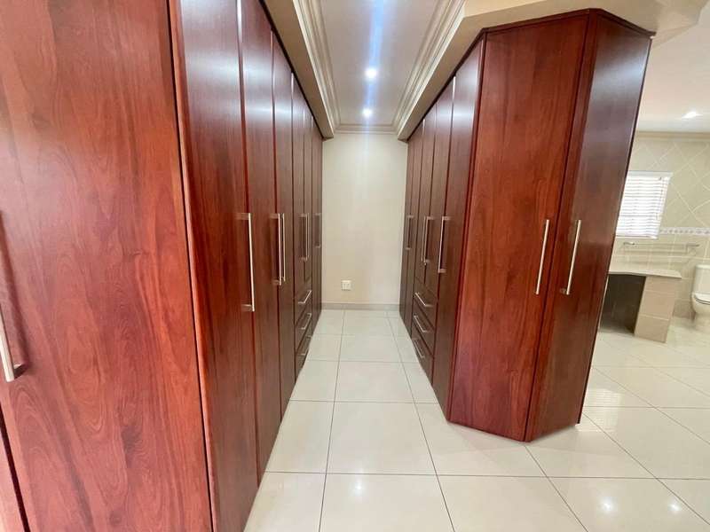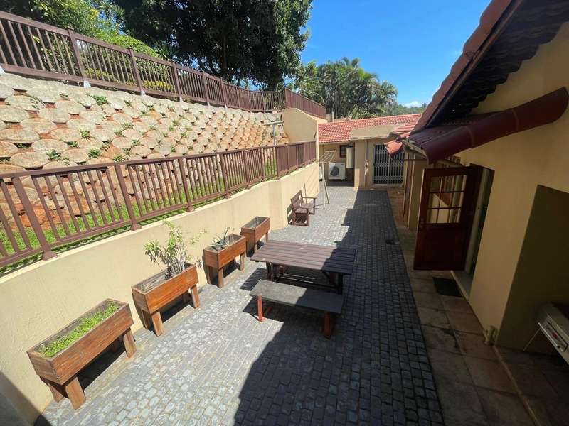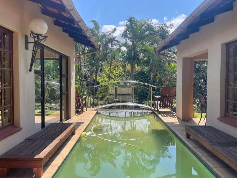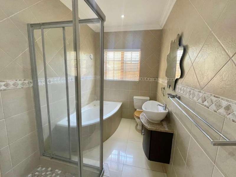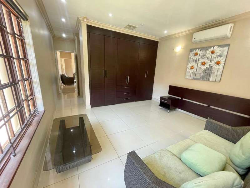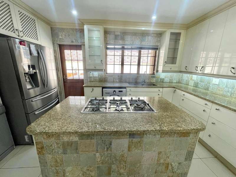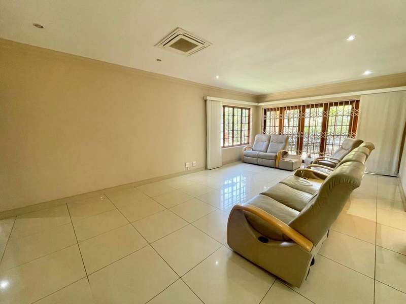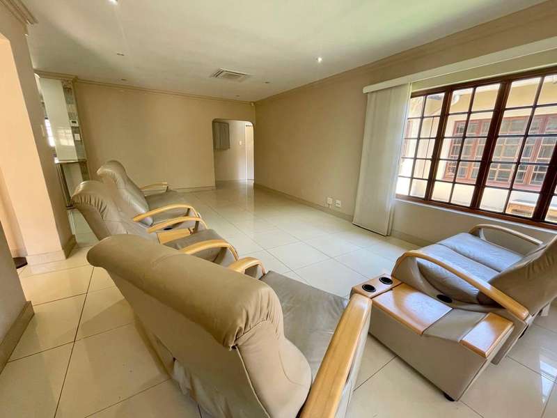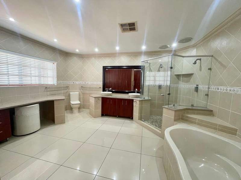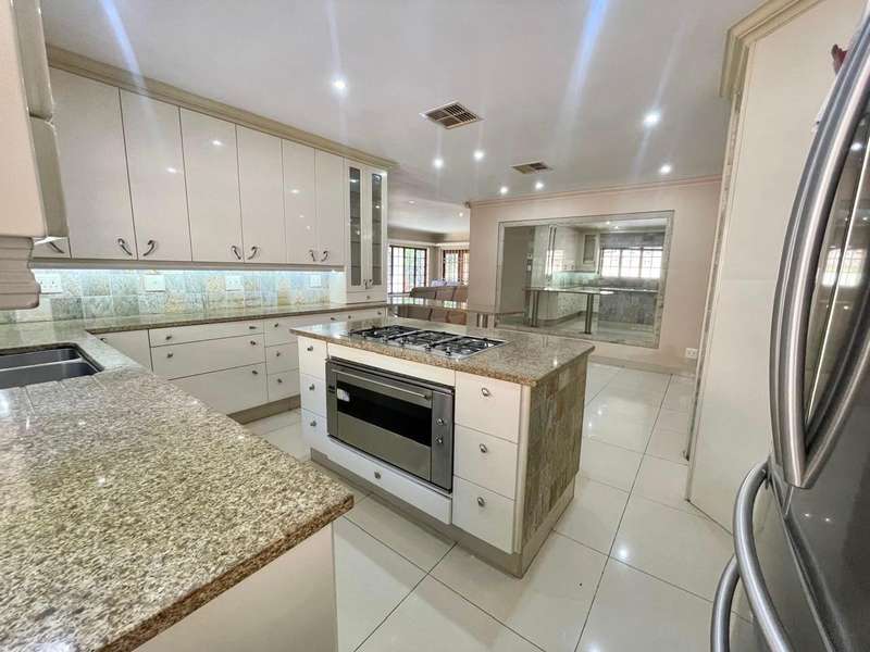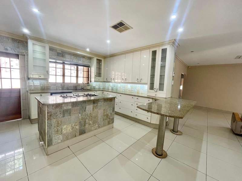 Welcome to 118 Hilary Drive, a generous 5-bedroom, 4-bathroom home that offers great space and flexibility for families. With two kitchens, two lounges, and a dining area, this property is ideal for large families or can serve as a home with a separate flatlet. The master bedroom features a generous ensuite and a balcony overlooking the garden. Two smaller bedrooms share a bathroom. The remaining home layout includes a section that can be closed off, complete with two bedrooms (one with a sunroom/patio), a kitchen, and two bathrooms —perfect for guests, extended family or as a source of potential income. Air conditioned throughout. Additional highlights include a large 4 car garage, storage room (could be converted to domestic quarters), and a dedicated office space. Enjoy outdoor relaxation with a pool and water feature. The house also has a 5000L JoJo tank, an invertor, as well as electric fencing and security system. This home is ready for your personal touch. Don’t miss the chance to make it your own!