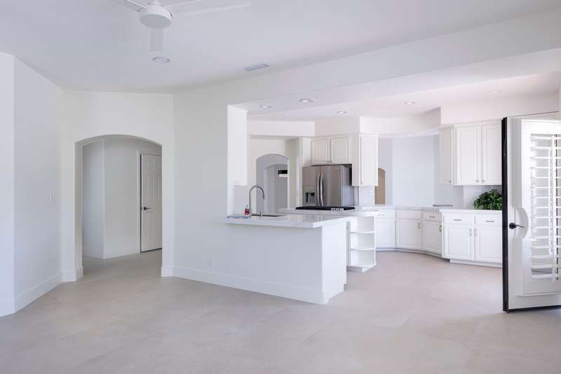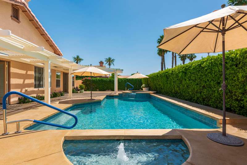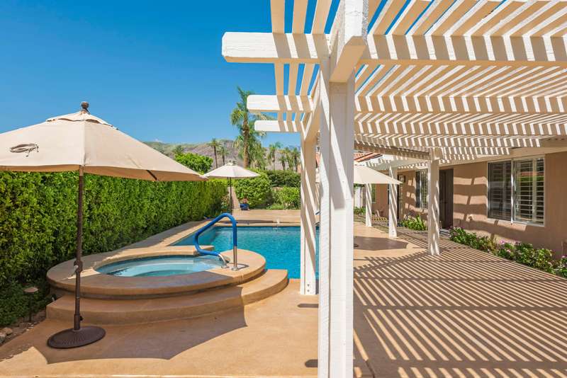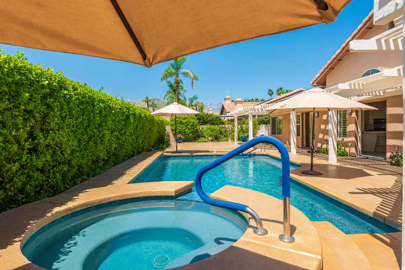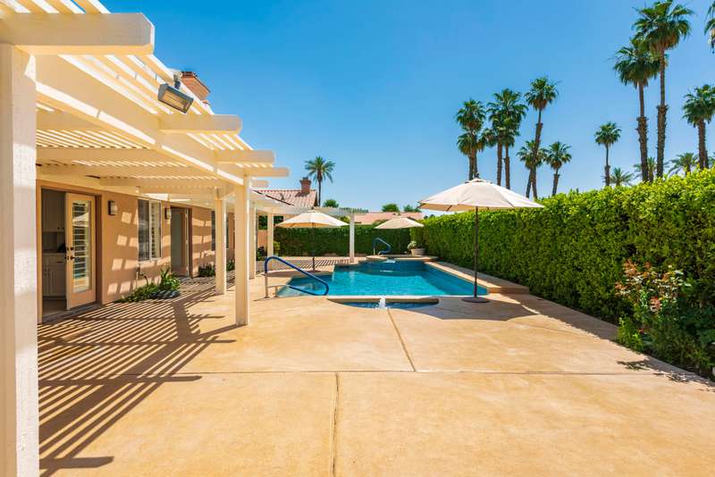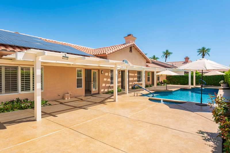 Discover breathtaking views in this stunning 2,598 sq. ft. home in the gated community of Park Mirage available for a long term lease. Situated close to the River Mall, next to Clancy Lane, and about 20 minutes from Palm Springs Airport, and close to the Desert's top shopping and dining, this 4 bedroom, 4 bathroom residence offers luxury and convenience. The open floor plan, high ceilings, and large windows flood the home with natural light. The premium lot boasts a south-facing backyard with unobstructed views of the Santa Rosa Mountains. Enjoy a sparkling pool, spa, waterfall and fountain, with a wide community greenbelt, ensuring uninterrupted vistas. The kitchen, featuring an island, breakfast bar, and nook, opens to the great room, perfect for entertaining. A formal dining room and living room with a raised fireplace adding elegance. The primary suite with French doors to the pool, includes a spacious bath and walk-in closet. Three guest bedrooms and three additional baths offer ample living space. Recent upgrades include, freshly painted throughout, new pebble tech finishes in the pool, NEW Solar system & Air Conditioning unit installed, and newer stainless appliances. The home also includes an indoor laundry room and a 3 car garage with a NEW Telsa 3 Power Wall plug. HOA fees cover front yard maintenance, basic cable TV, gate access, roads, and the large community greenbelt (''Central Park''), offering a carefree lifestyle in a majestic setting. Call for a private showing.
